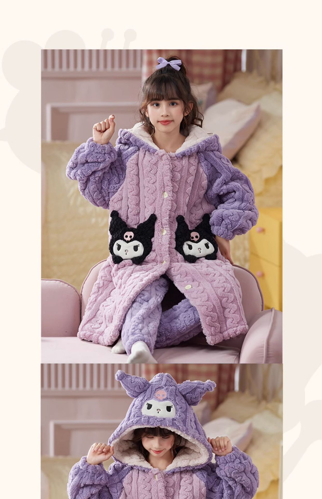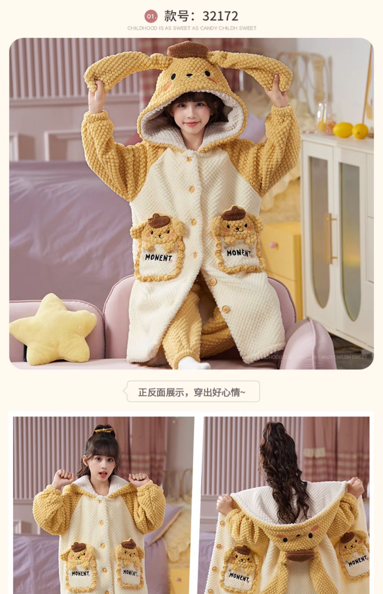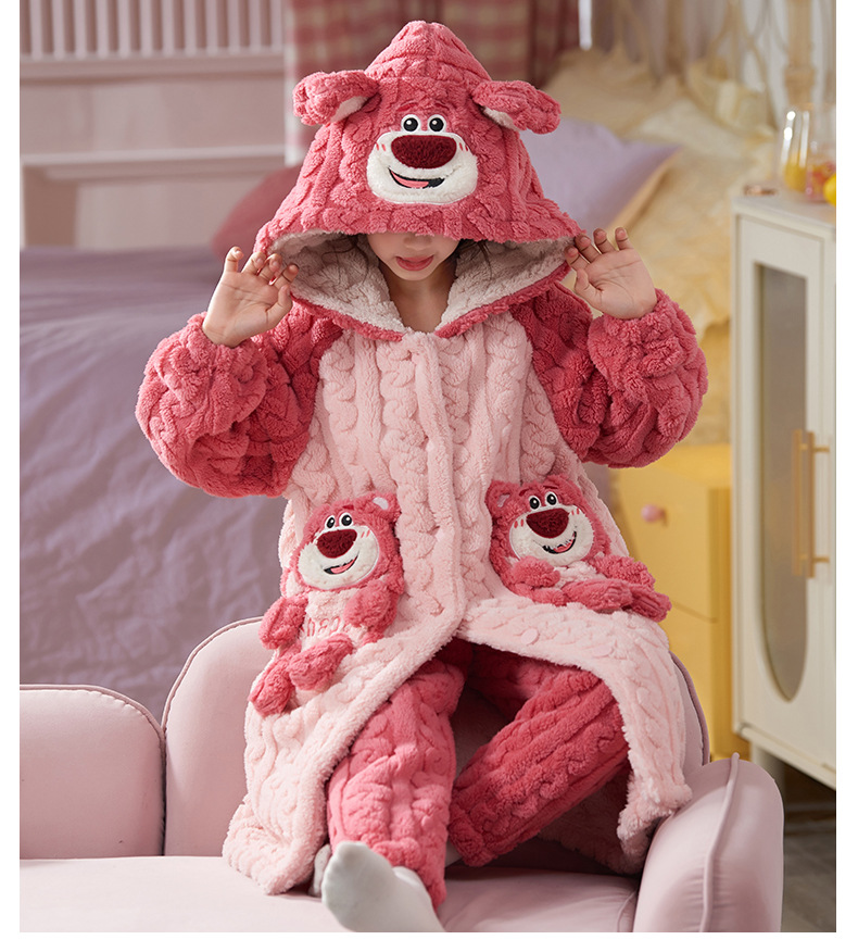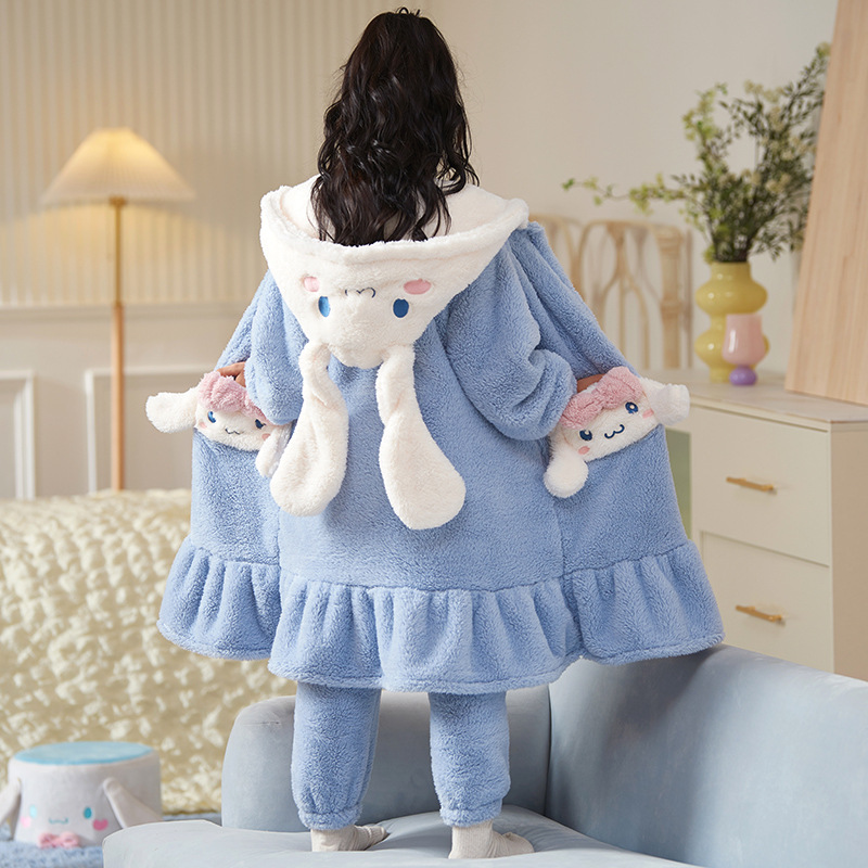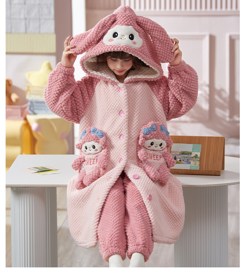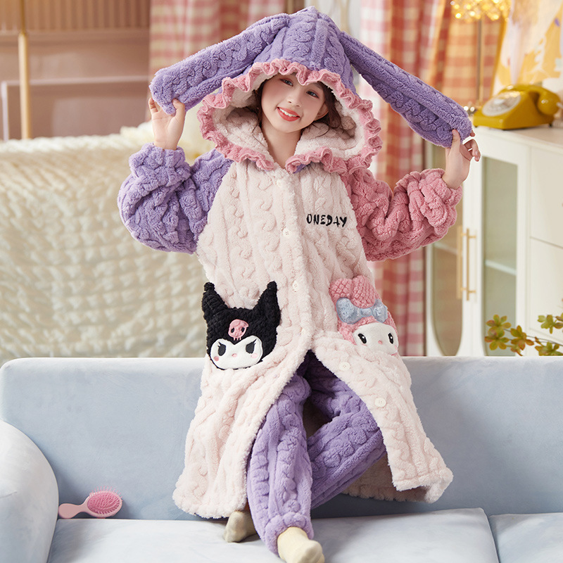 女童睡衣儿童睡袍法兰绒加厚珊瑚绒秋冬季套装浴袍中大童家居服女