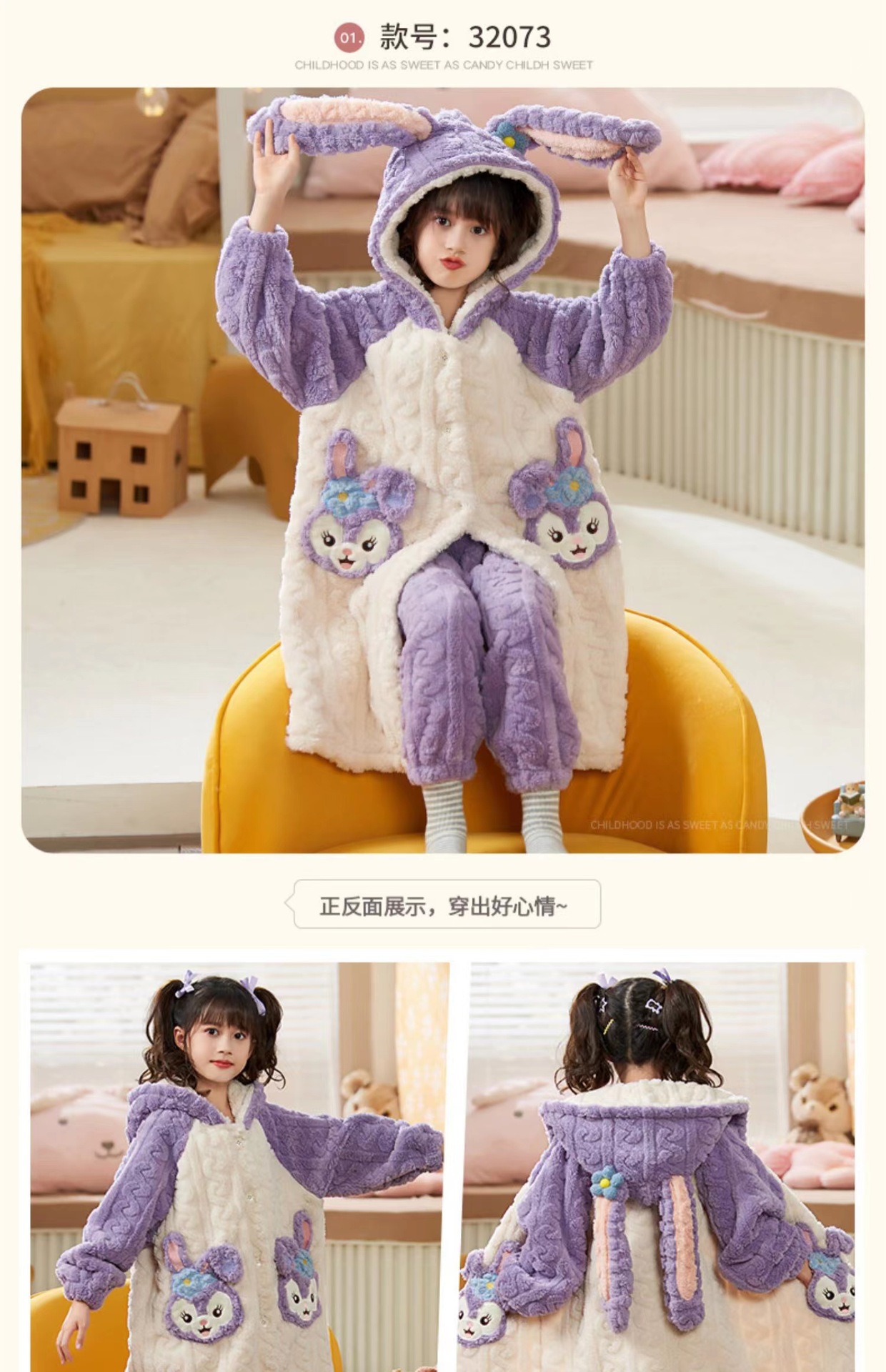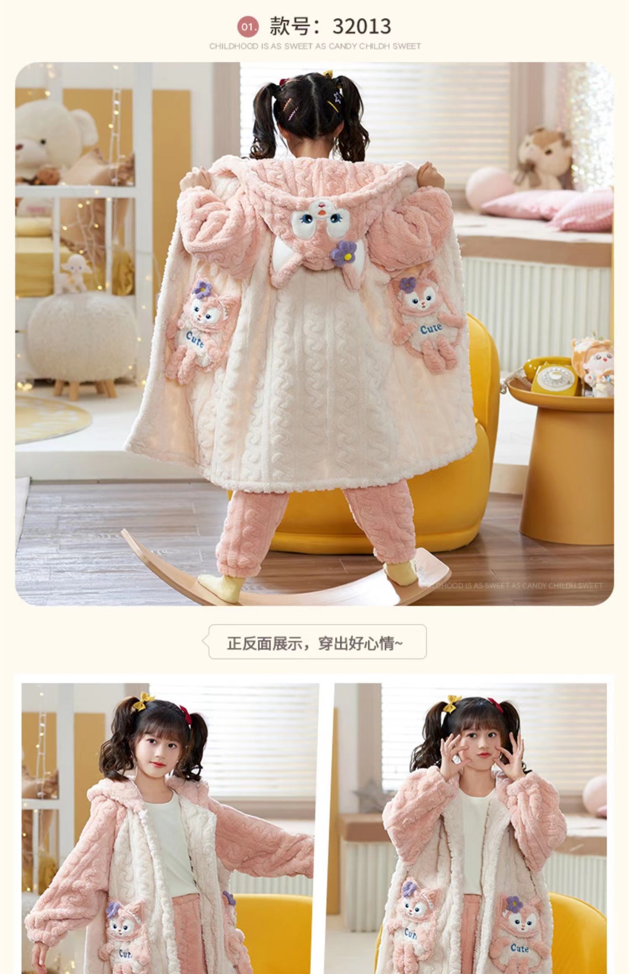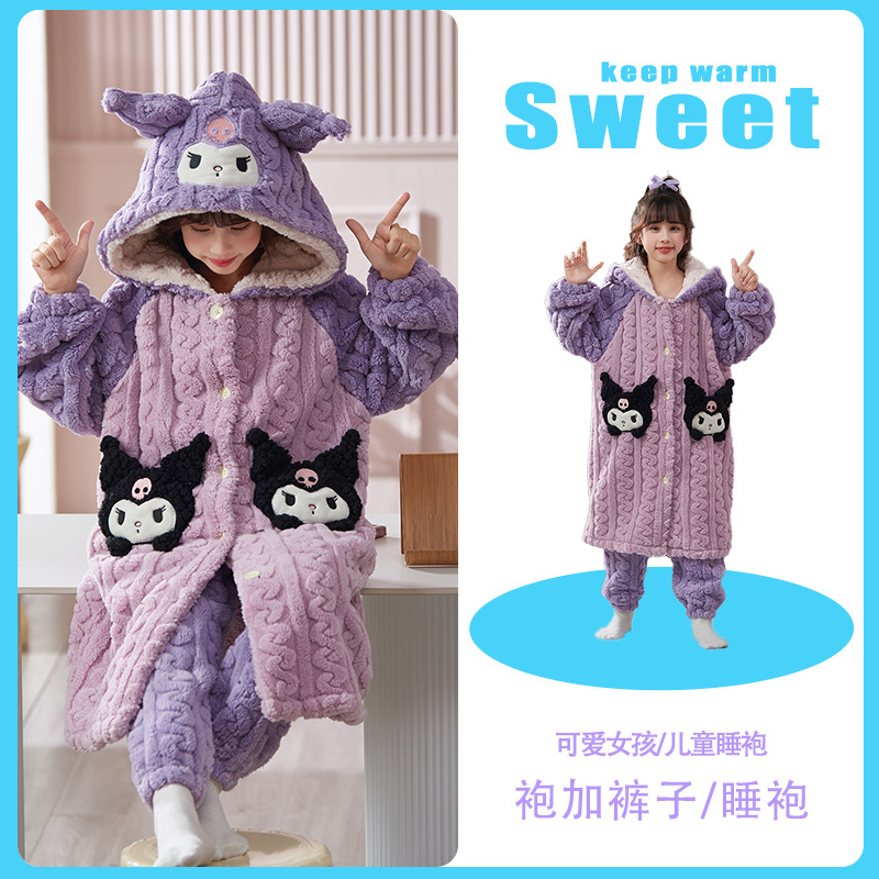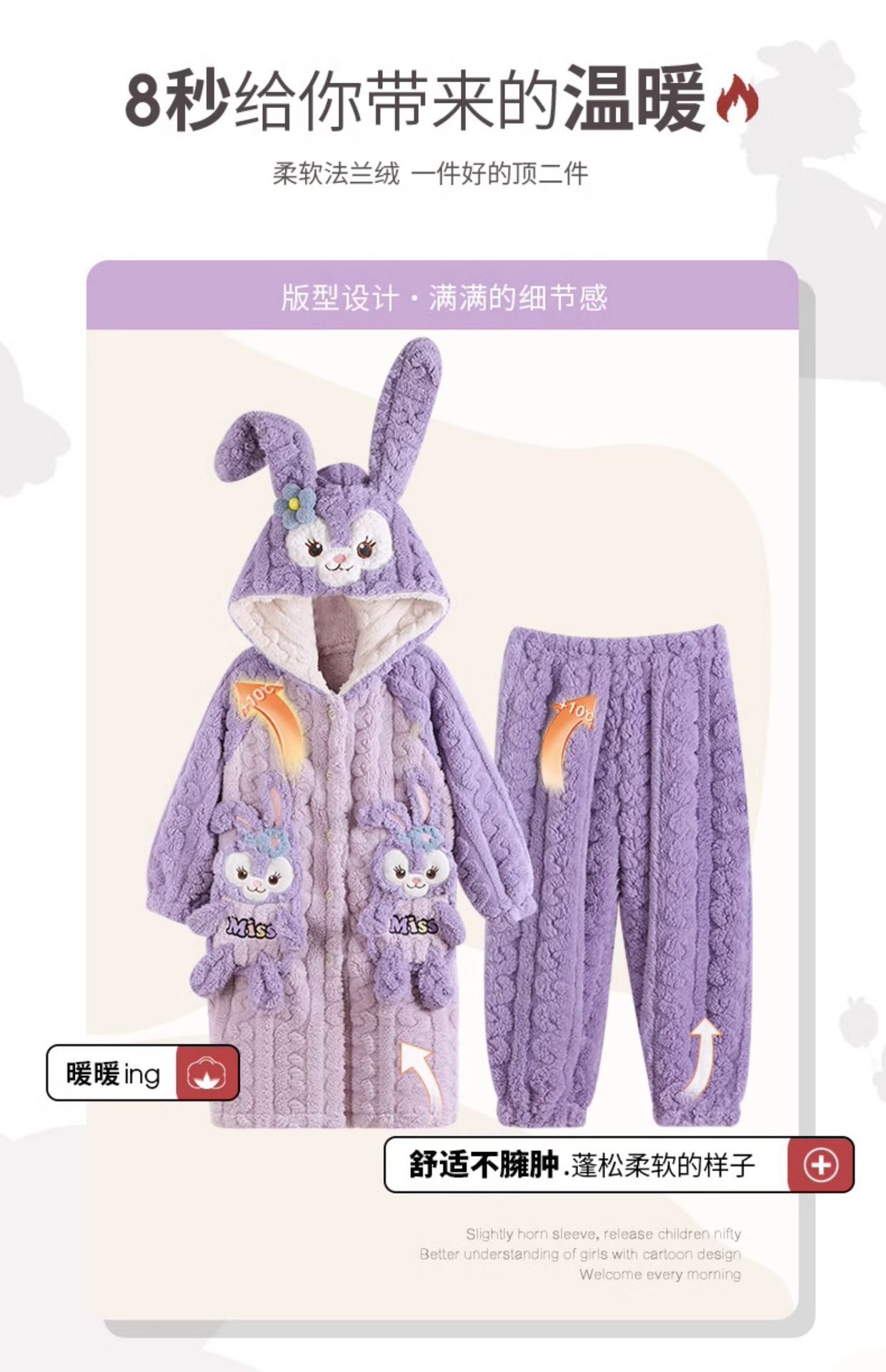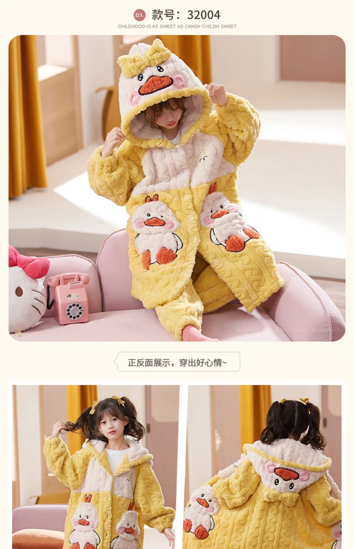 儿童睡衣女童睡袍秋冬季珊瑚绒法兰绒加厚套装女孩大童浴袍家居服