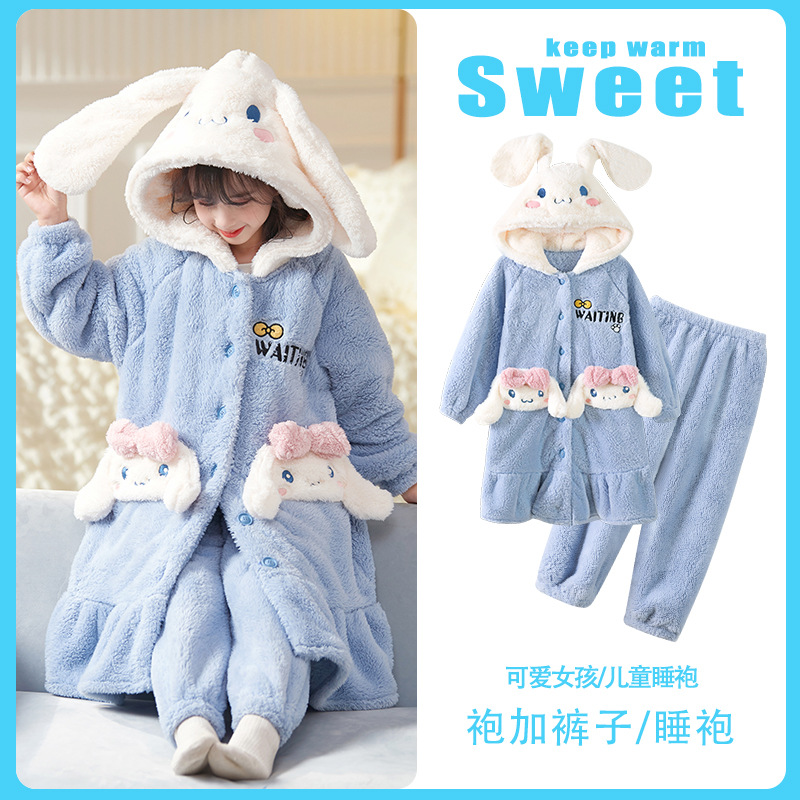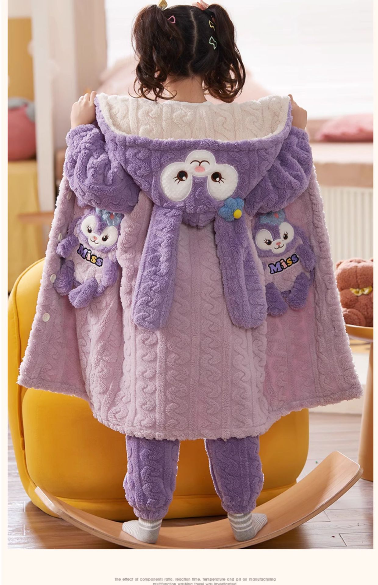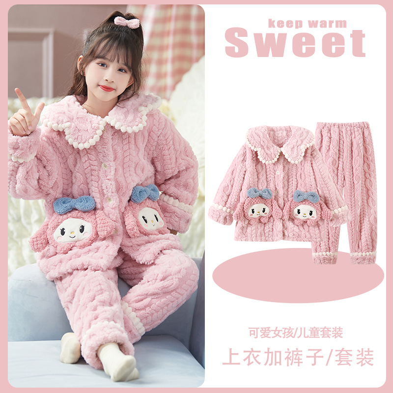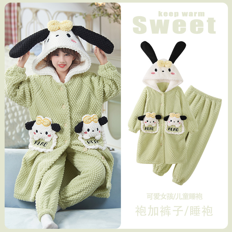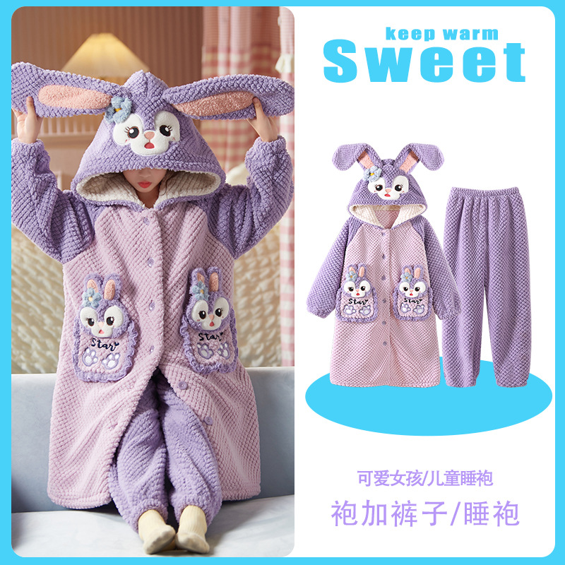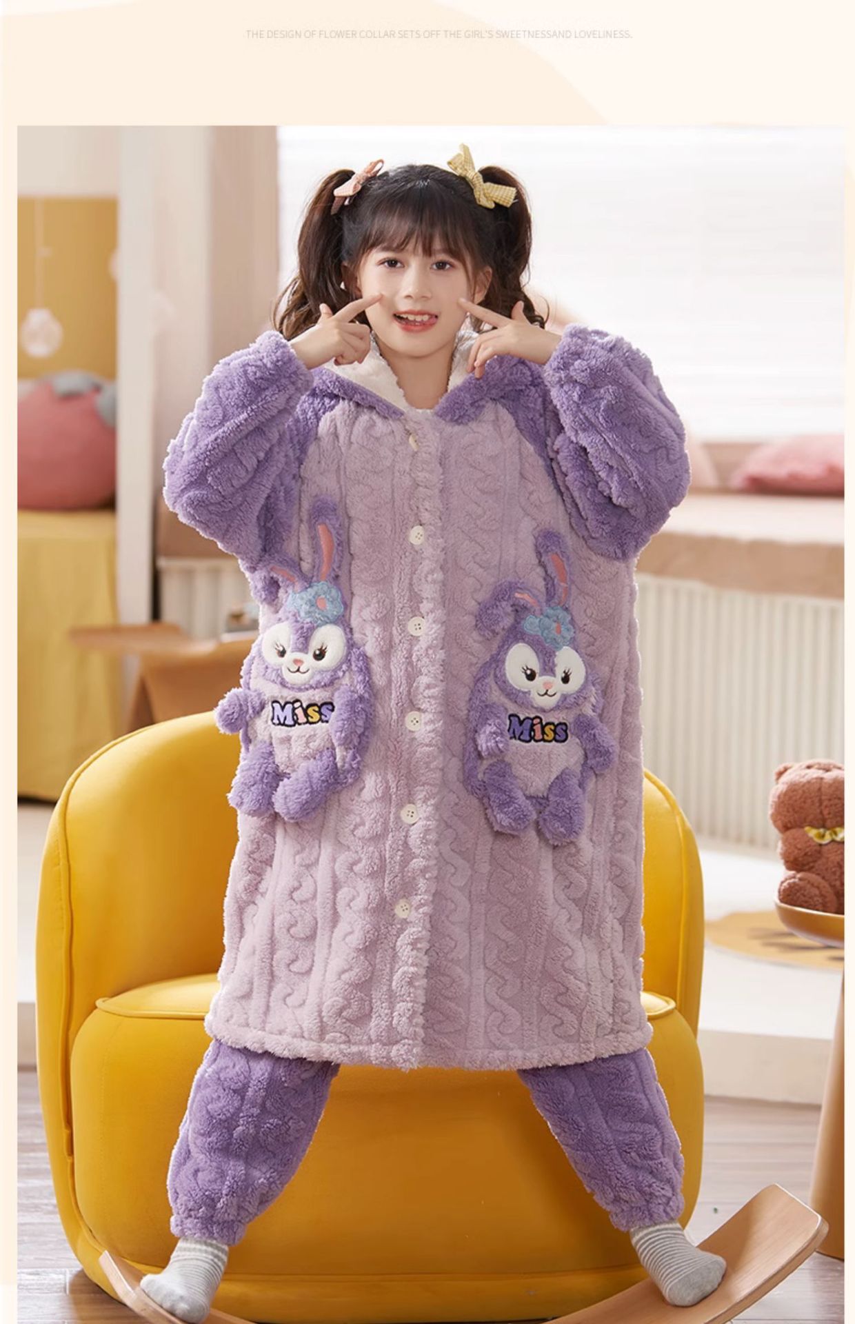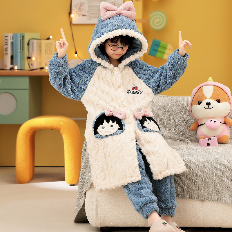 儿童睡衣女童睡袍秋冬季珊瑚绒法兰绒加厚套装女孩大童浴袍家居服