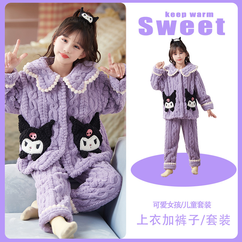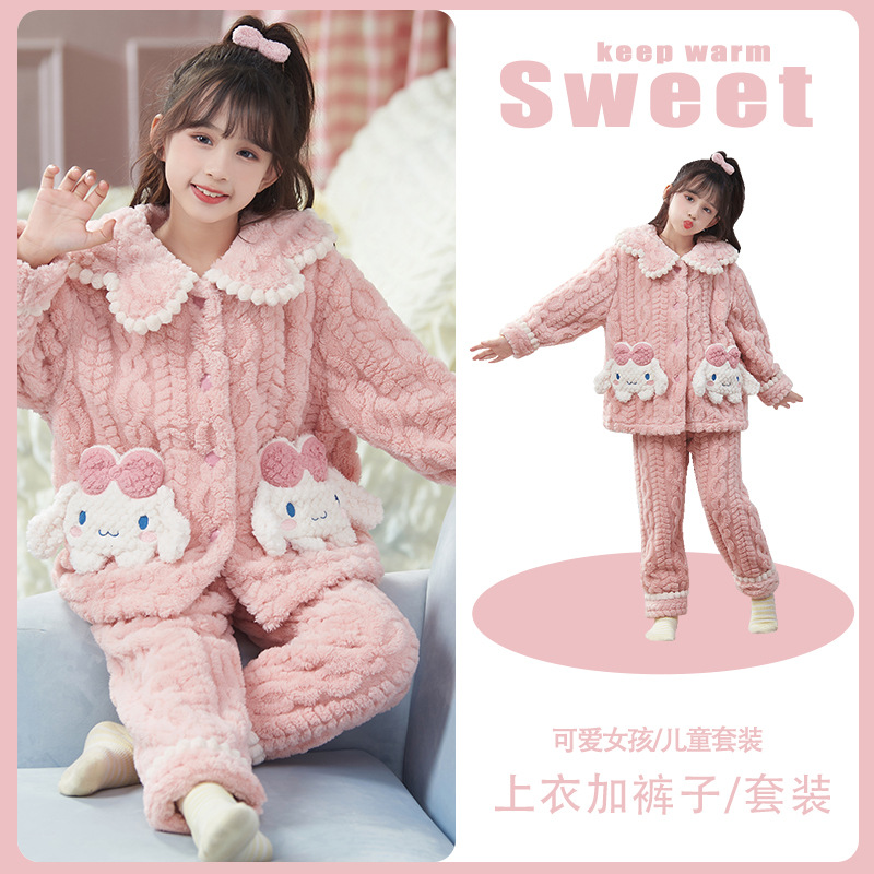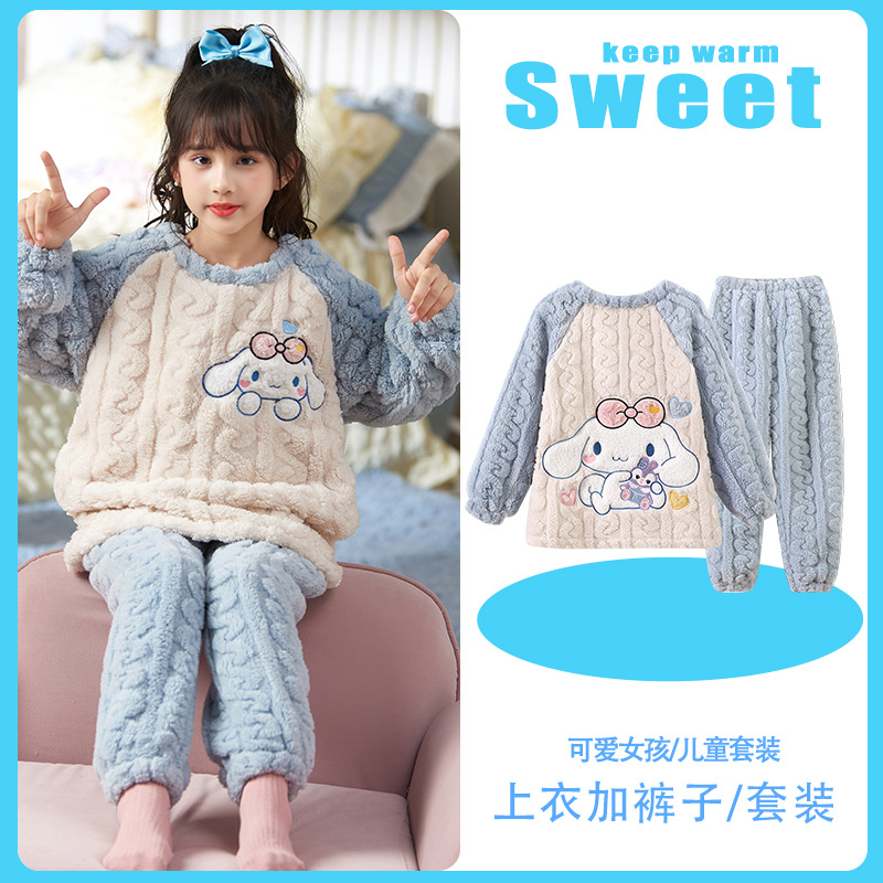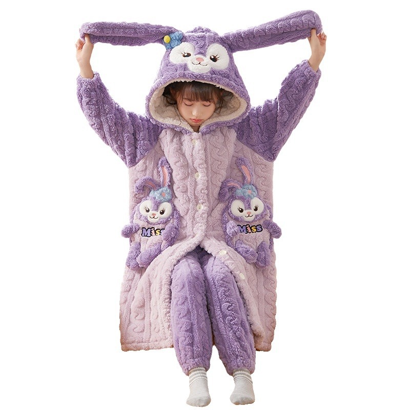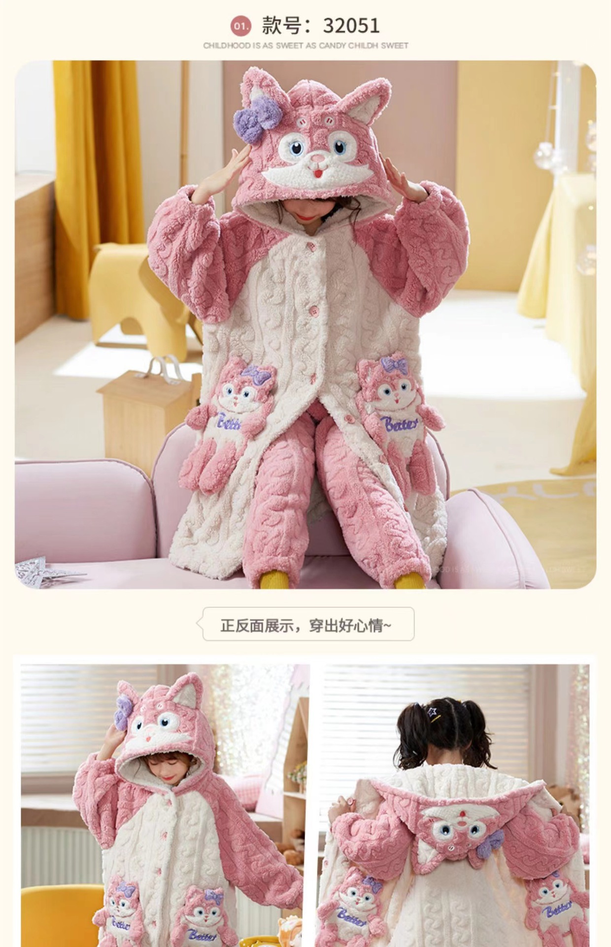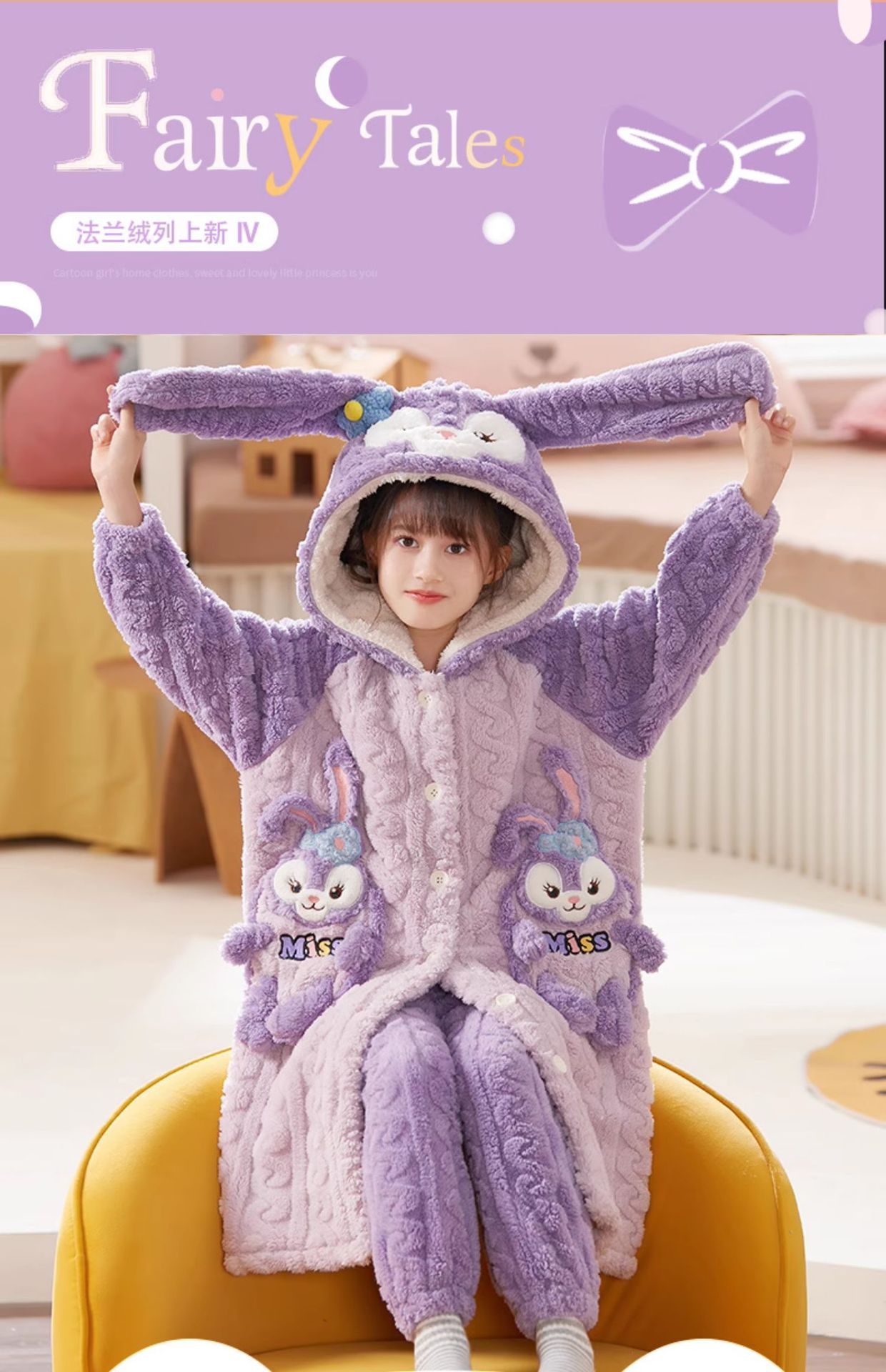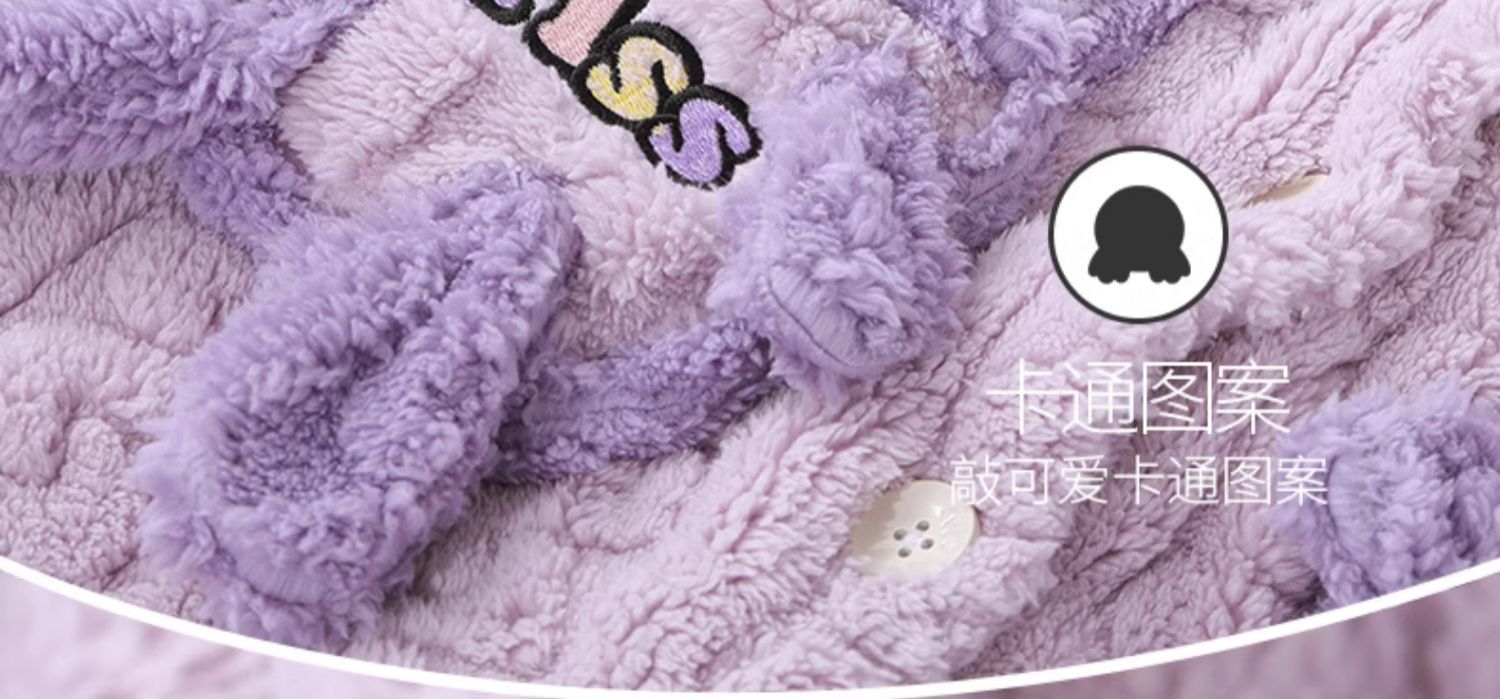 儿童睡衣女童睡袍秋冬季珊瑚绒法兰绒加厚套装女孩大童浴袍家居服