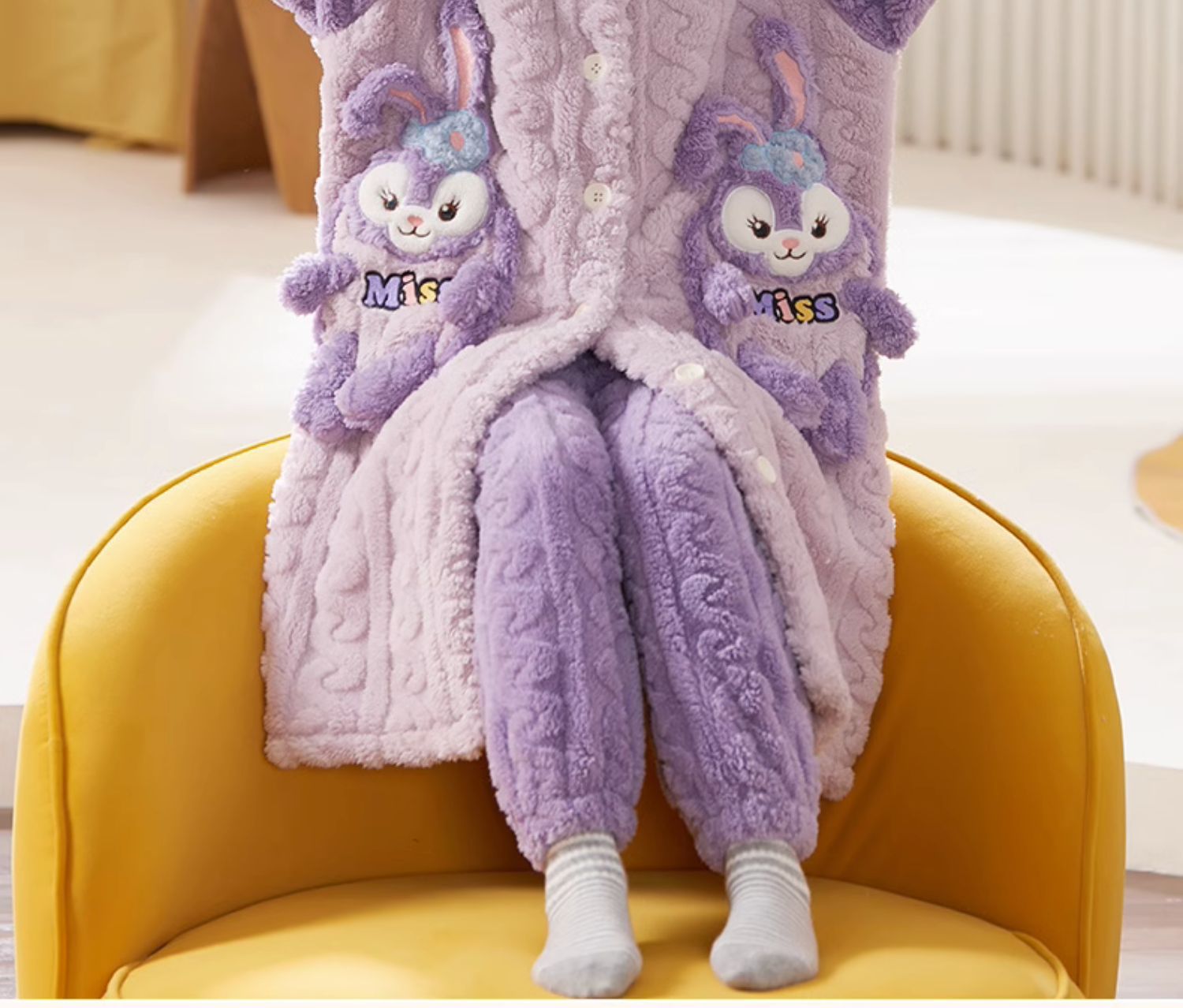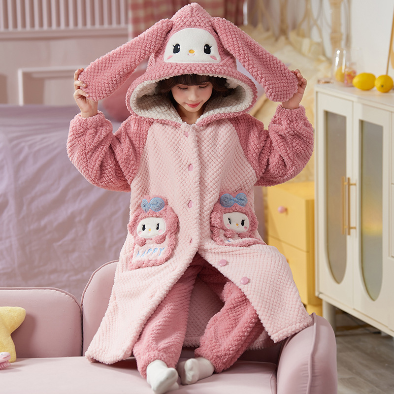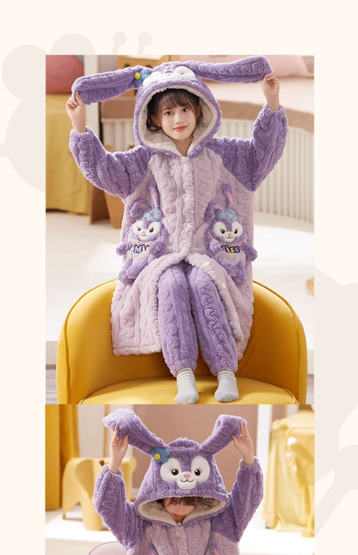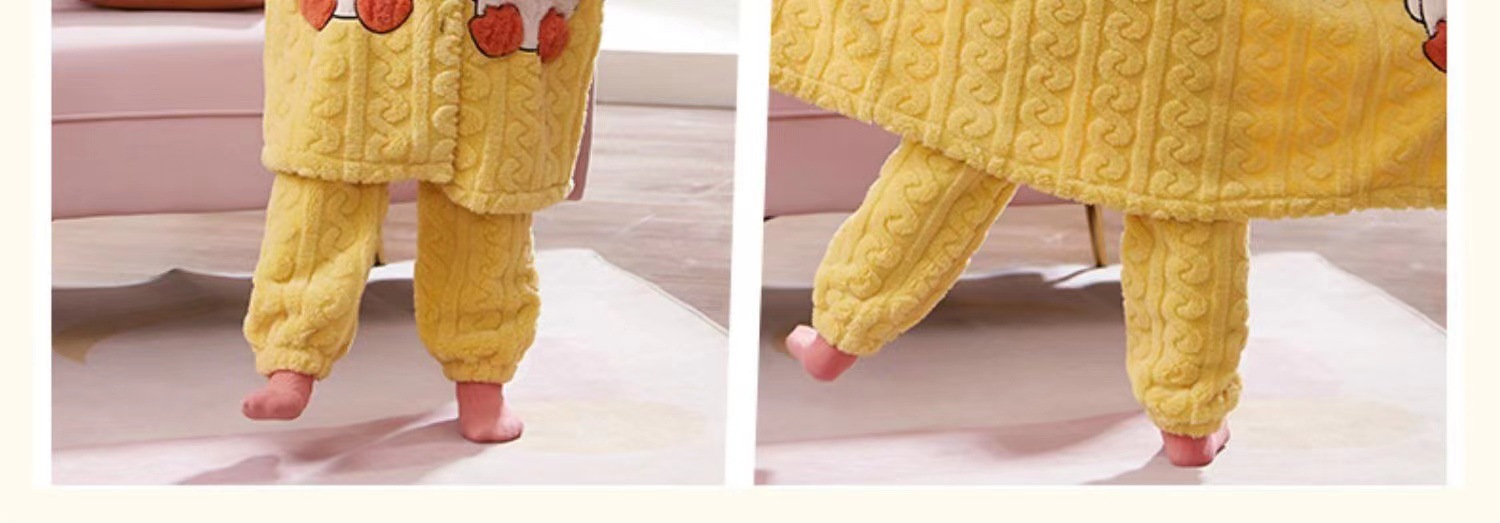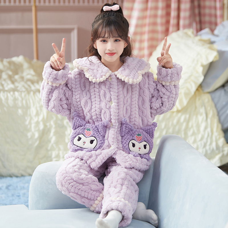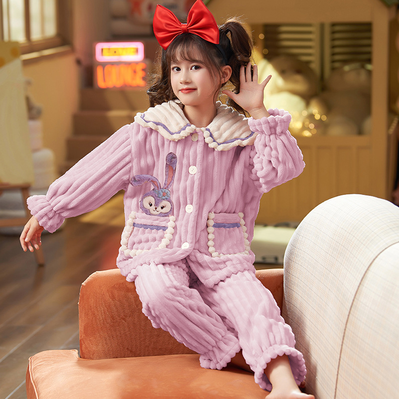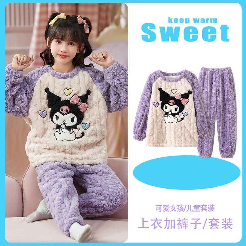 儿童睡衣女童睡袍秋冬季珊瑚绒法兰绒加厚套装女孩大童浴袍家居服