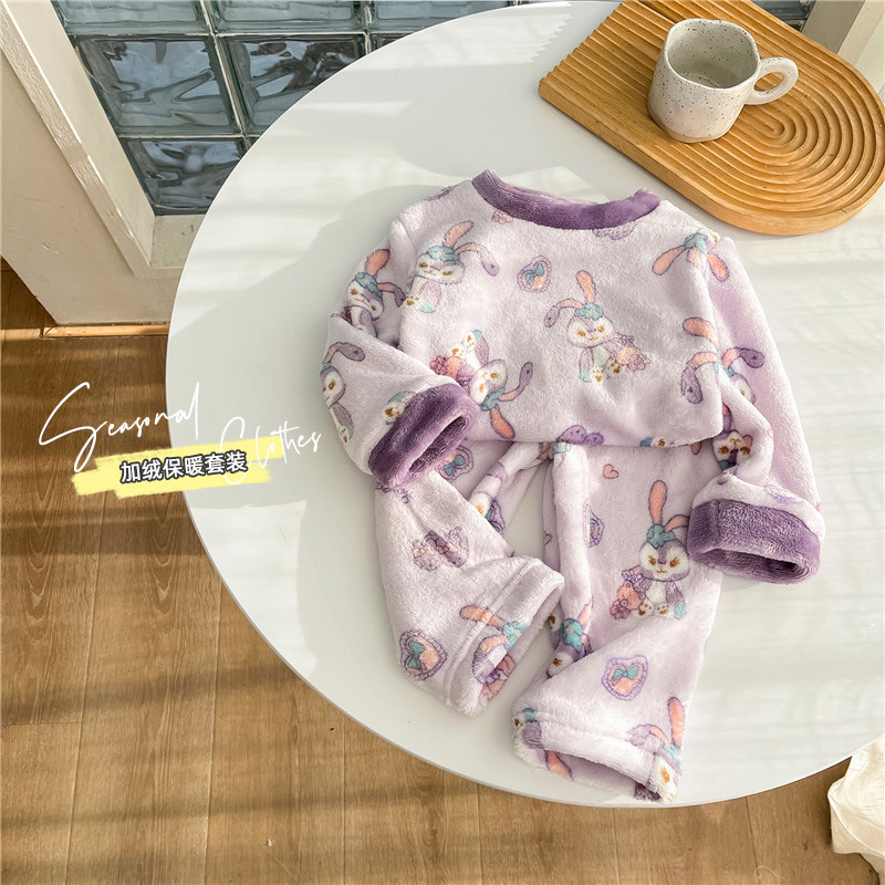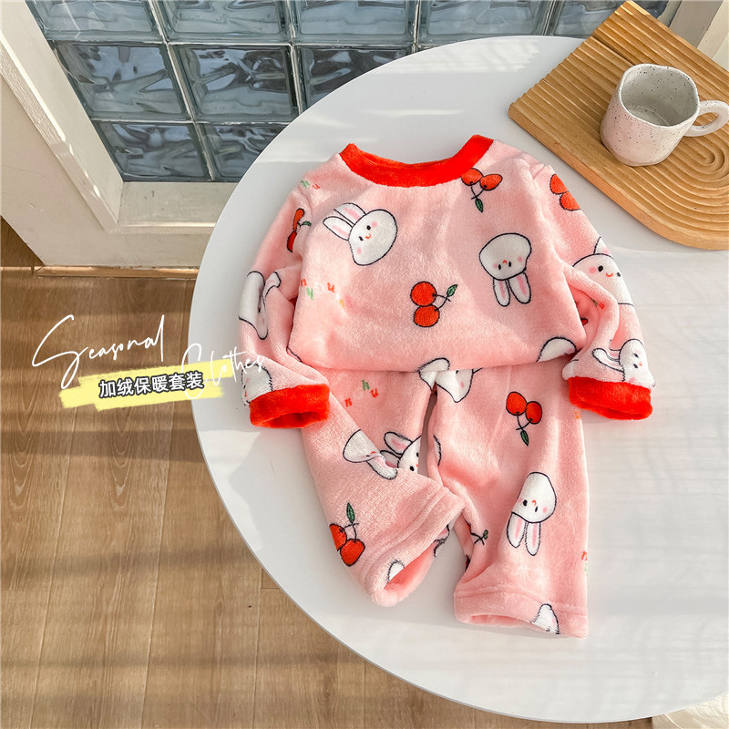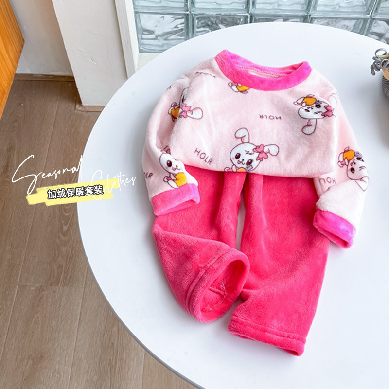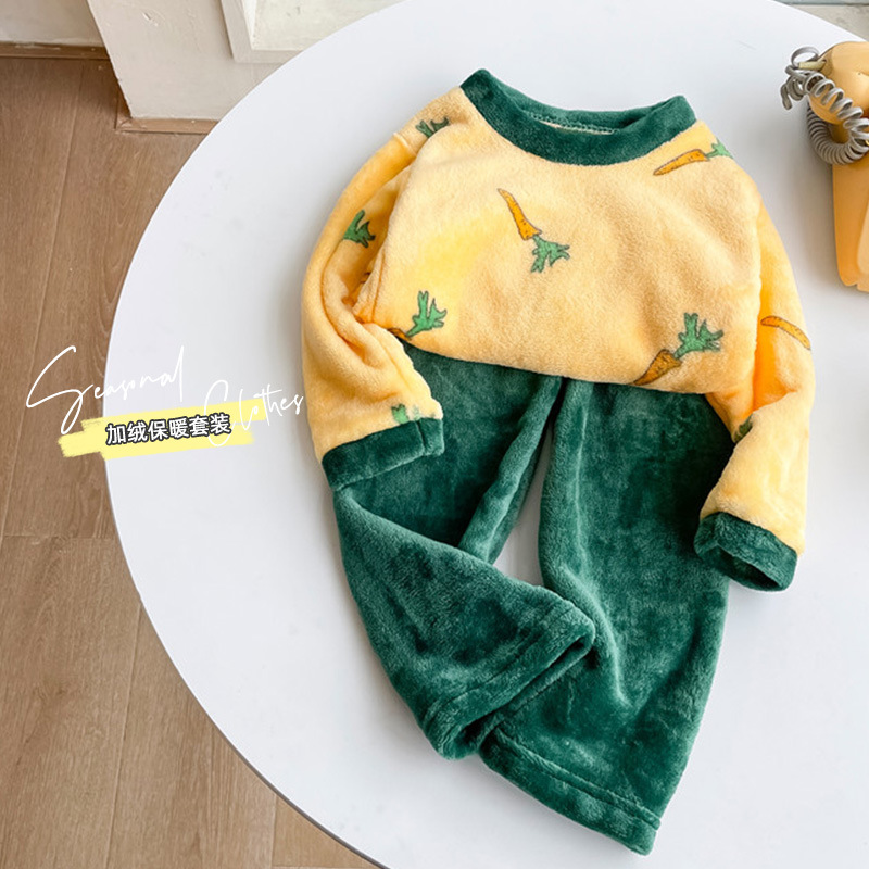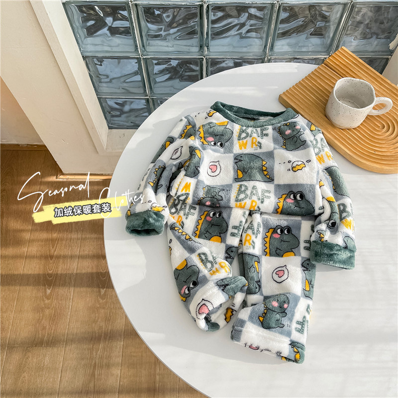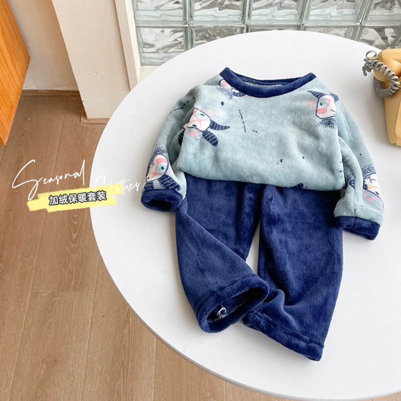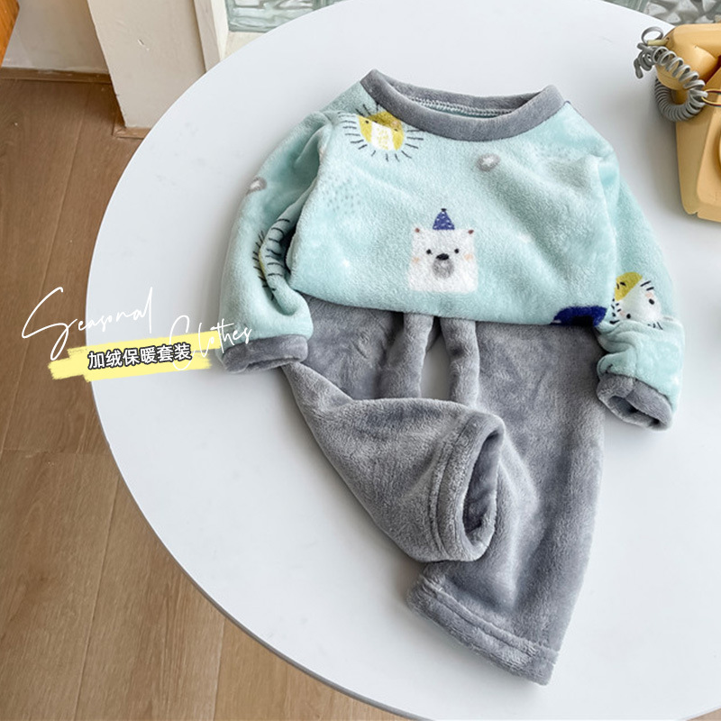 儿童秋冬法兰绒睡衣套装 女童加绒加厚家居服 男宝宝保暖内衣套装