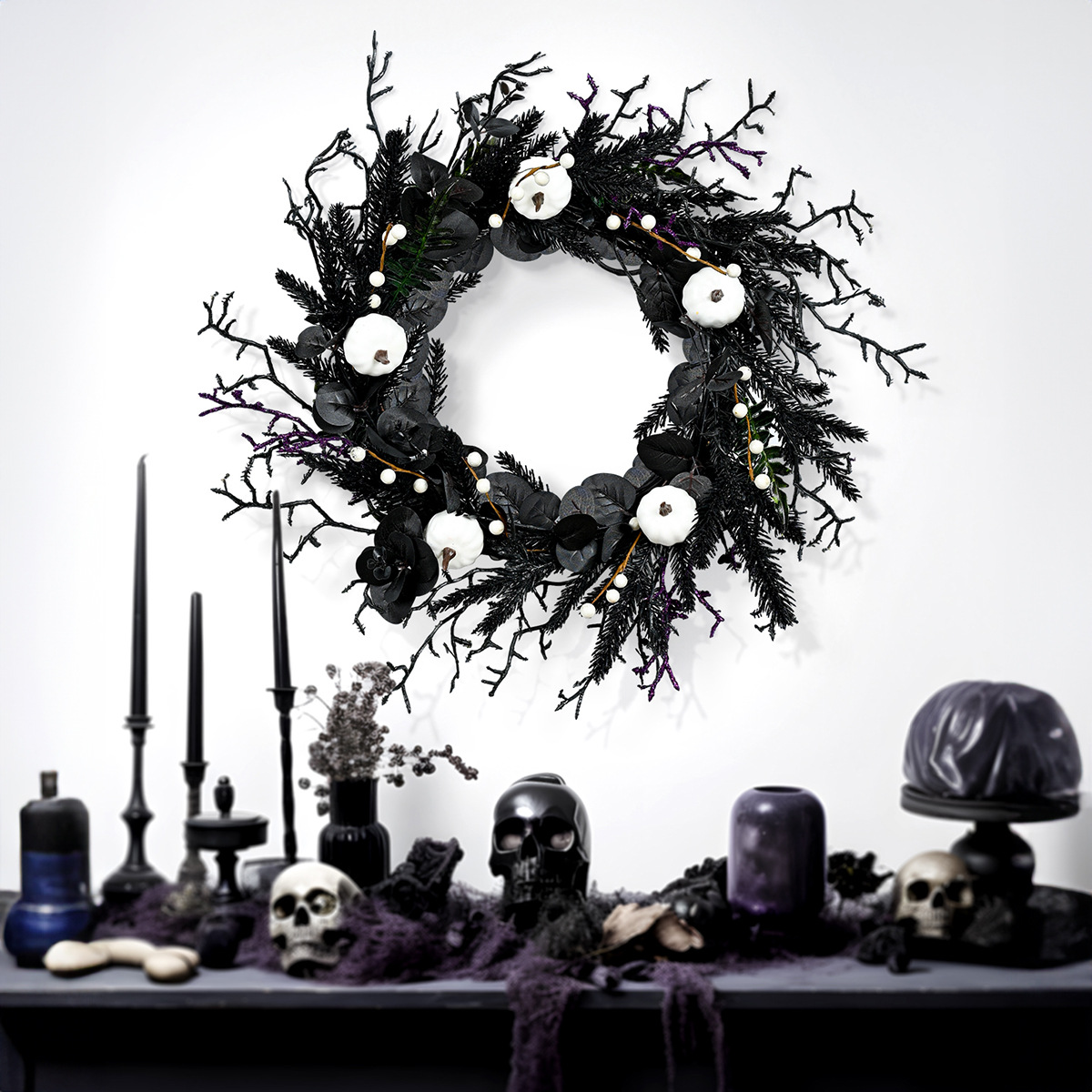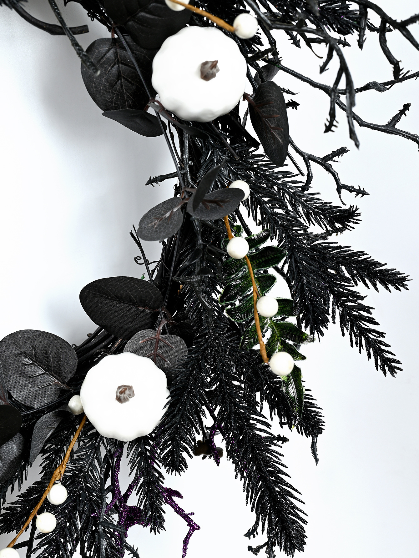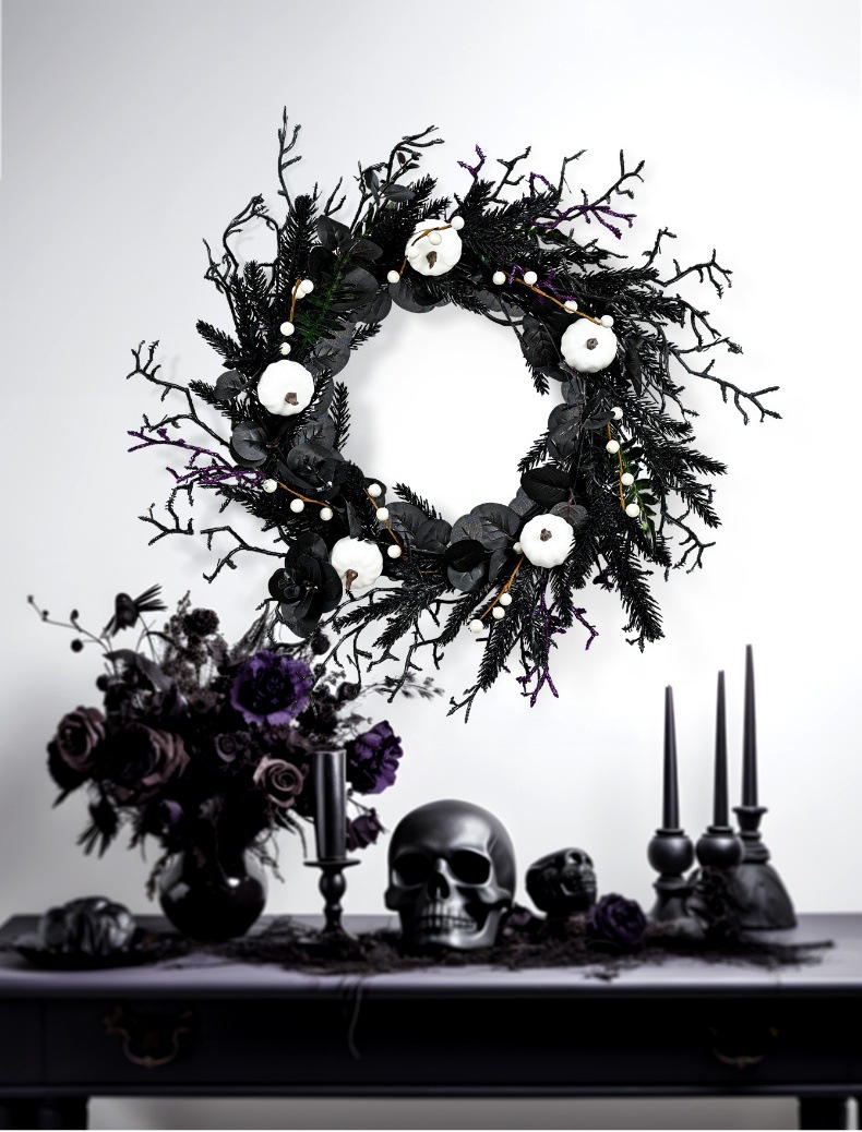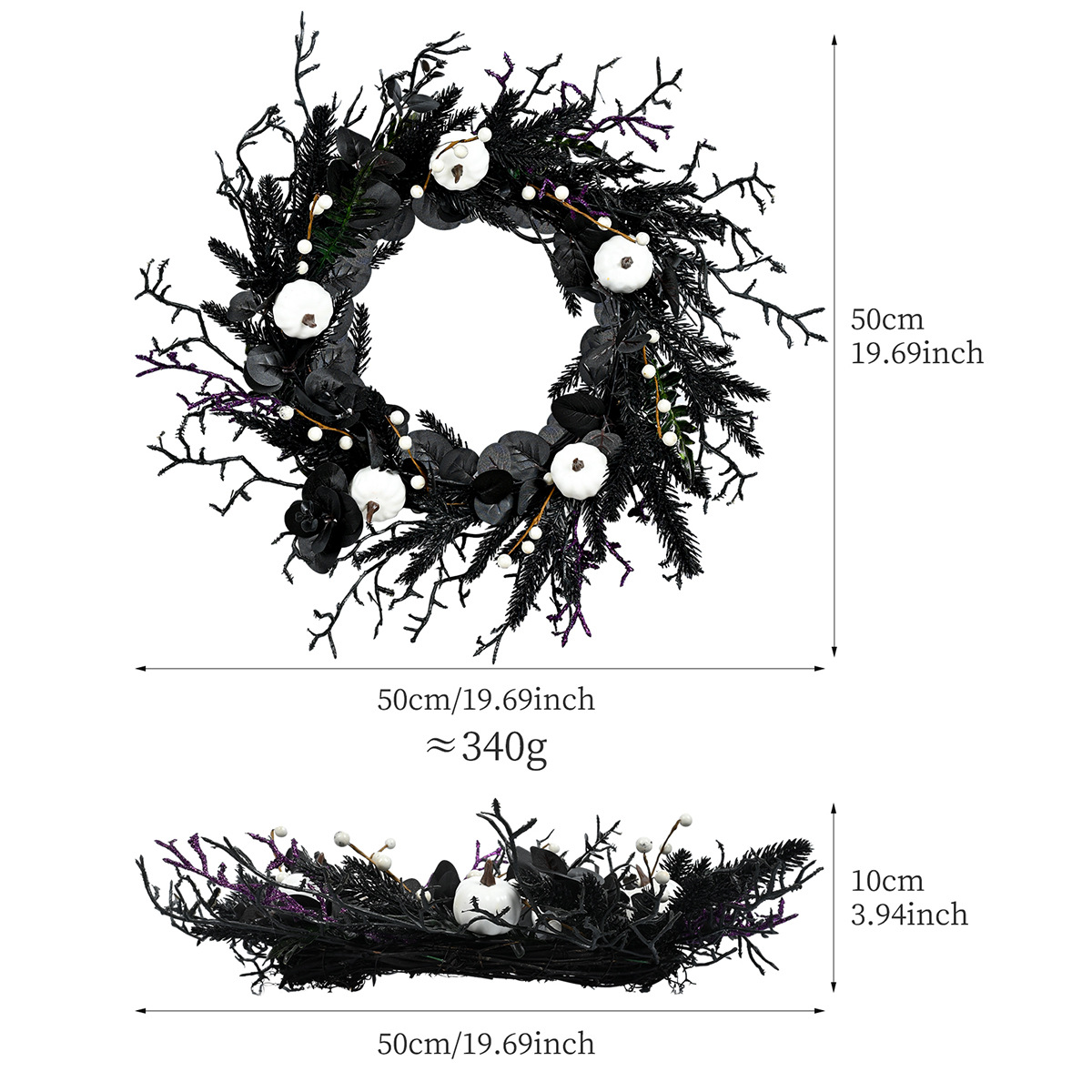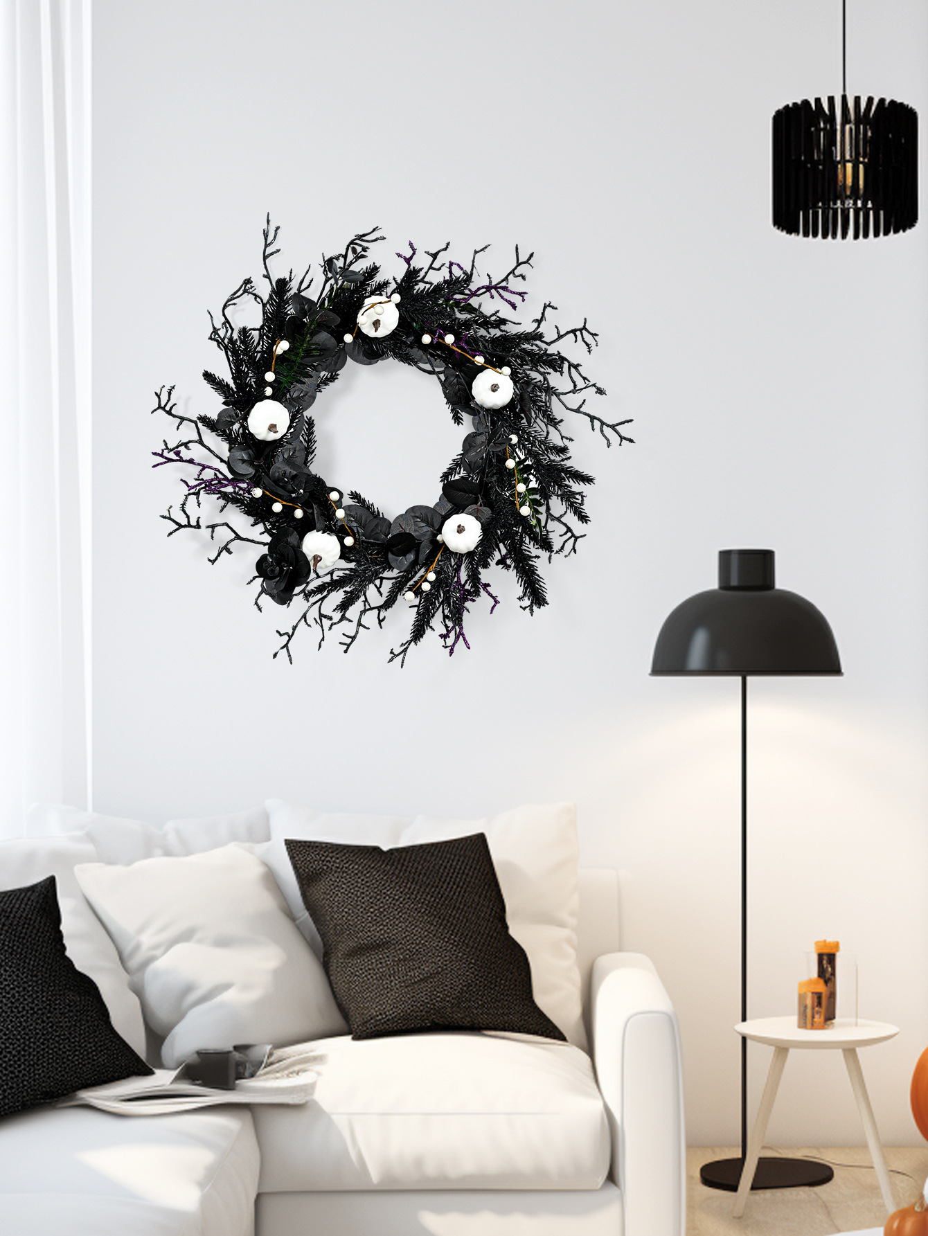 跨境圣诞藤圈松针枯枝白南瓜花圈鬼节派对装饰门挂布置万圣节花环