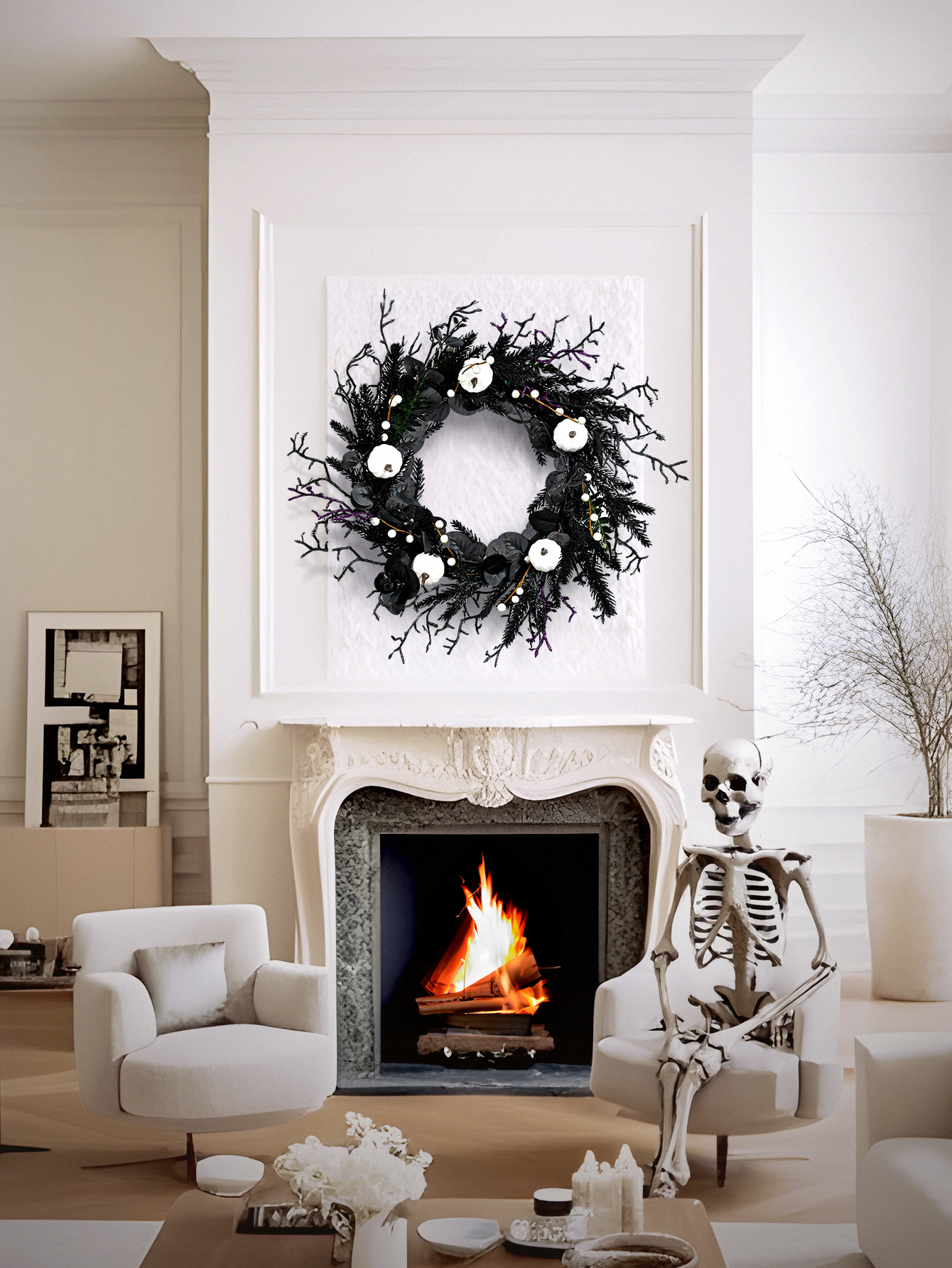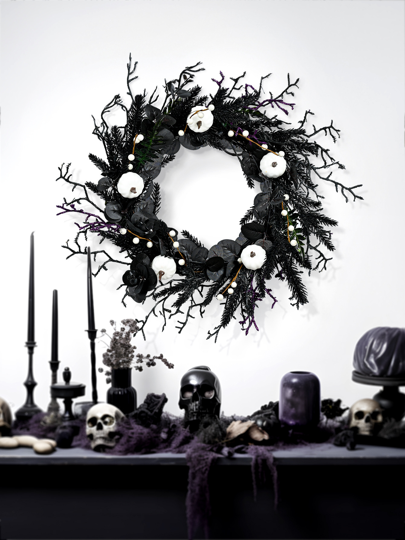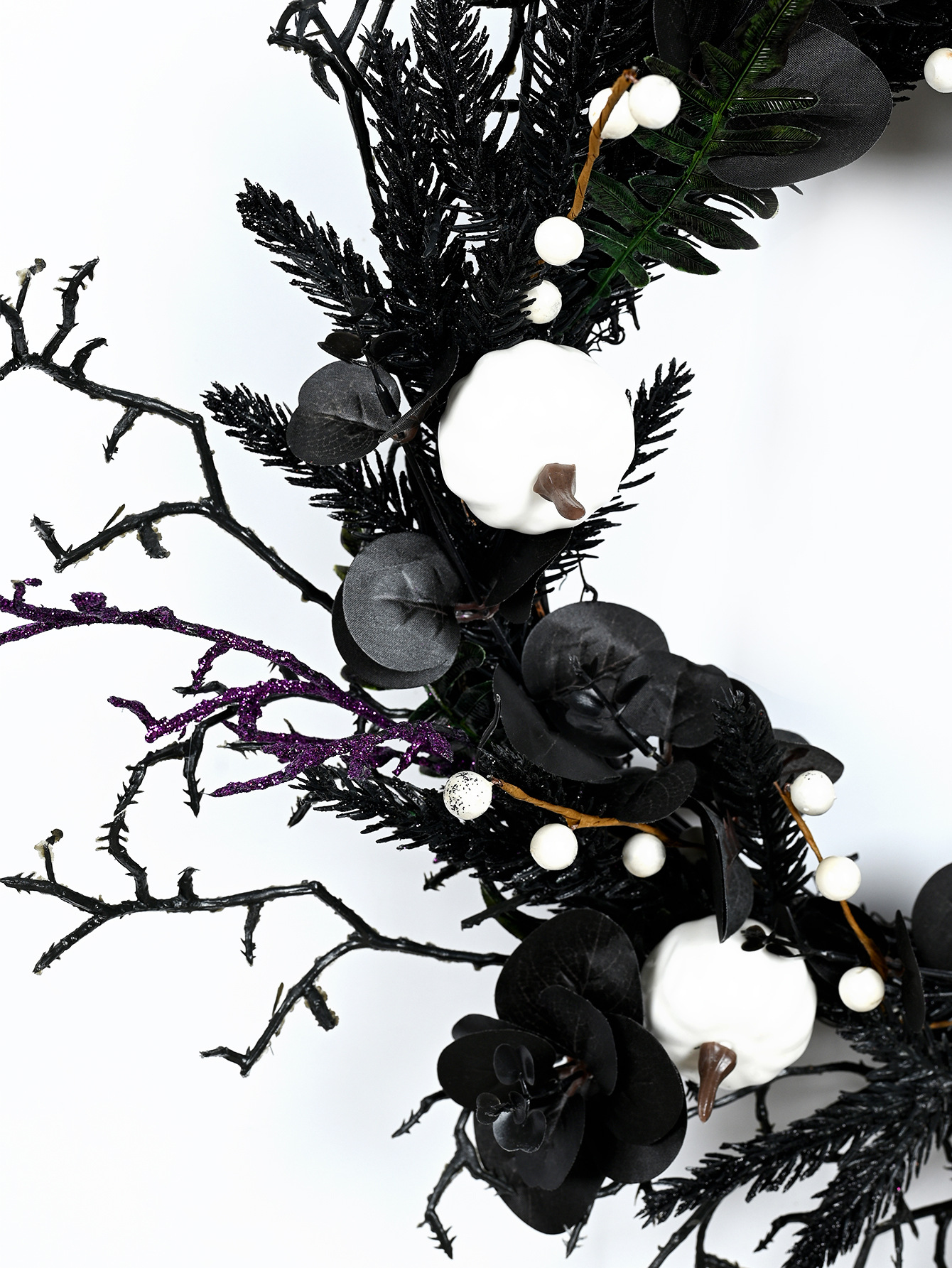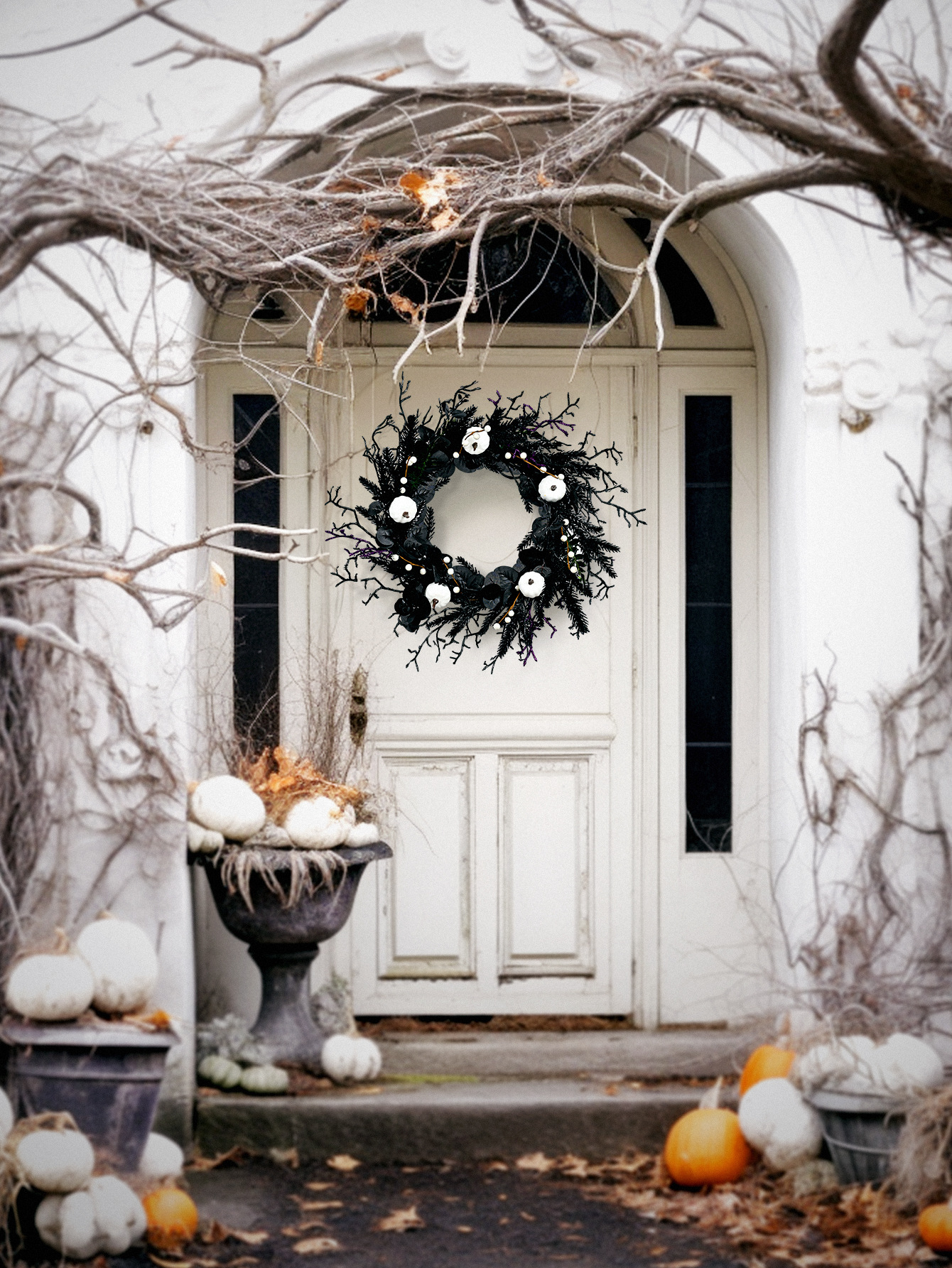 跨境圣诞藤圈松针枯枝白南瓜花圈鬼节派对装饰门挂布置万圣节花环