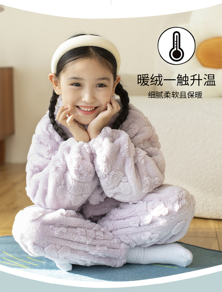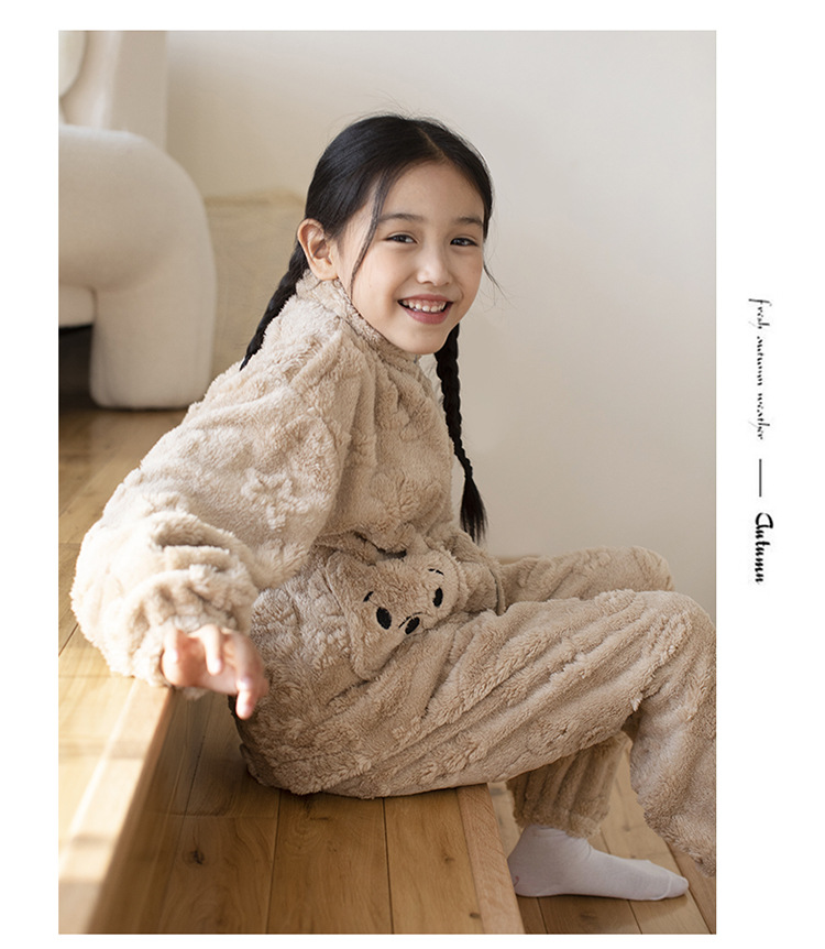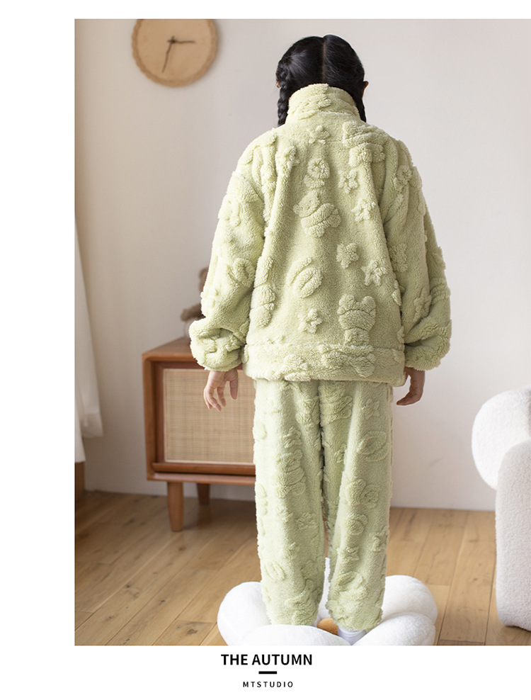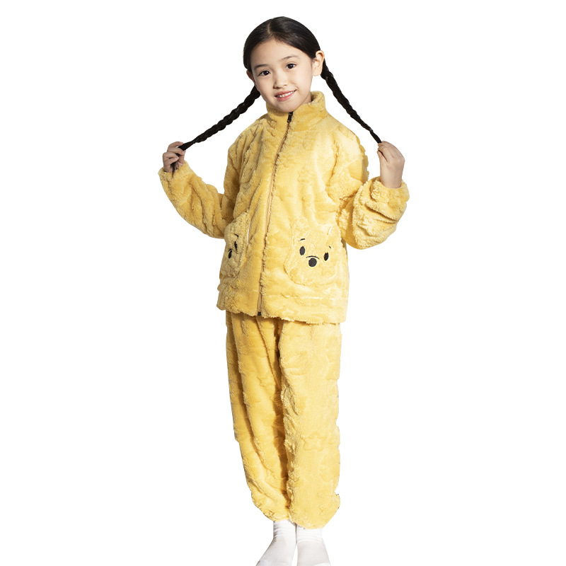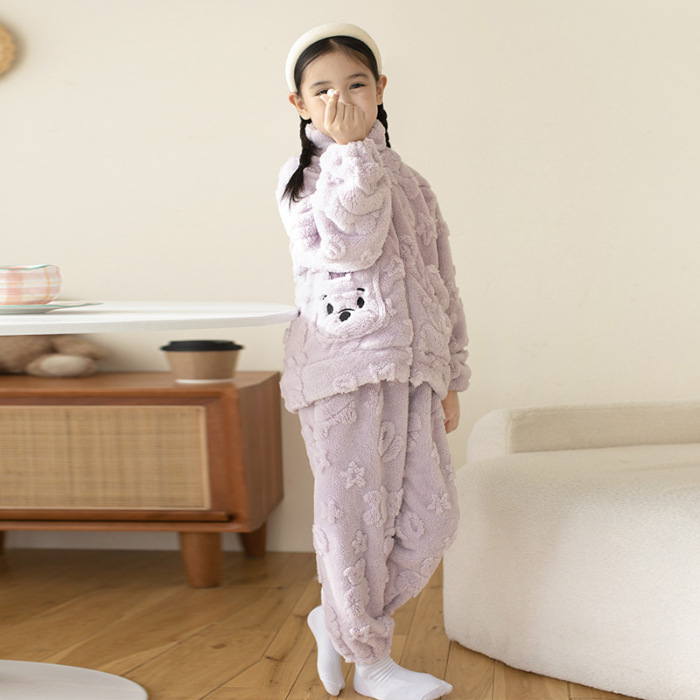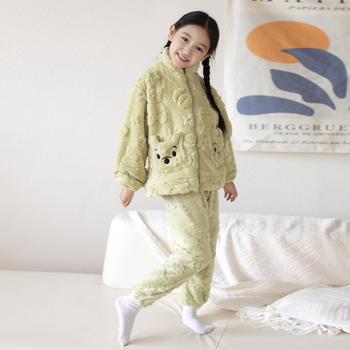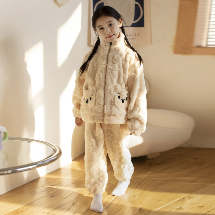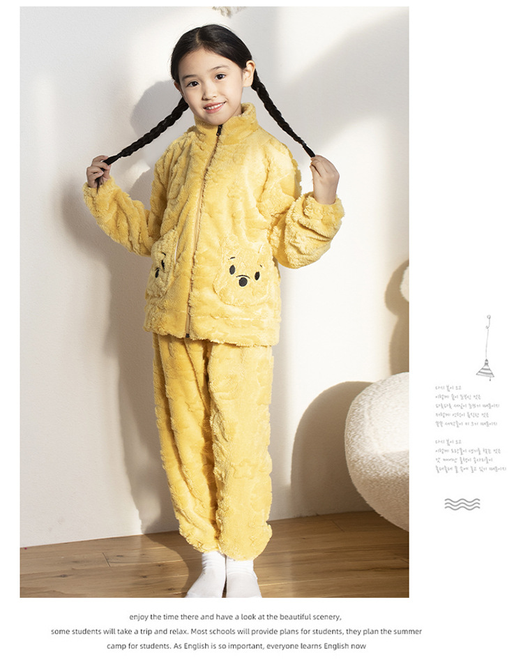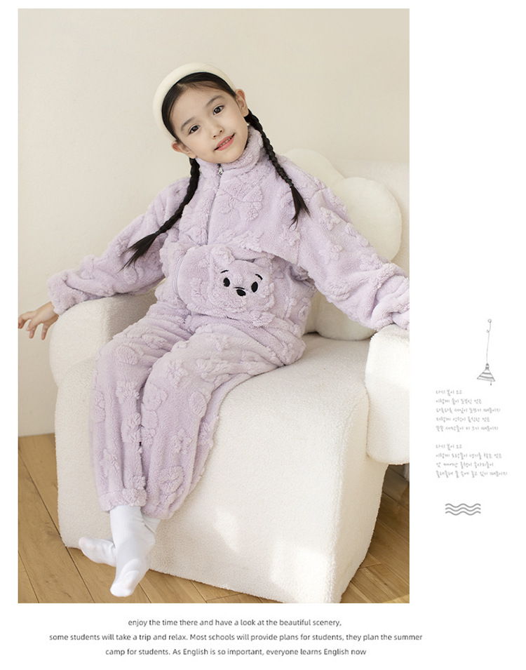 儿童睡衣秋冬季珊瑚绒女童可爱卡通拉链立领法兰绒中小大童家居服