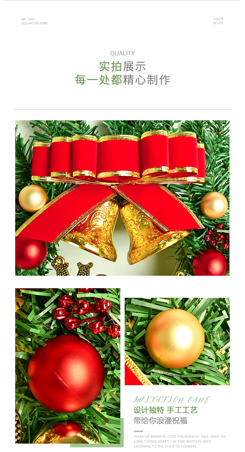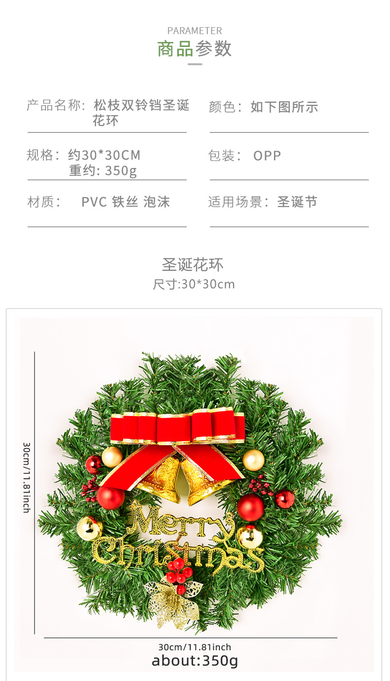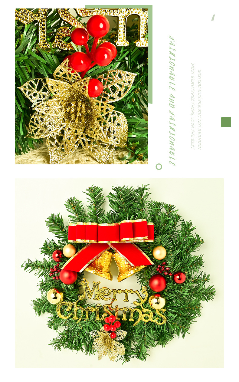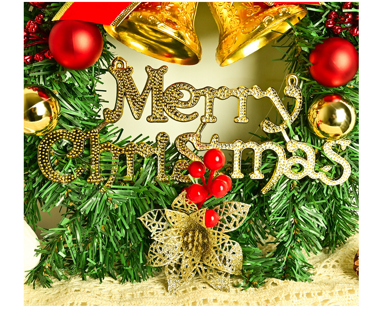 跨境圣诞节装饰品30cm圣诞圈花环圣诞装饰藤条门挂布置圣诞节花环