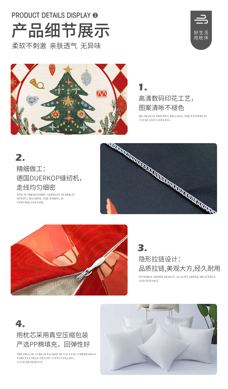 圣诞节字母印花客厅抱枕套跨境节日家居装饰书房沙发靠垫套靠枕套