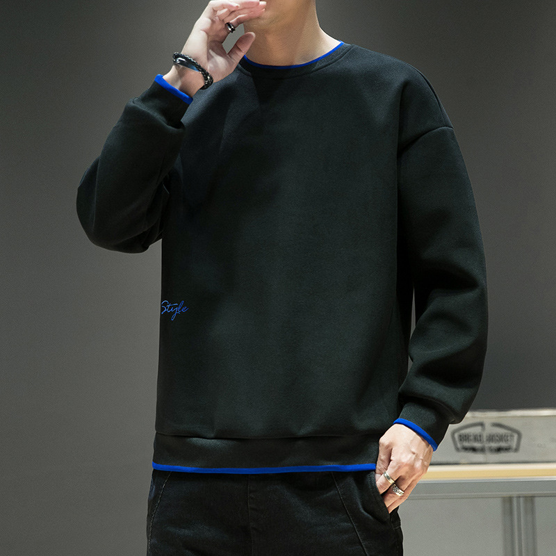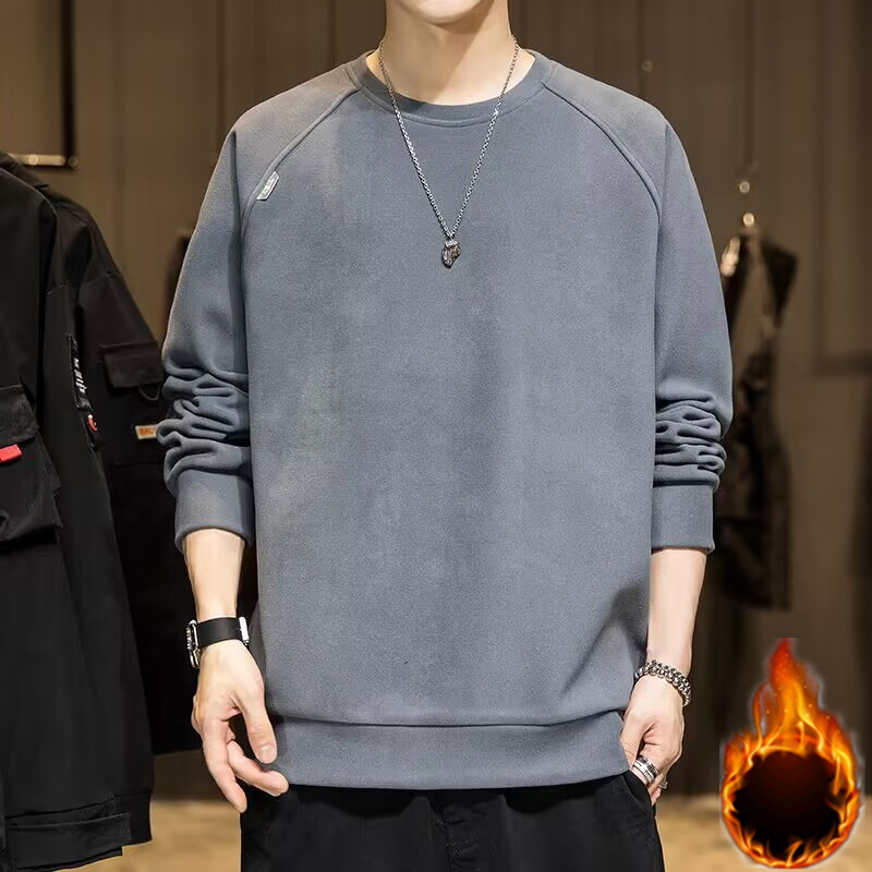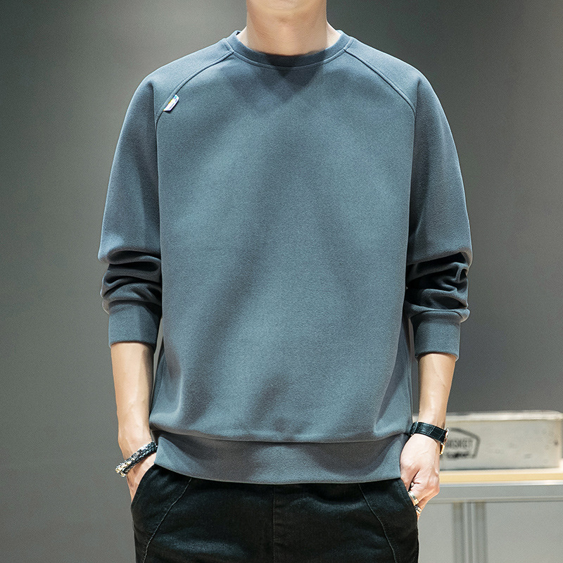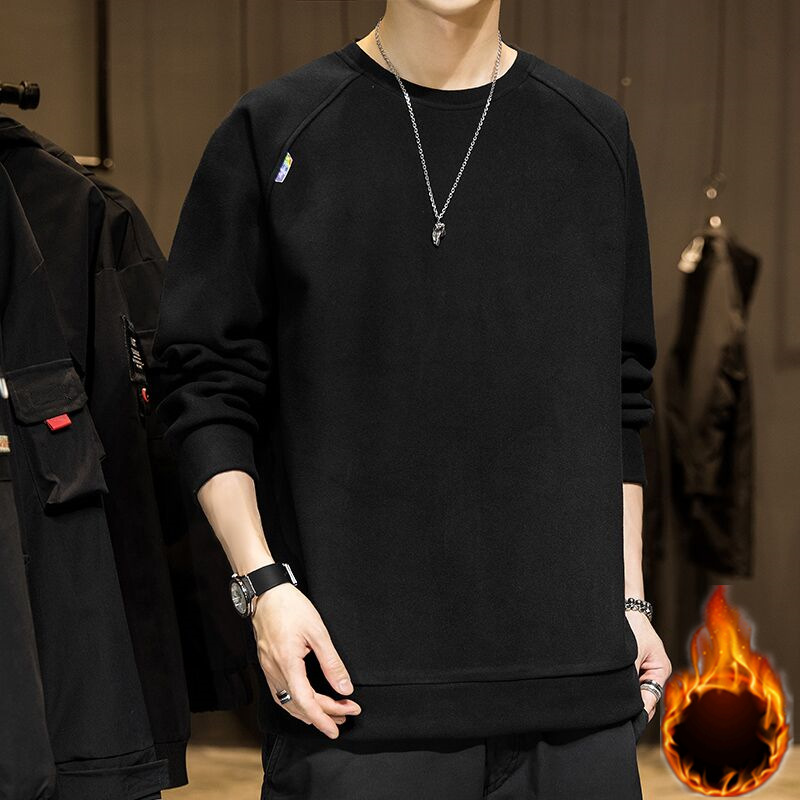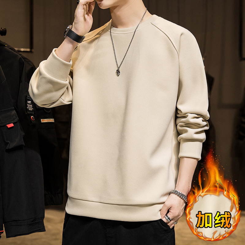 保暖德绒卫衣男士宽松时尚百搭圆领打底衫加绒卫衣男款秋冬季新款