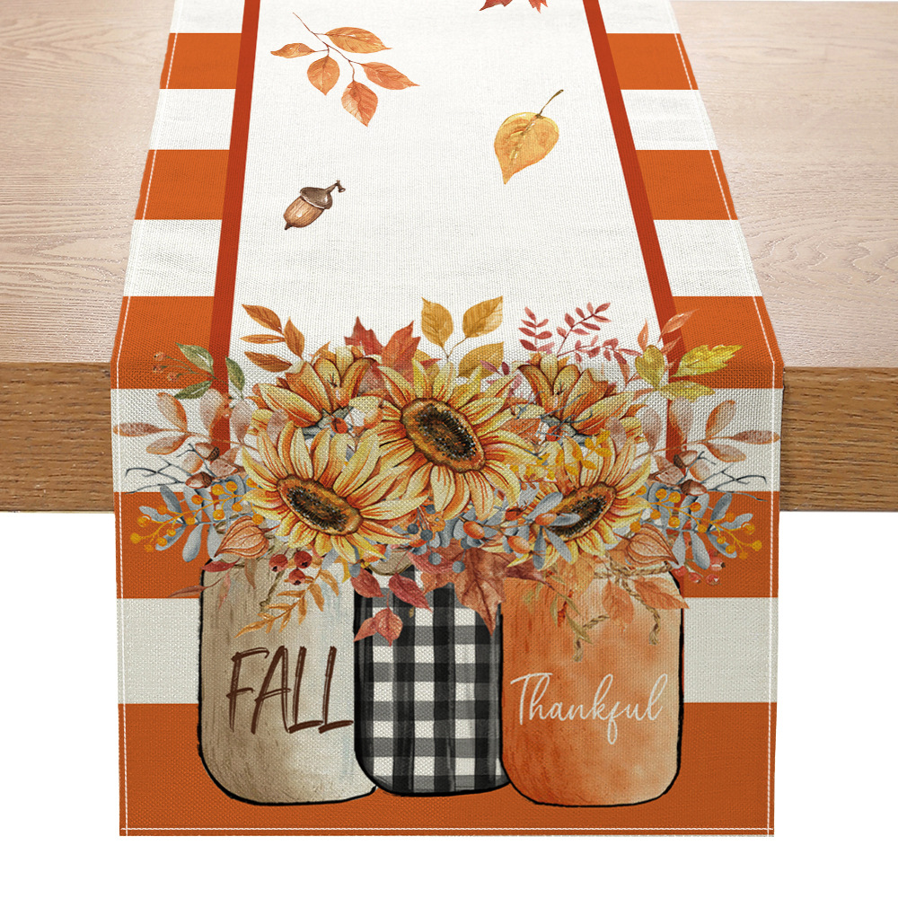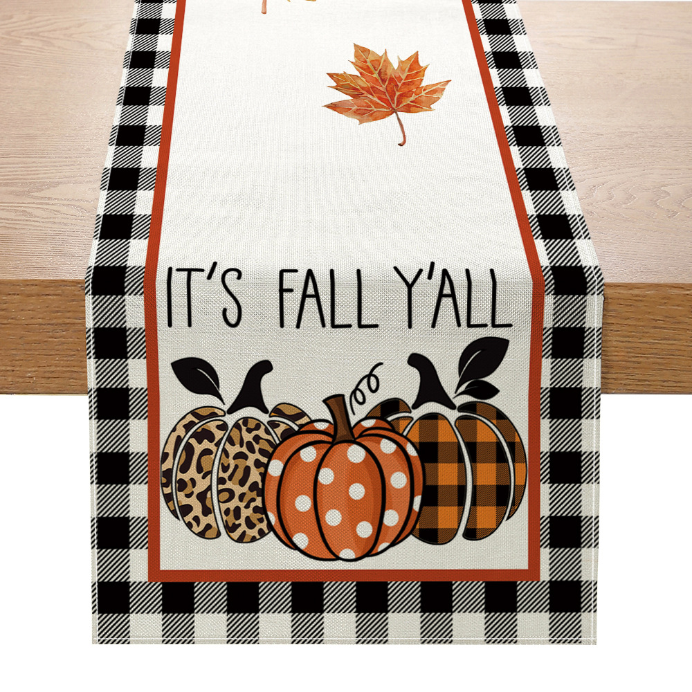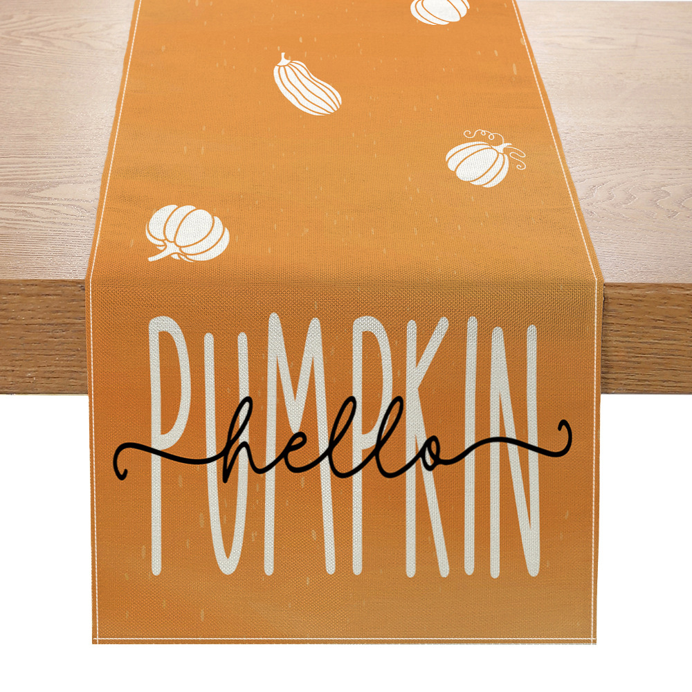 跨境亚麻桌旗秋季丰收日南瓜印花茶几餐桌装饰布客厅厨房台布批发