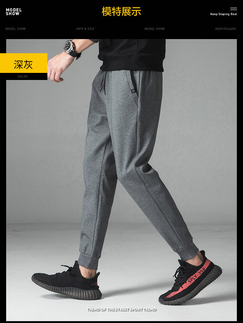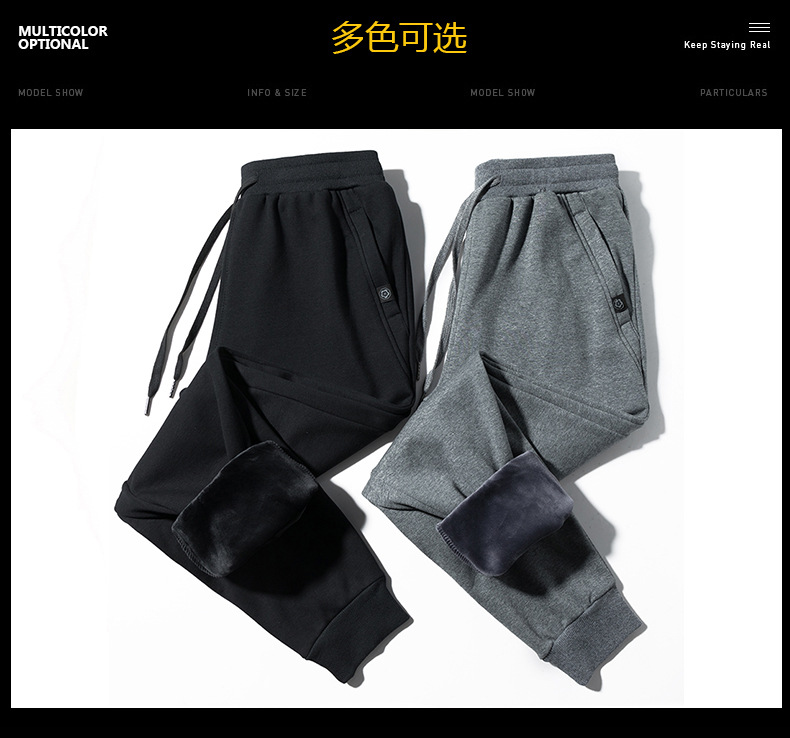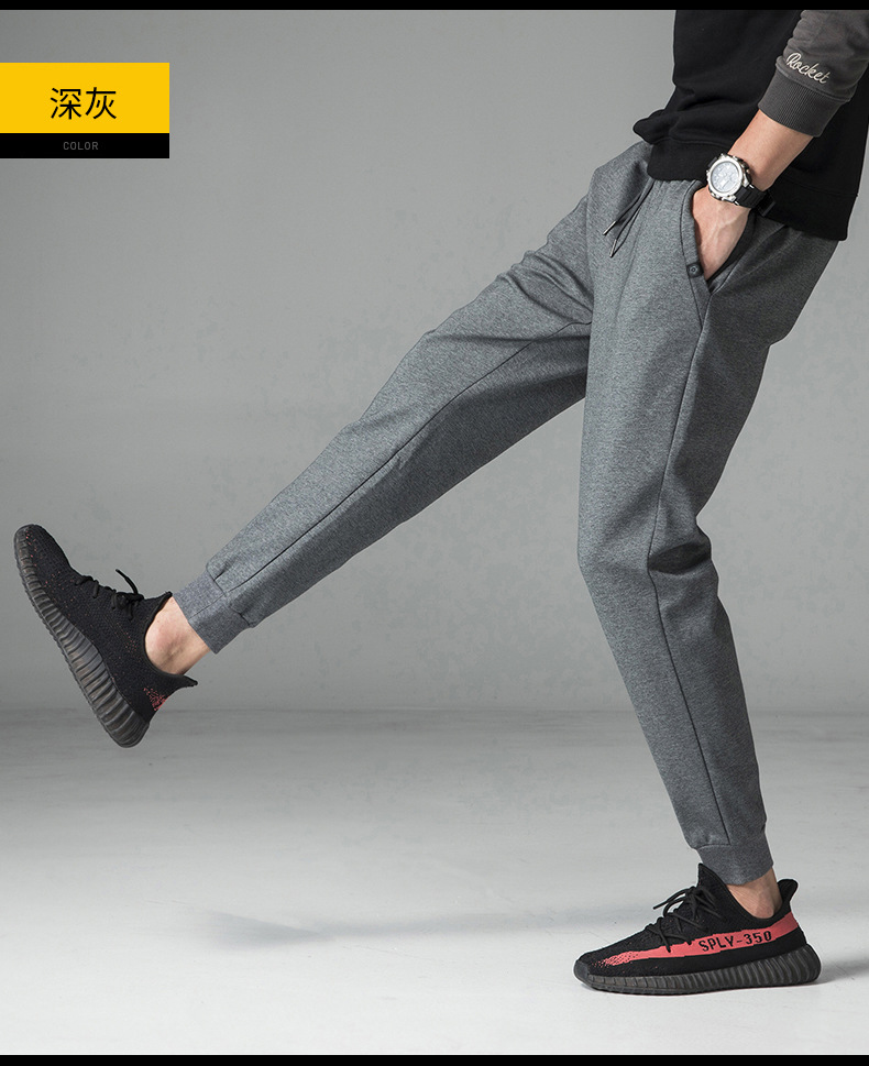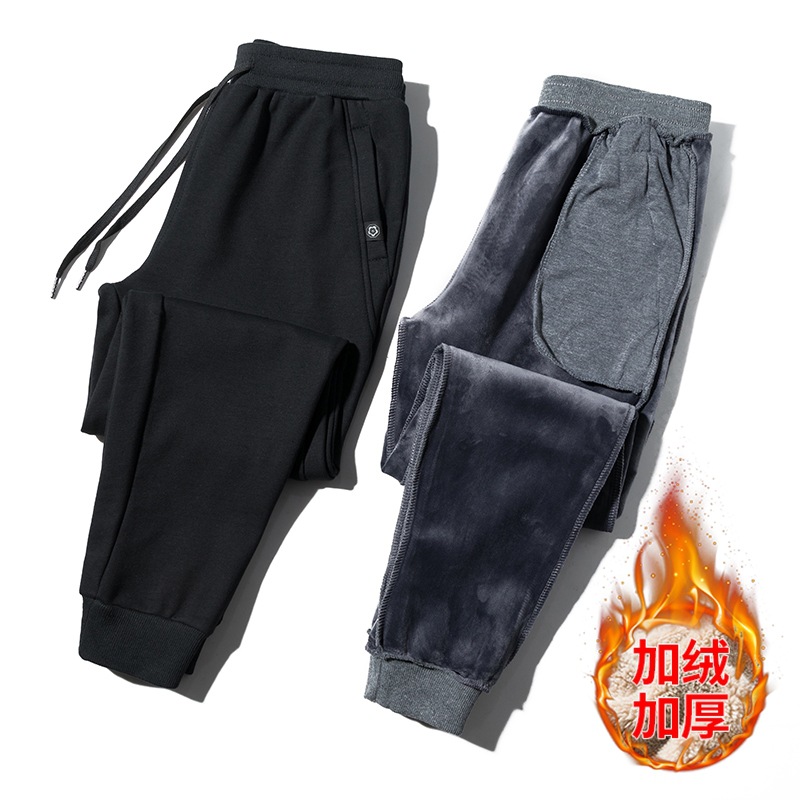 2024休闲裤男款棉质男士束脚宽松简约纯色男装潮牌加绒长裤子男款