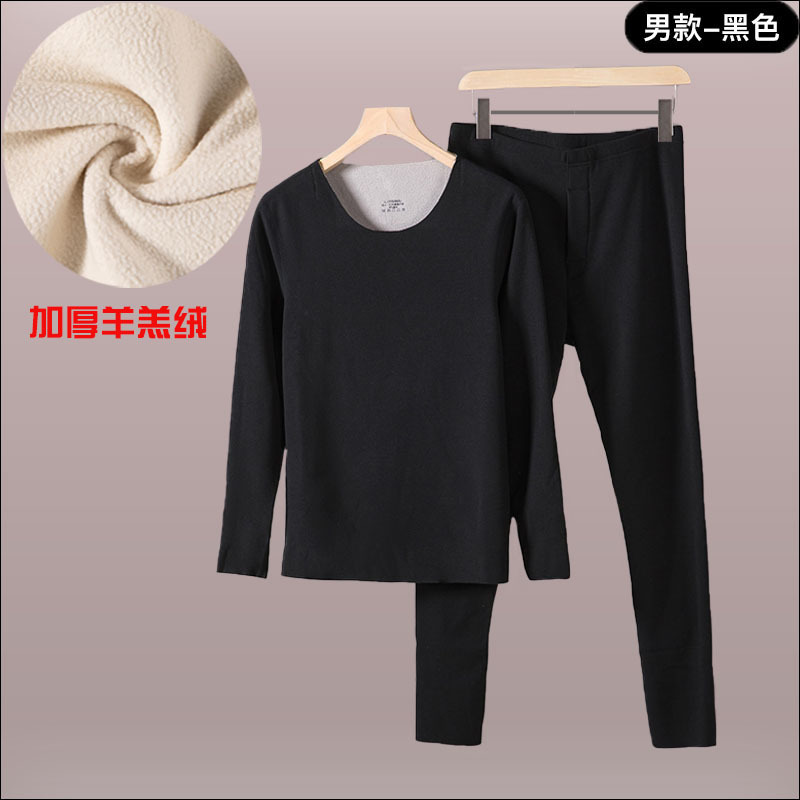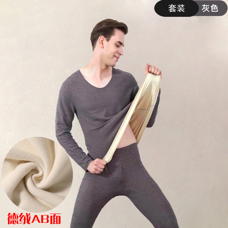 抗德绒保暖内衣套装秋衣秋裤女秋季男加绒加厚无痕男士圆领蚕丝
