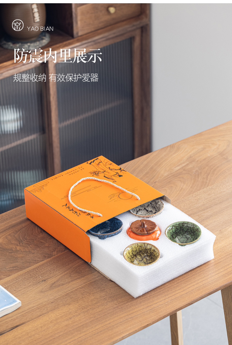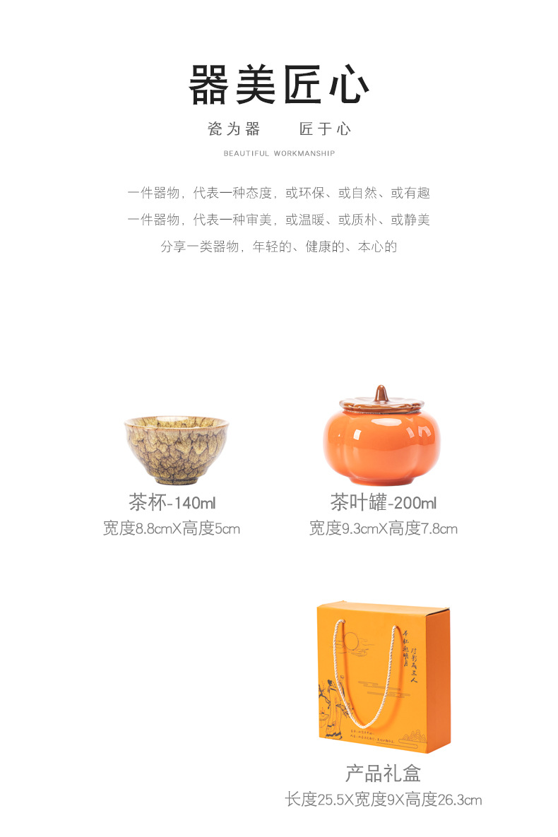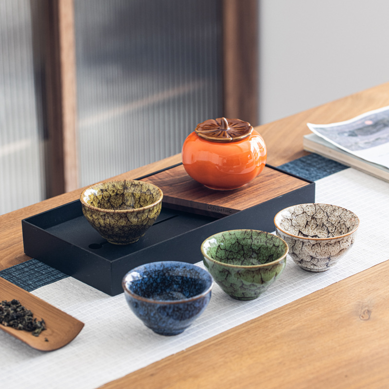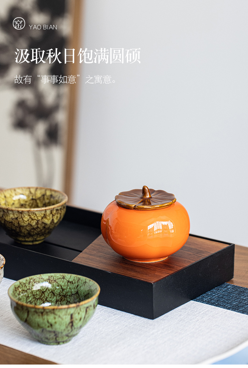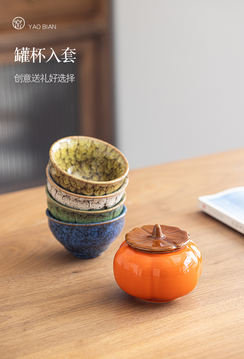陶瓷厂家创意礼品茶具套装柿子茶叶罐伴手礼茶杯五行杯茶盏品茗杯