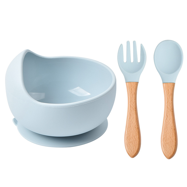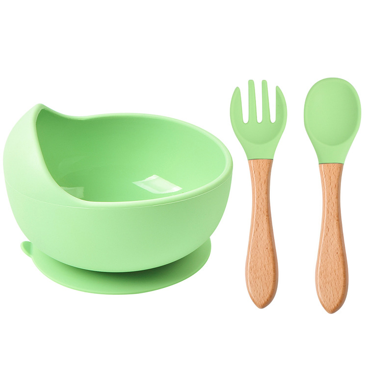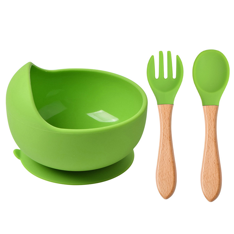婴儿餐具硅胶碗儿童木柄勺婴儿碗套装宝宝吸盘碗儿童叉勺套装批发
