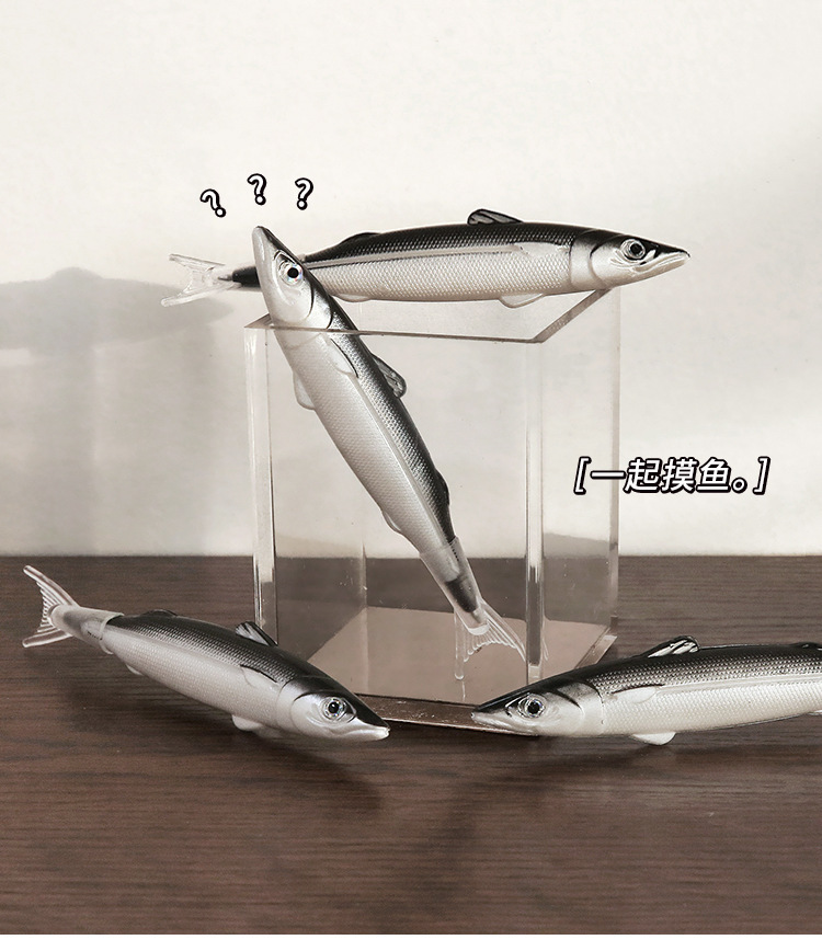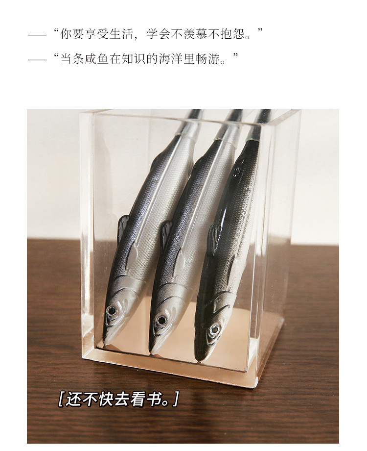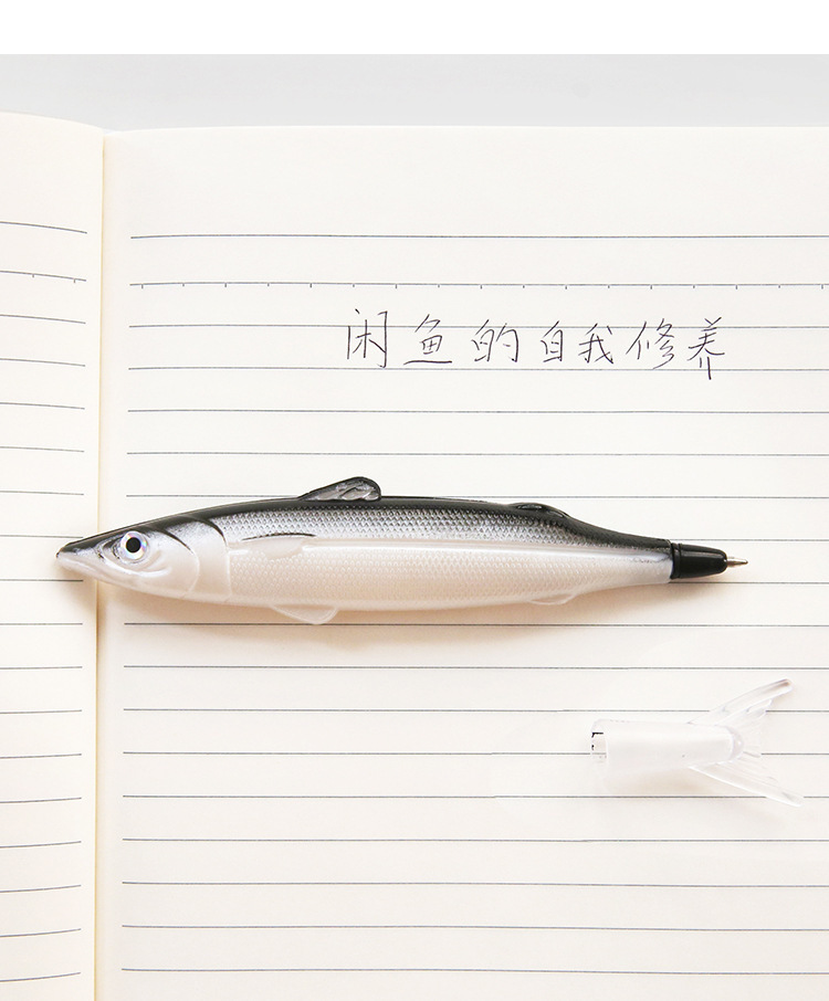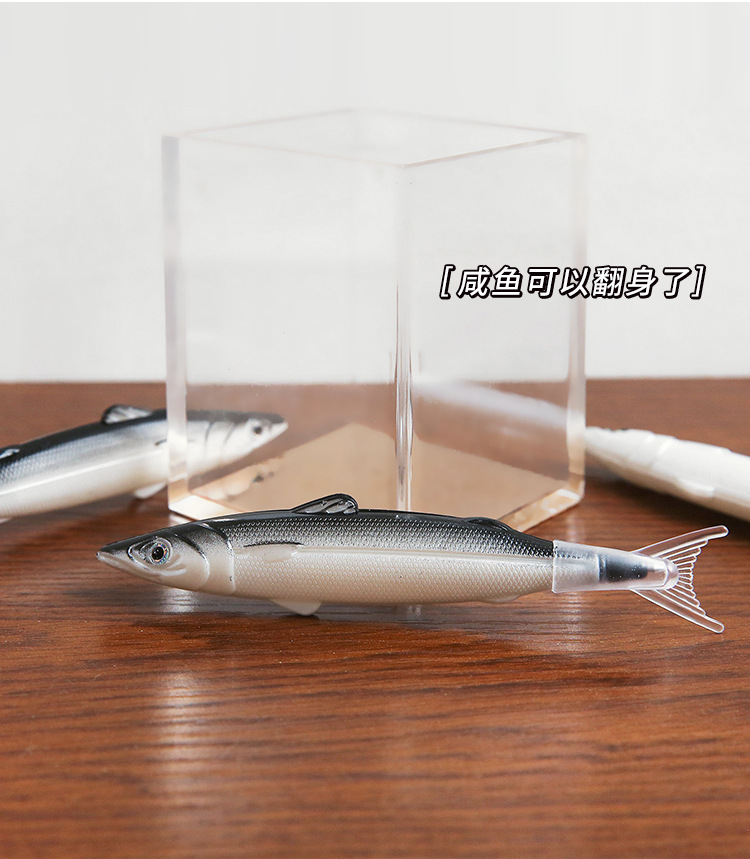 创意趣味一起摸摸鱼造型笔学生用搞怪文具圆珠笔0.5m黑仿真闲咸鱼