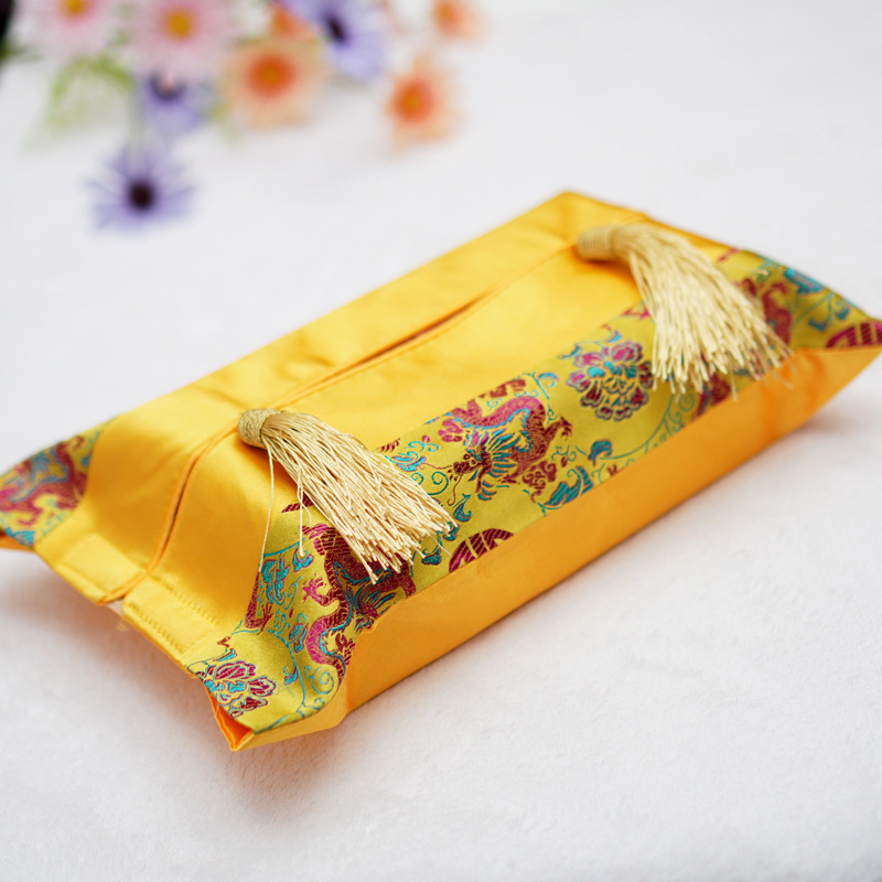 纸巾盒套布艺复古中国风纸巾套简约流苏织锦家饰车载抽纸盒袋套
