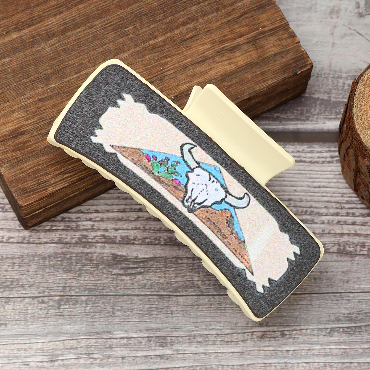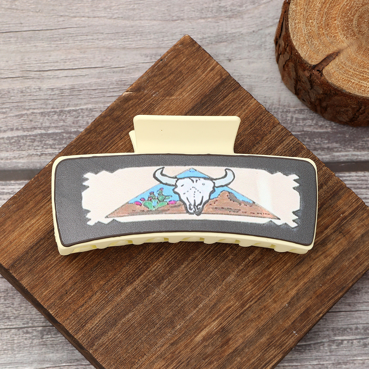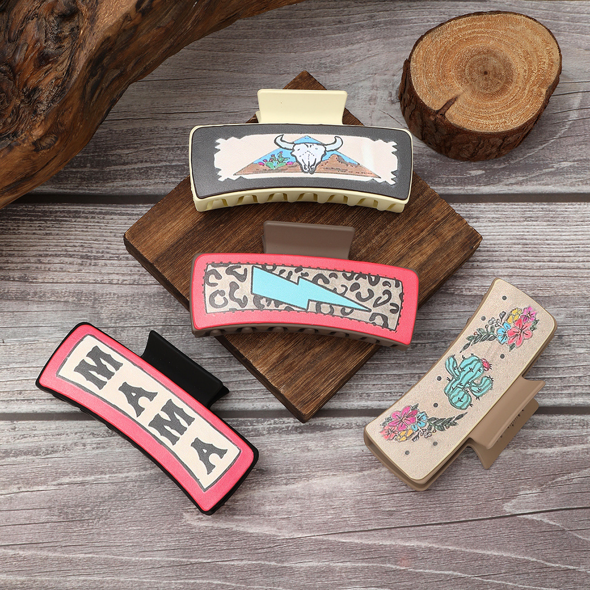 跨境西部风皮革发夹英文字母牛头仙人掌抓夹速卖通亚马逊