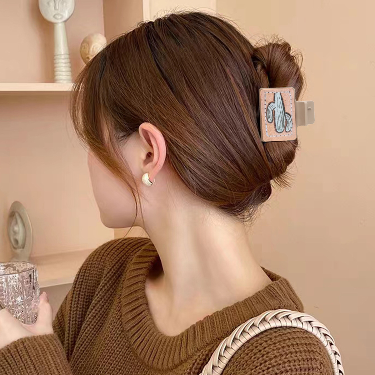 西部风仙人掌蝴蝶花朵皮革发夹女士鲨鱼夹抓夹速卖通亚马逊跨境