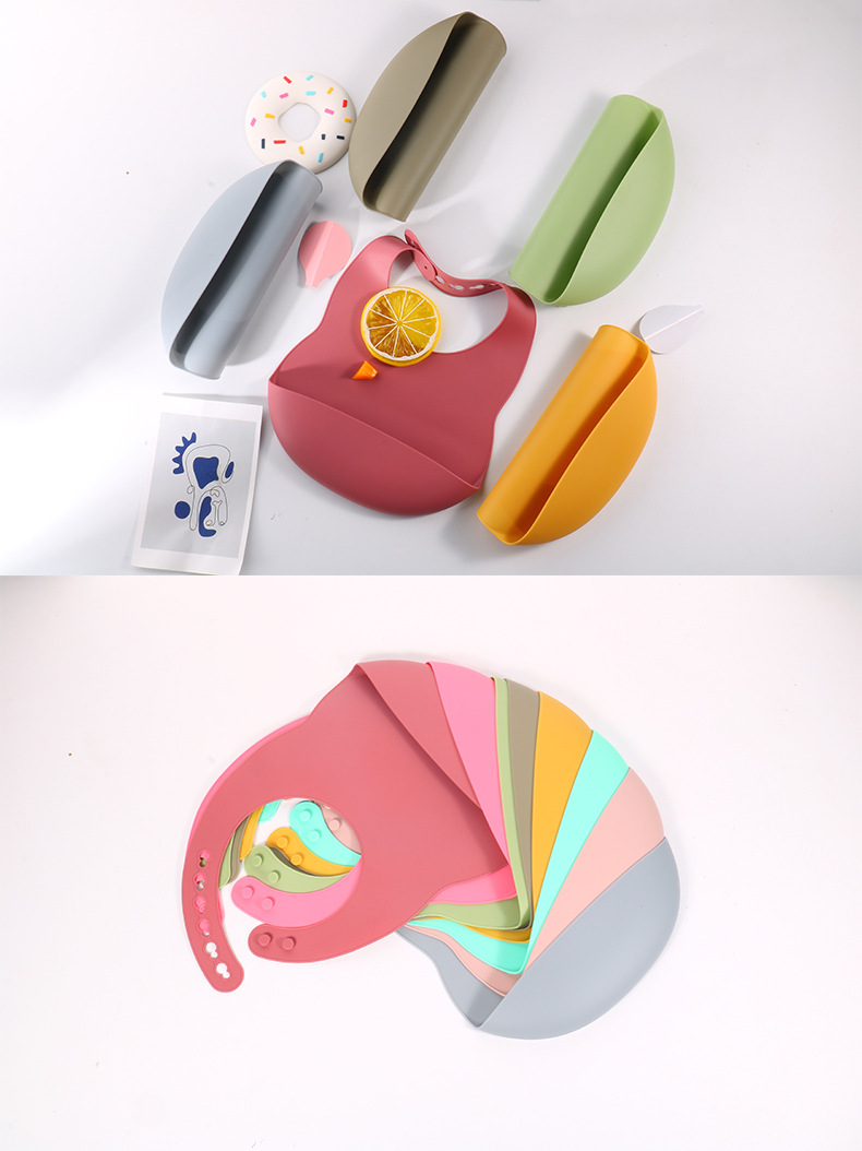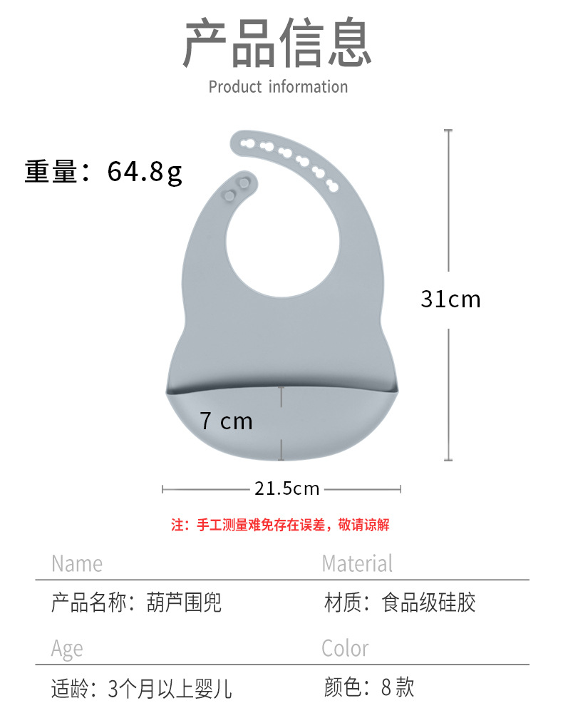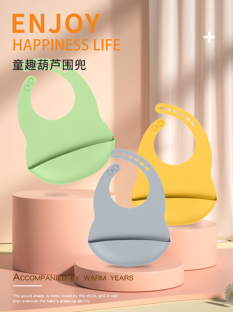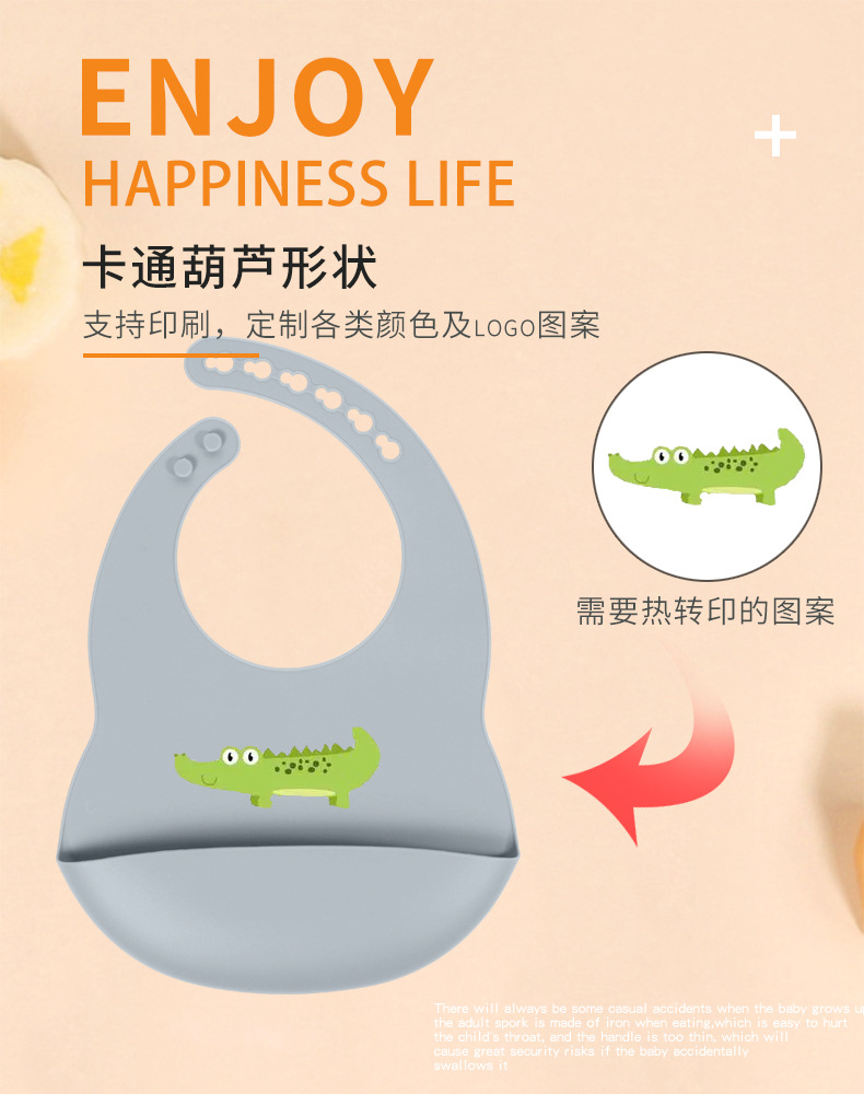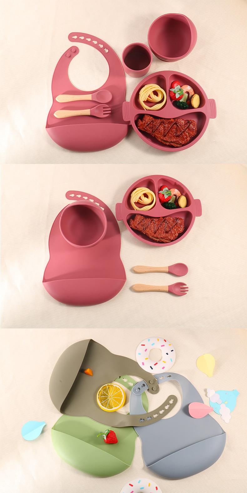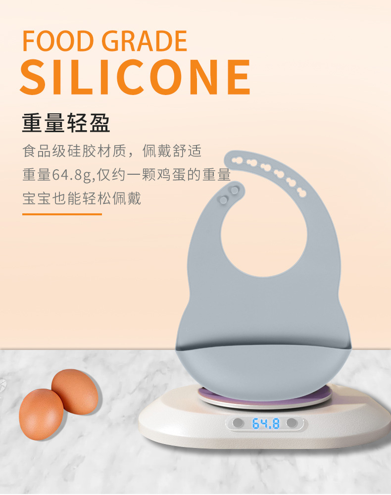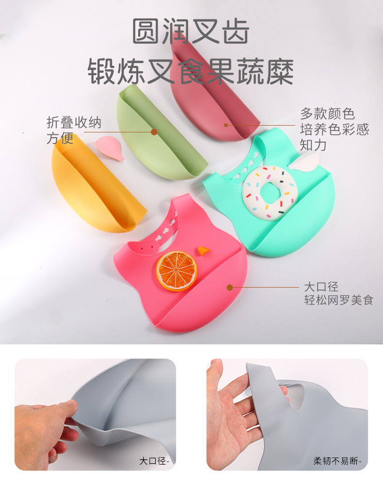 婴儿食品级硅胶围兜柔软方便清洗多档位调节高品质喂养餐具3件套