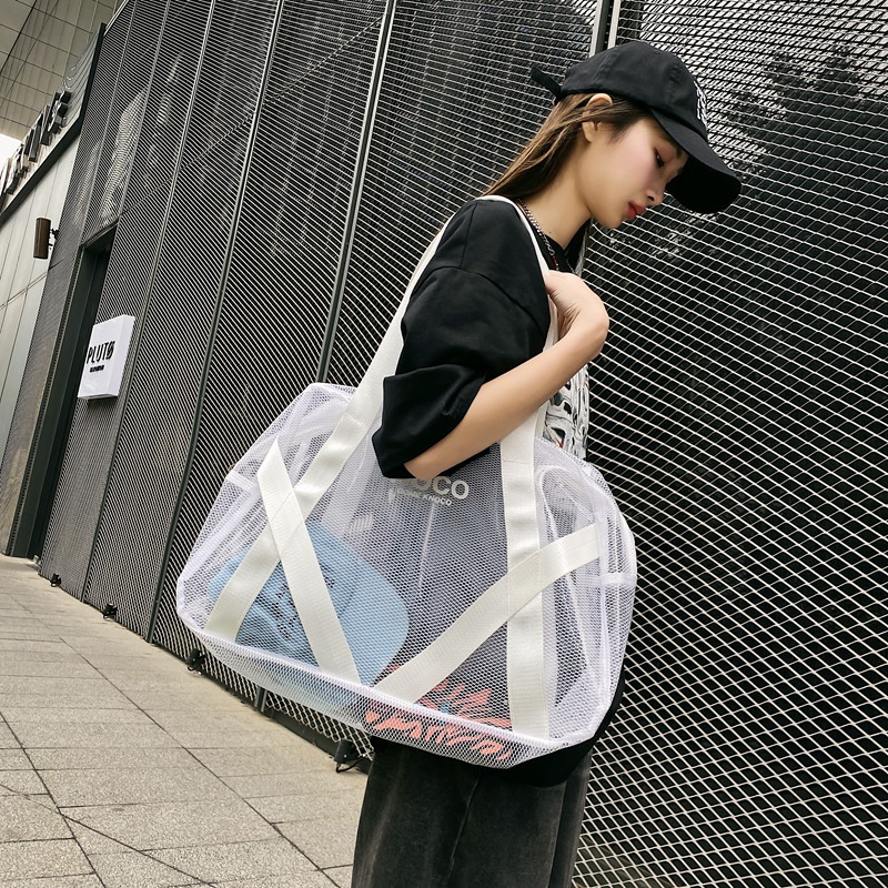 旅行包大容量透明行李袋果冻单肩手提登机出差收纳住宿衣物包批发