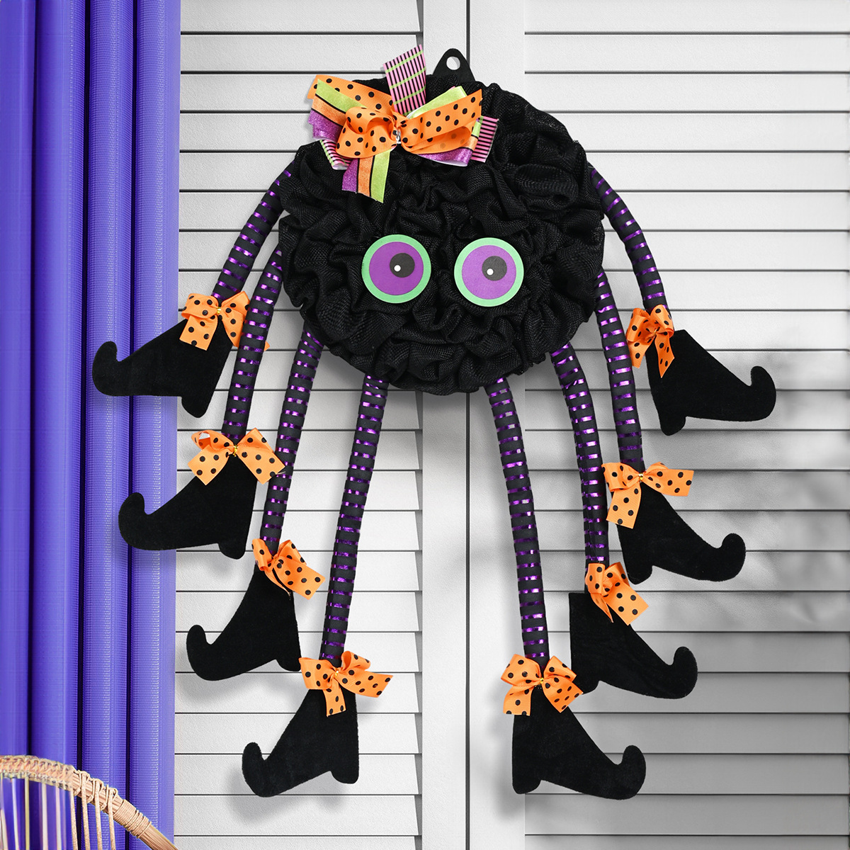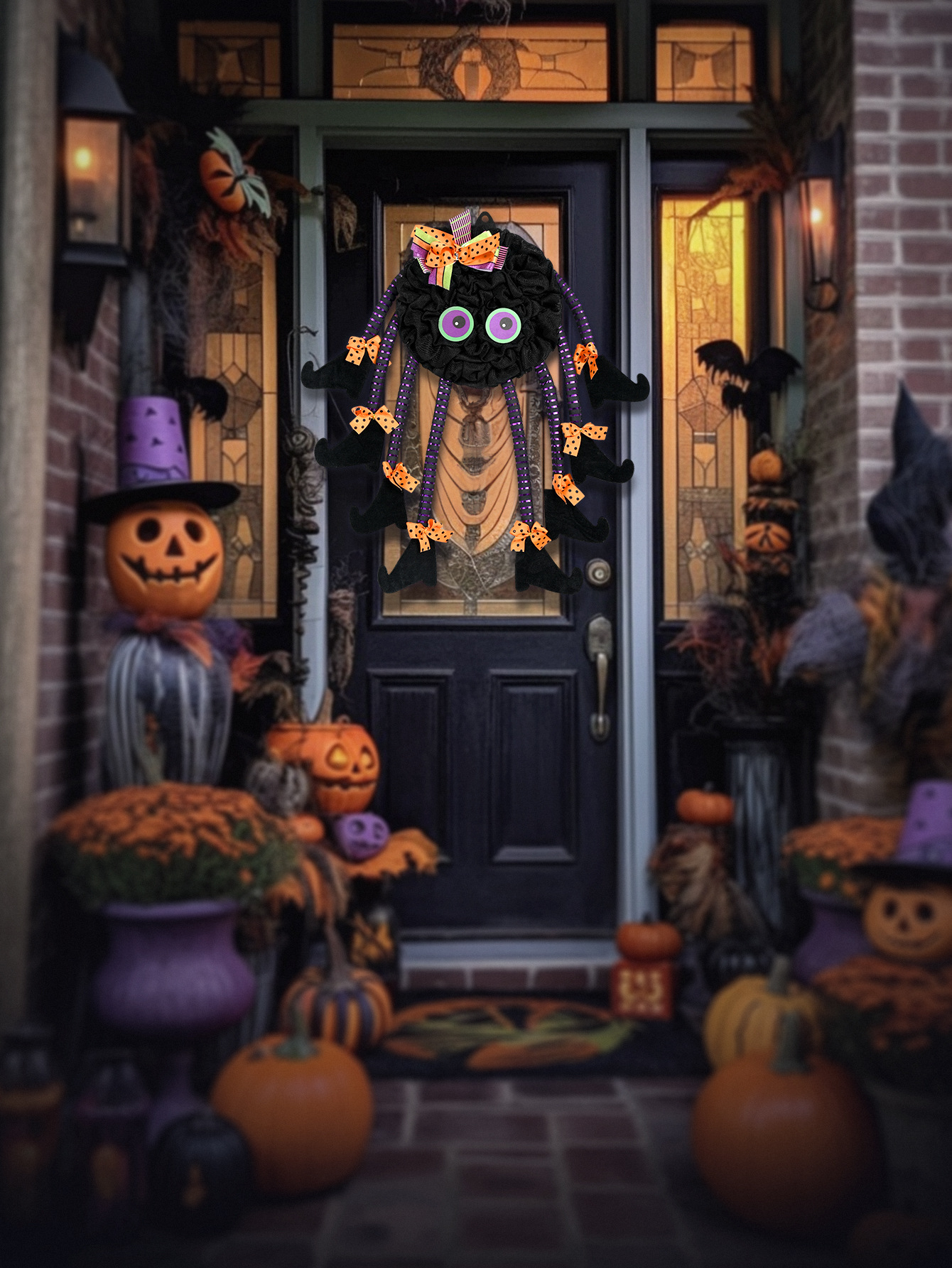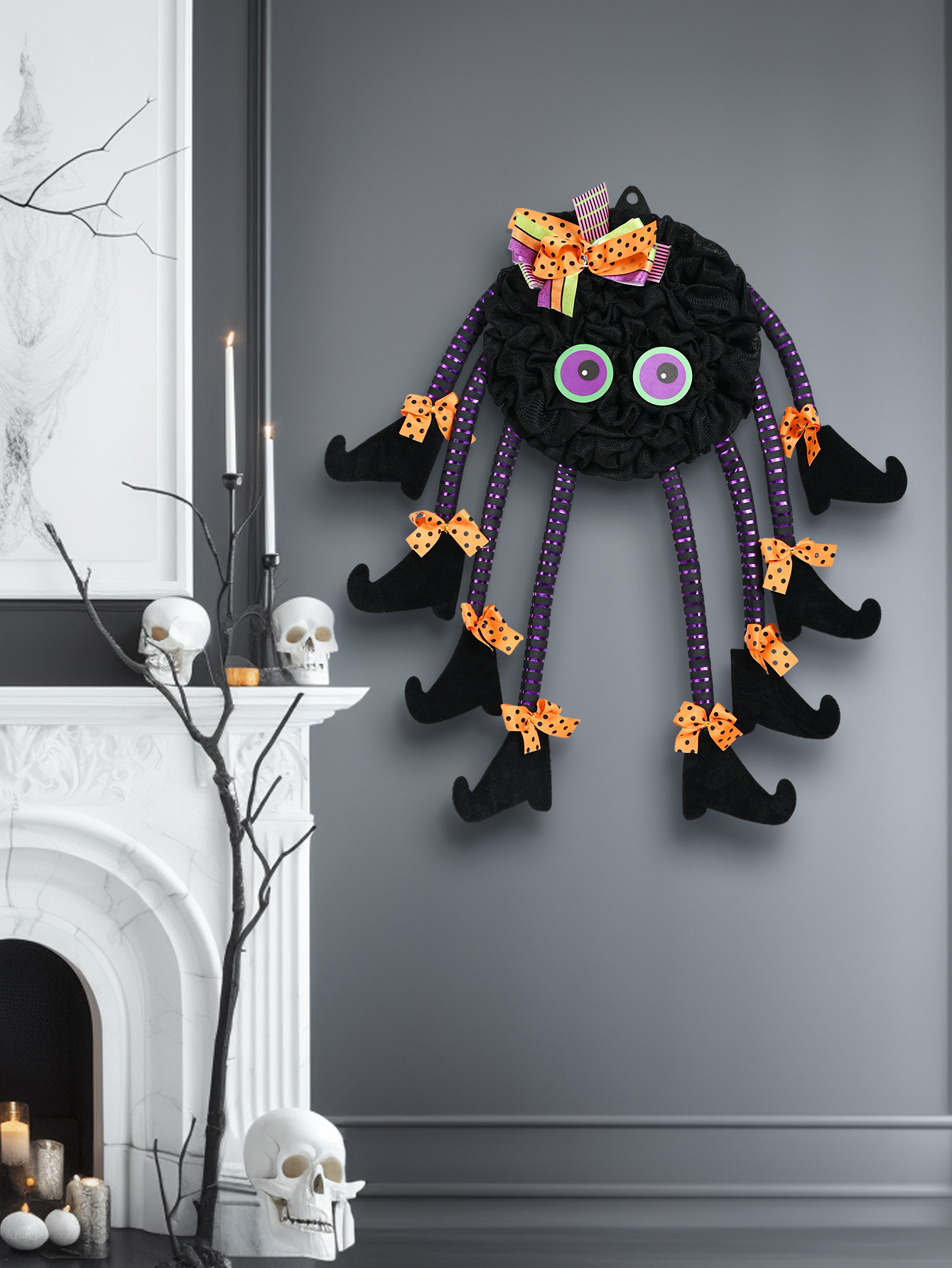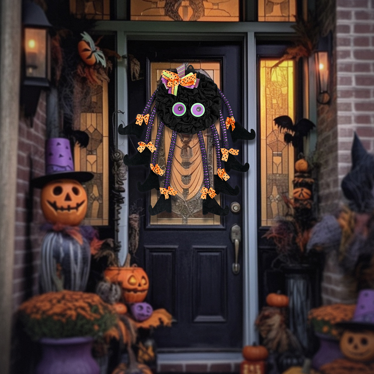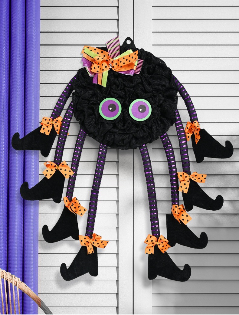 跨境圣诞节装饰藤圈花圈南瓜蜘蛛骷髅派对布置挂件挂饰万圣节花环