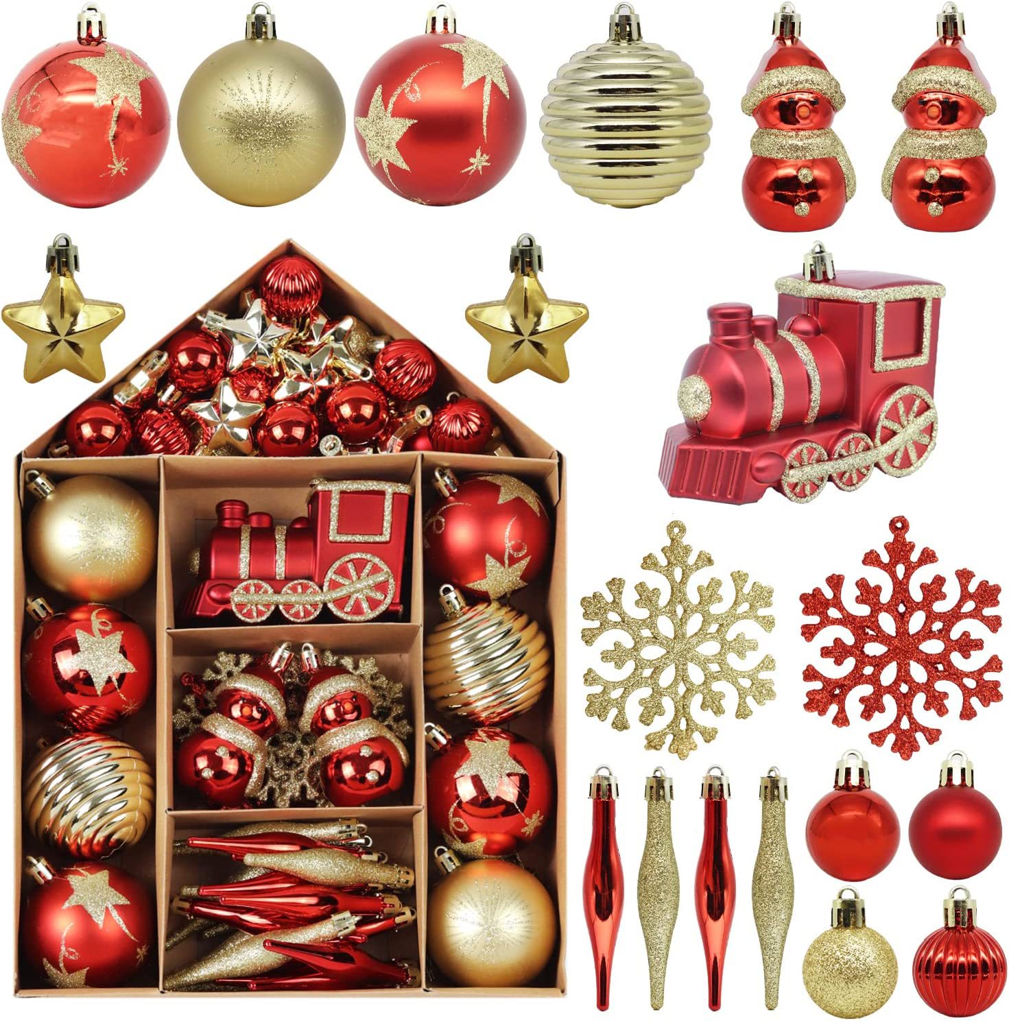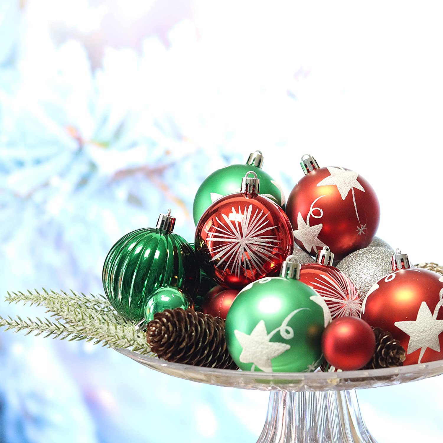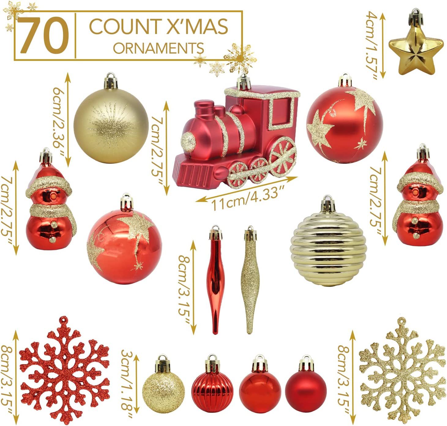 亚马逊热销圣诞球套装70PCS圣诞装饰品电镀彩绘工艺品 圣诞树挂件