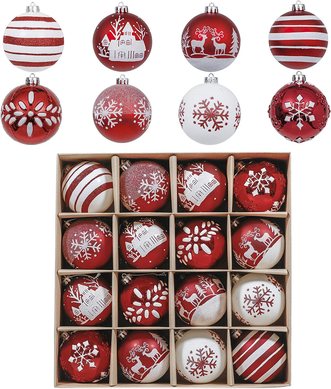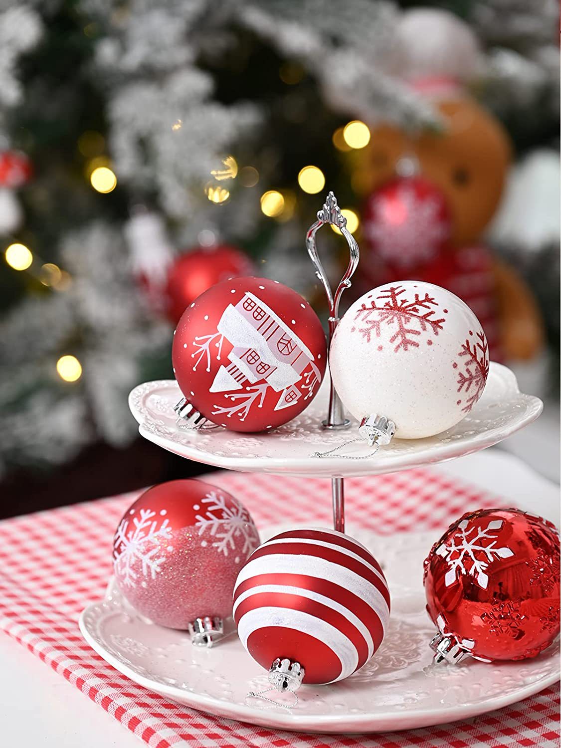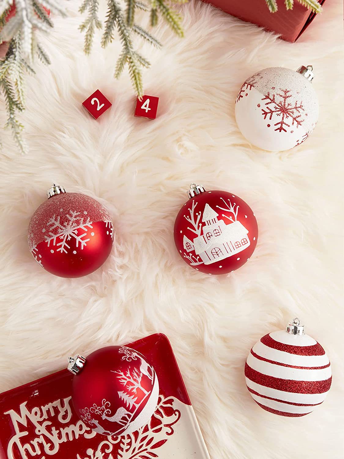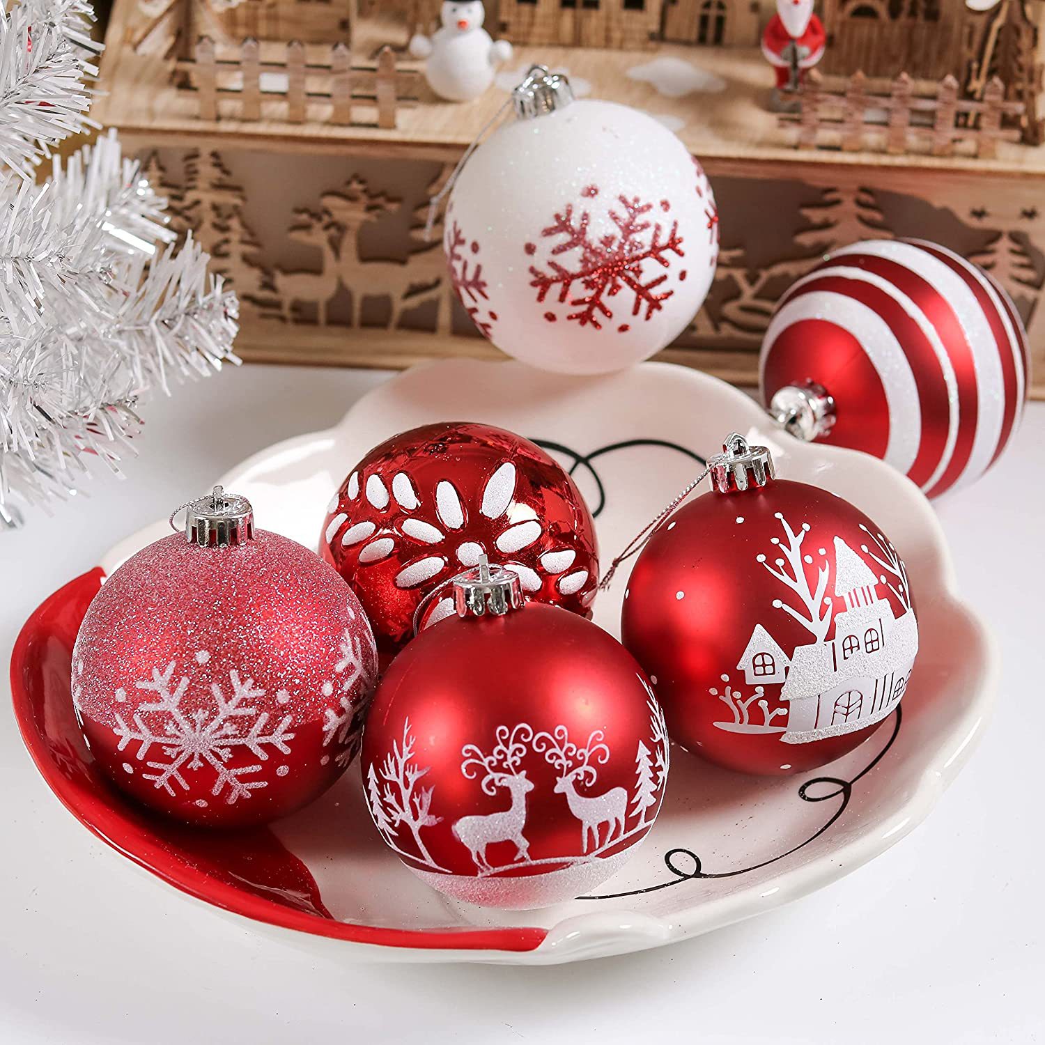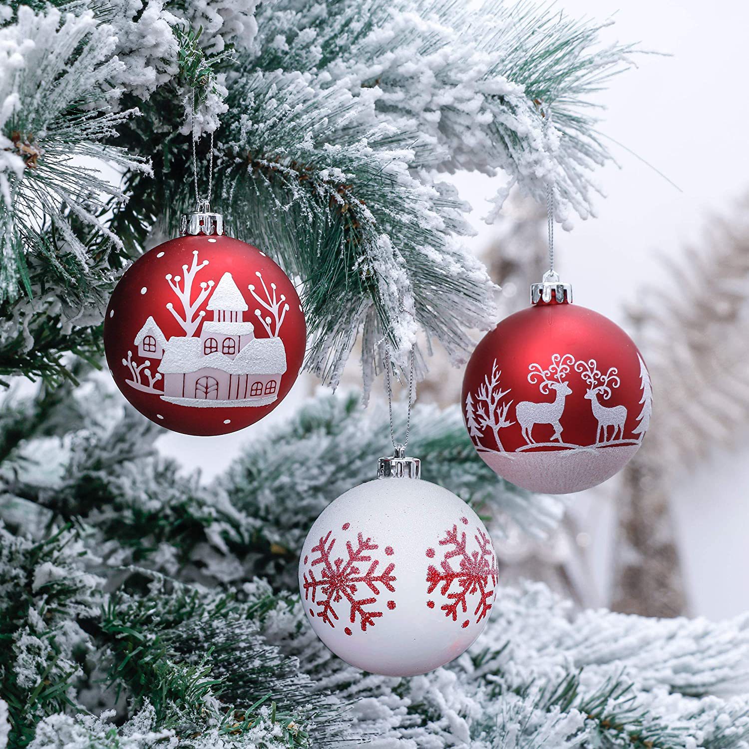 亚马逊新品圣诞球套装8cm电镀彩绘印刷工艺 圣诞树挂件圣诞节装饰