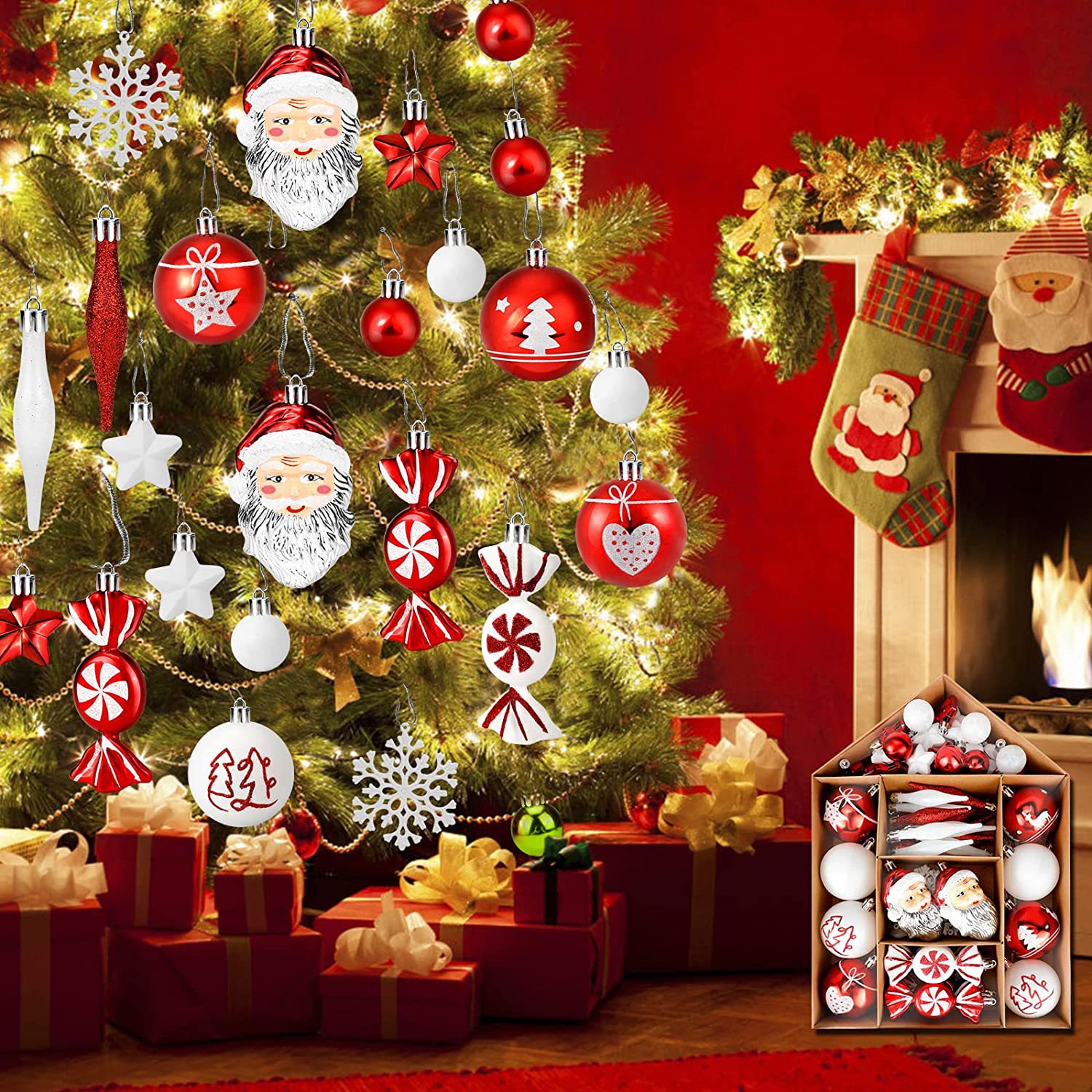 亚马逊热销 4CM100PCS装圣诞挂球 圣诞球手绘电镀球 家居装饰挂件