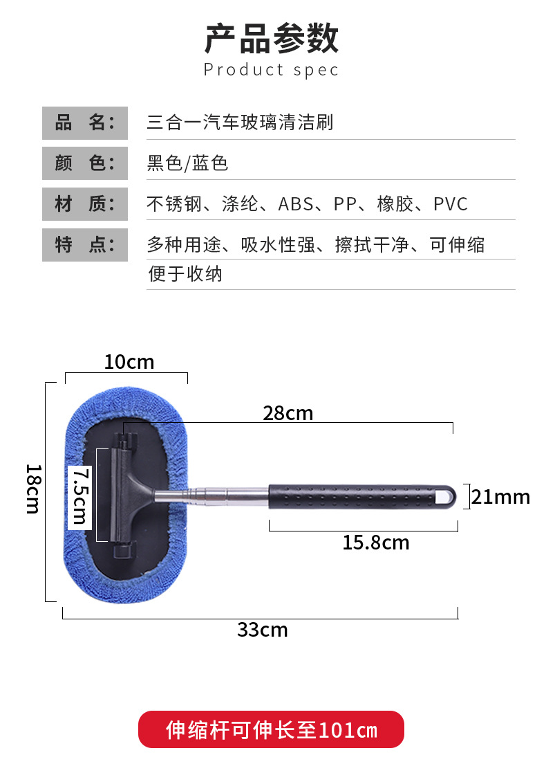 新款多用途3合1汽车挡风玻璃清洁车窗除雾刷板伸缩式后视镜刮水器