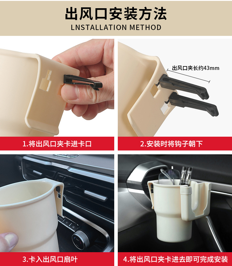 汽车出风口水杯架多功能饮料置物架车载手机支架收纳盒垃圾桶用品