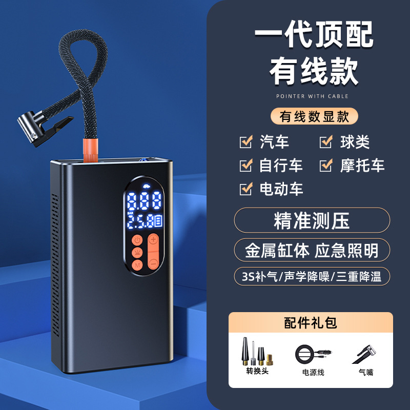 车载充气泵便携式轮胎打气泵车用无线电动打气筒冲气泵汽车加气泵