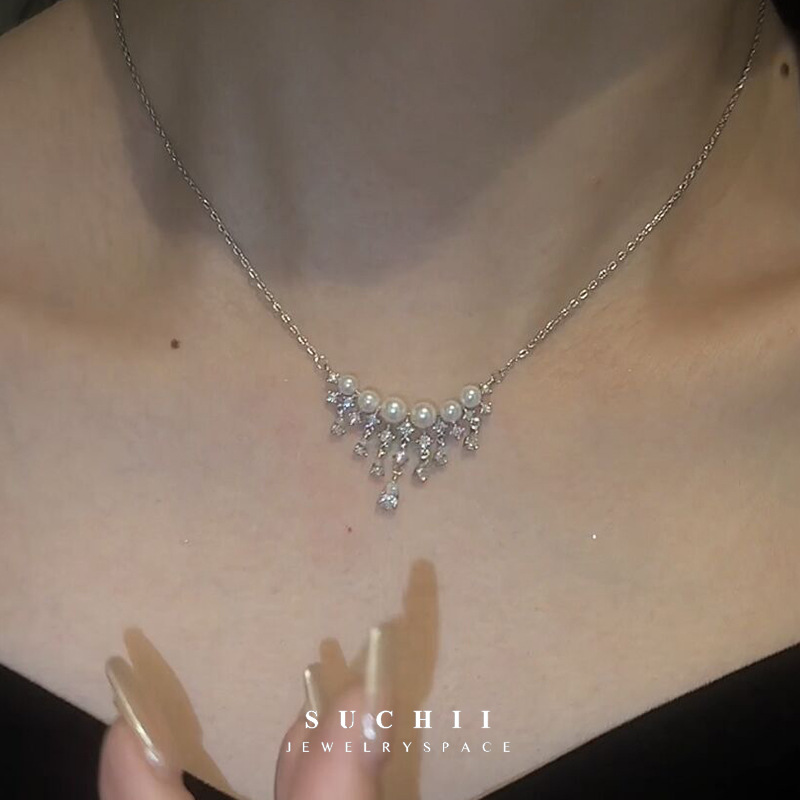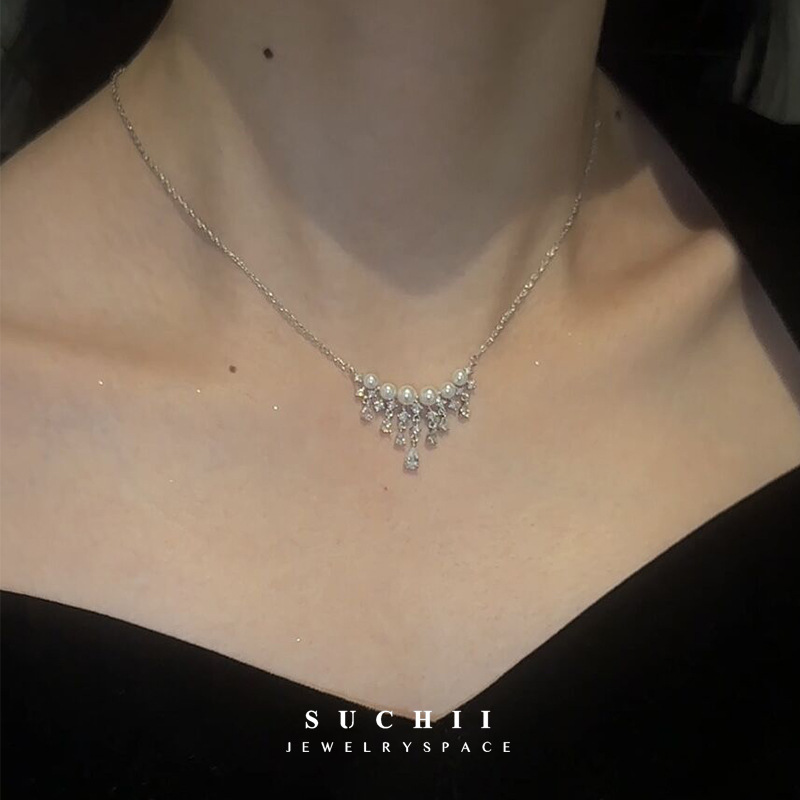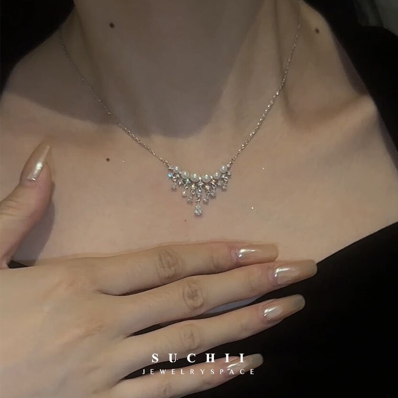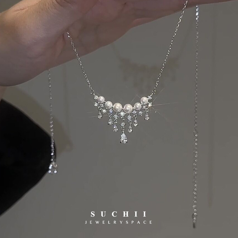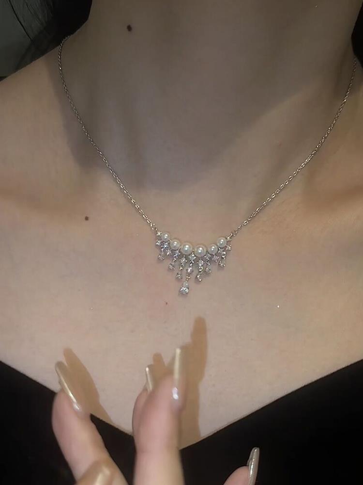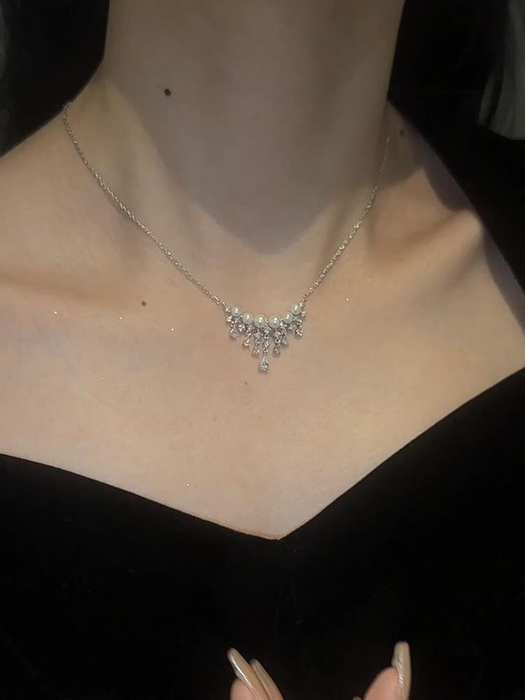 珍珠水滴满天星项链轻奢小众高级感设计百搭时尚气质颈链女锁骨链