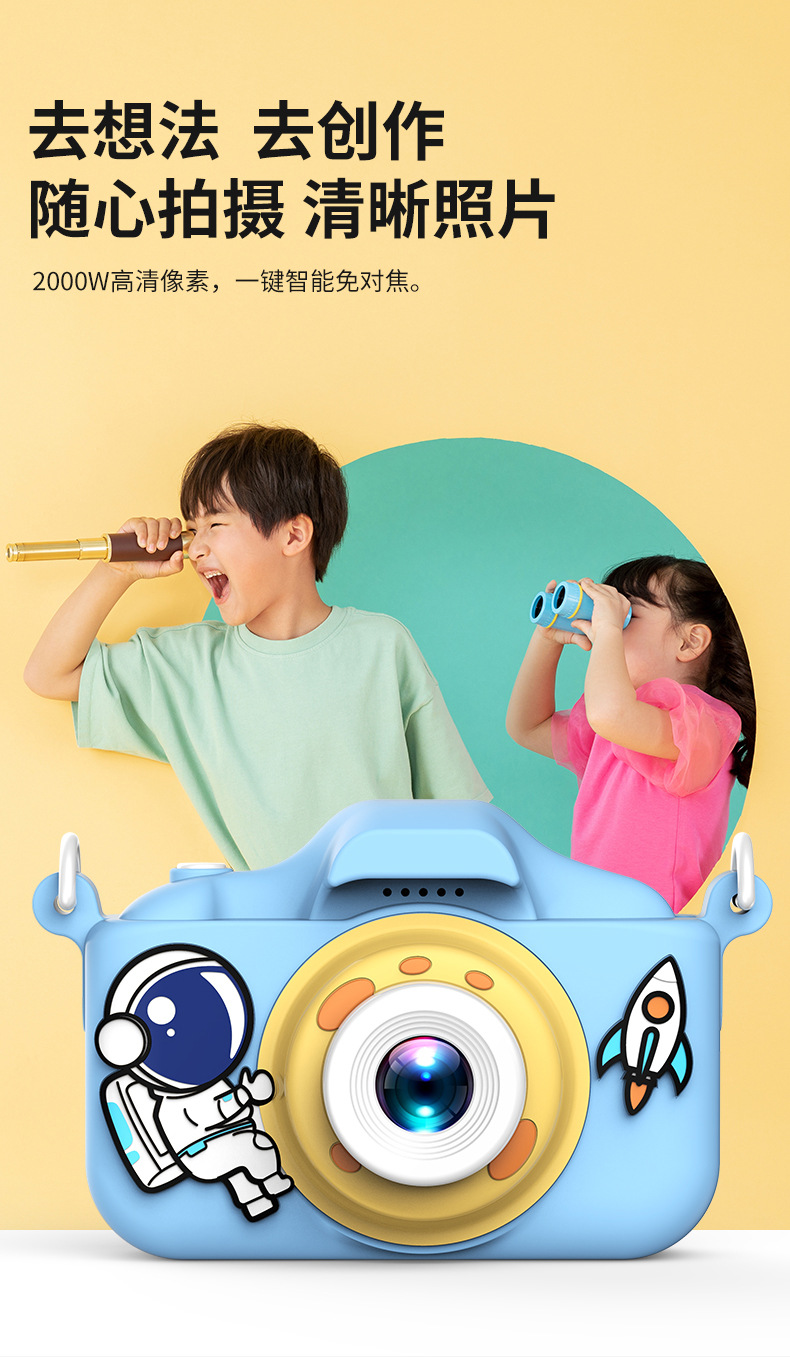 X200新款宇航员儿童迷你相机小单反卡通数码相机可拍照录像礼物