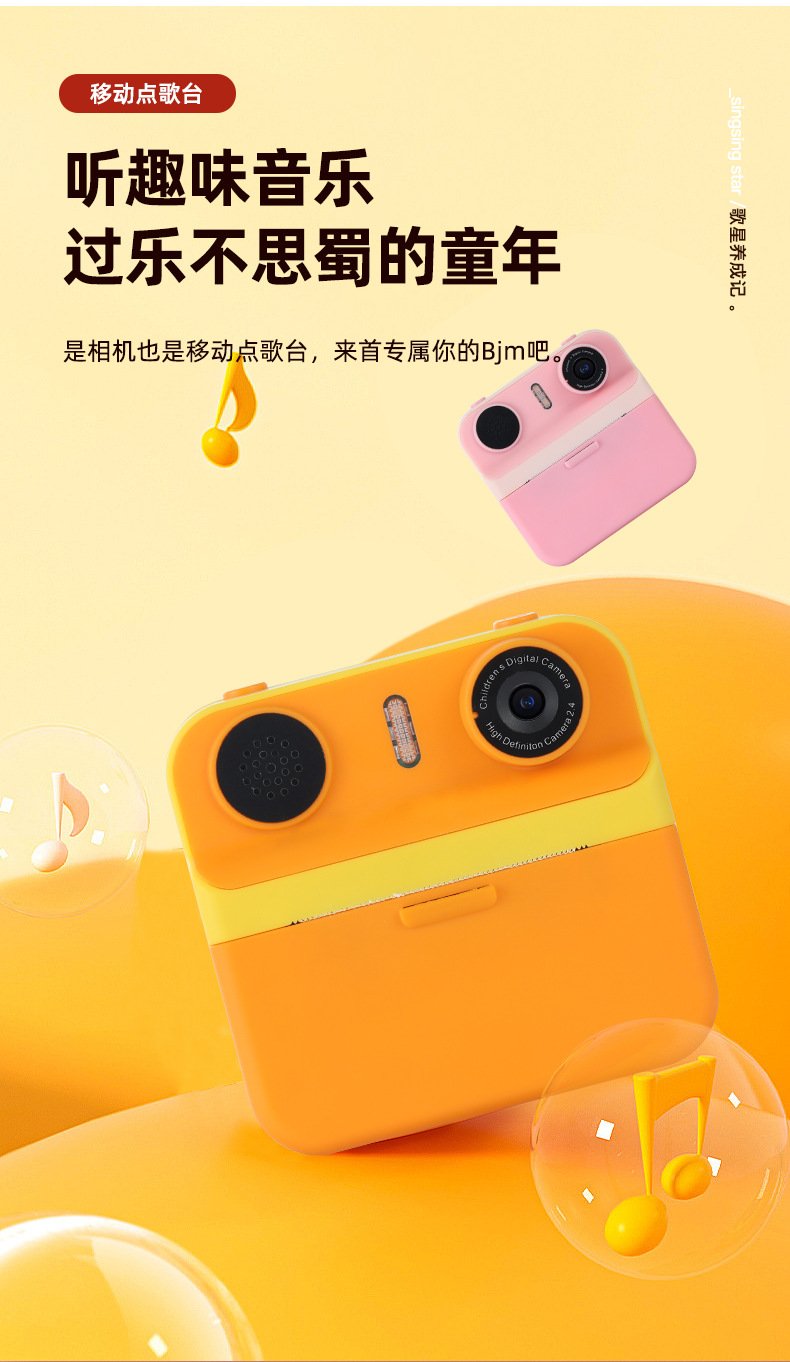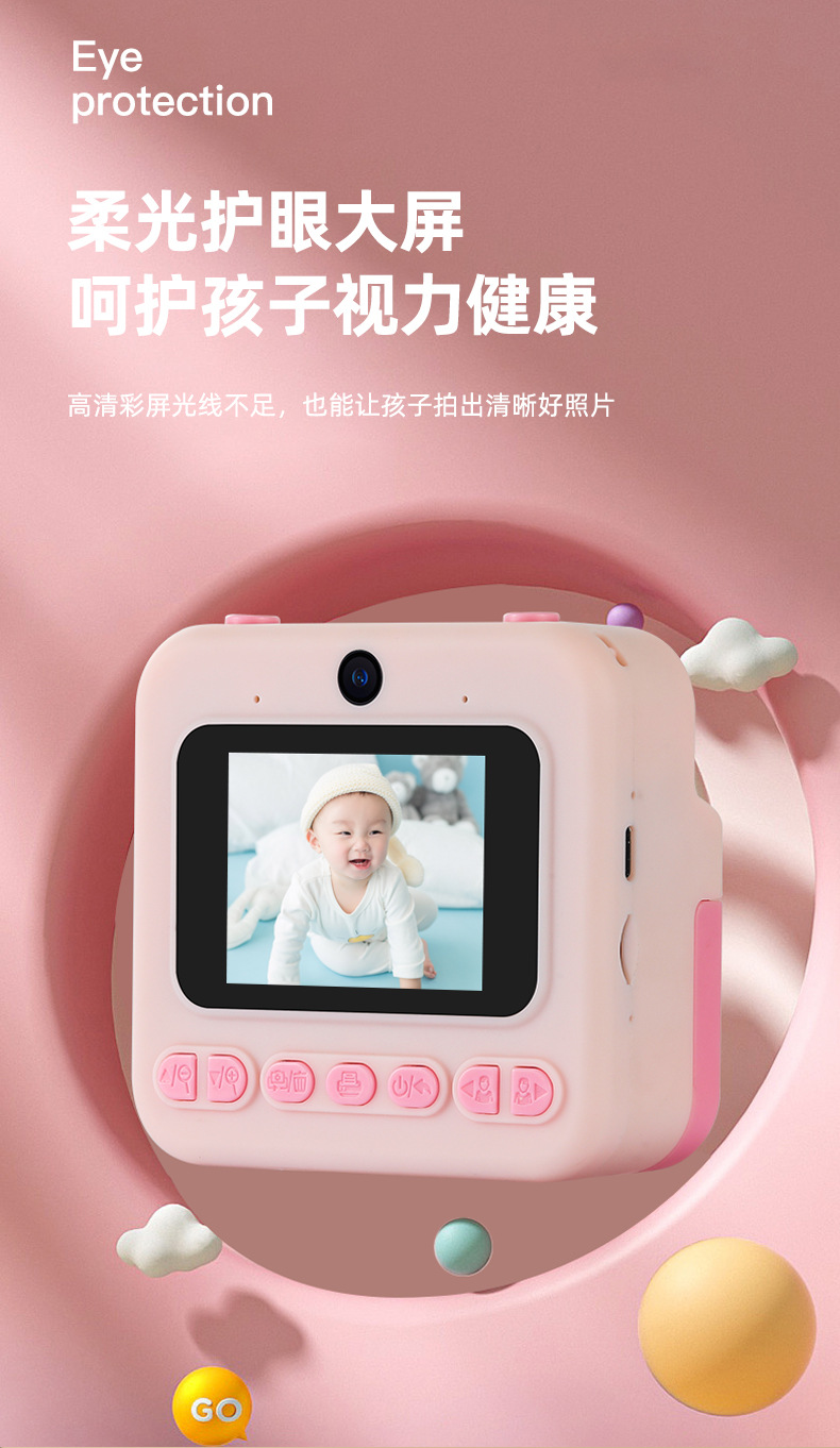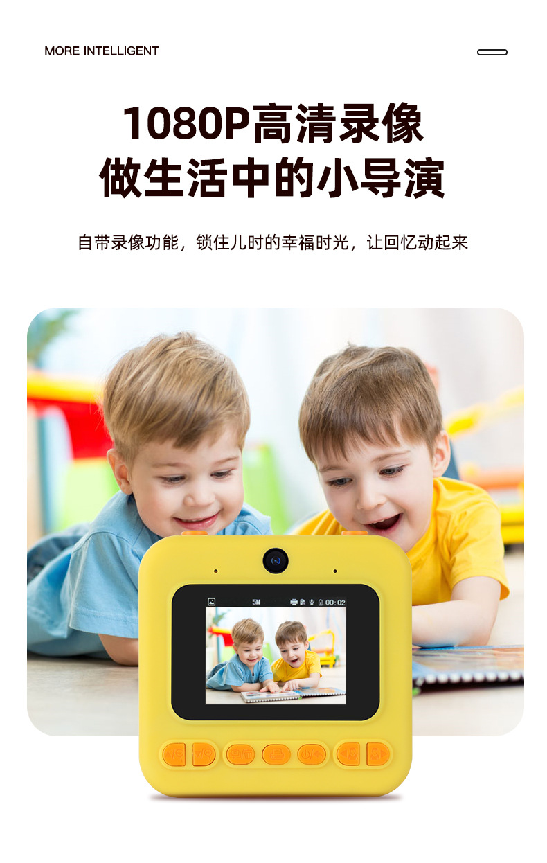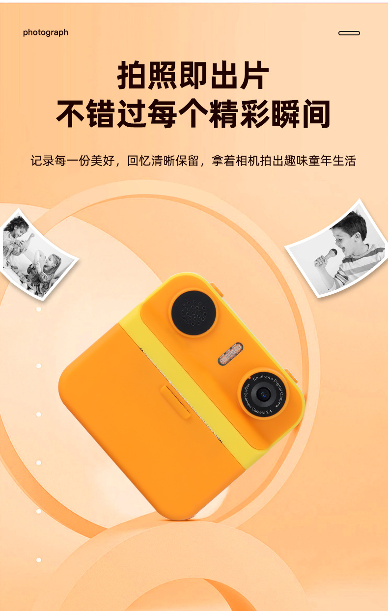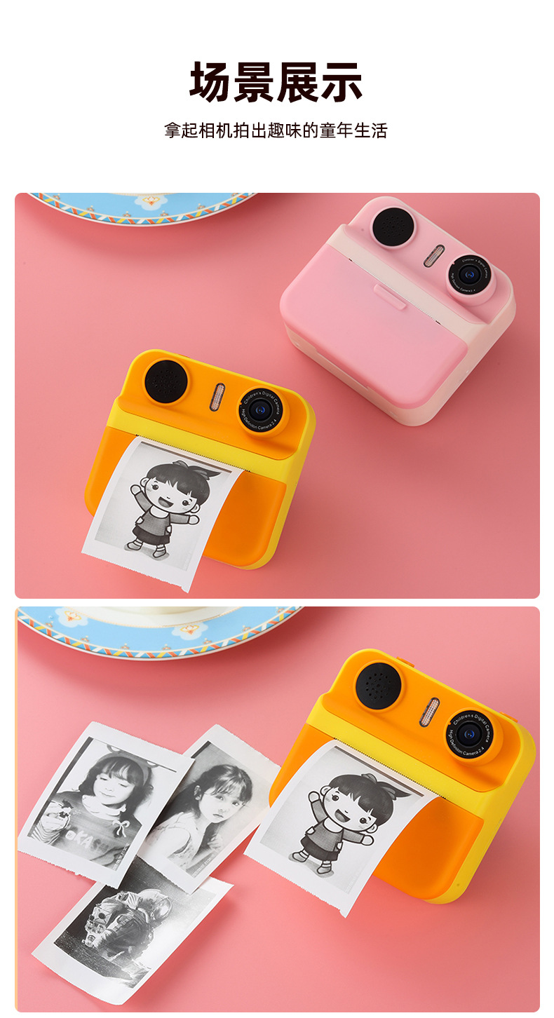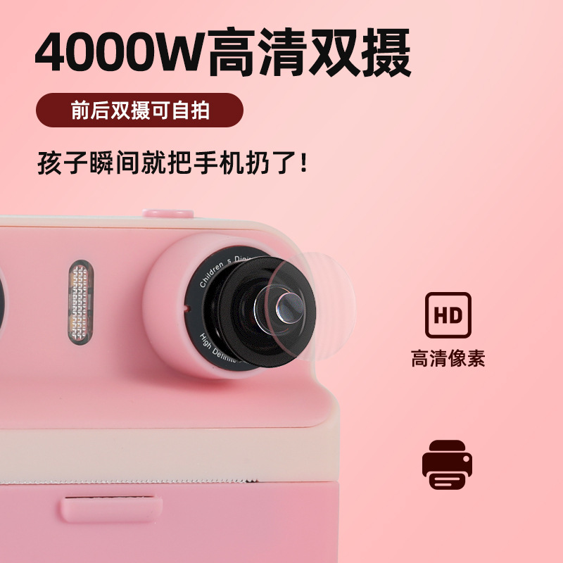 儿童拍立得相机高清屏迷你打印相机玩具跨境单反双镜头数码照相机
