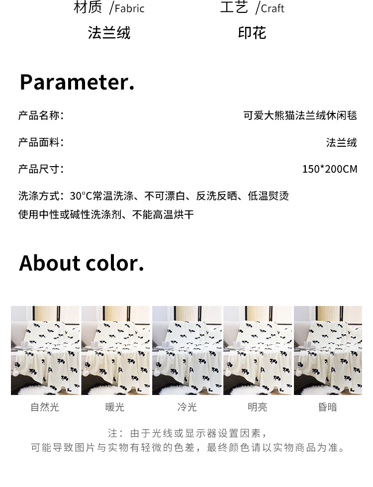 可爱大熊猫毯珊瑚绒客厅沙发毯办公室午休毯午睡盖毯