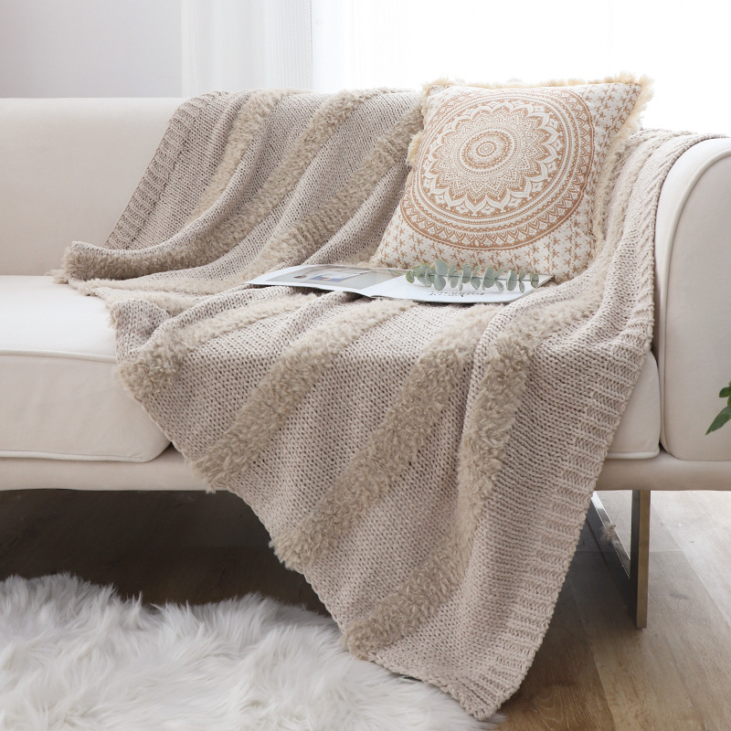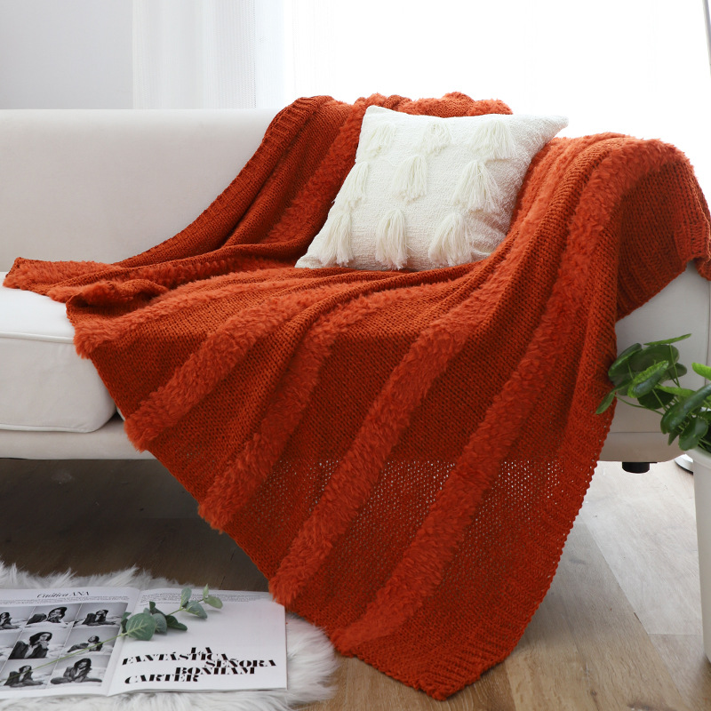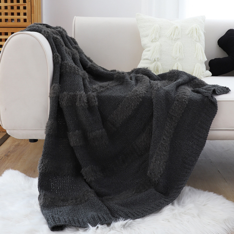 雪尼尔毛绒拼接盖毯现代简约纯色休闲午睡毯 空调盖毯