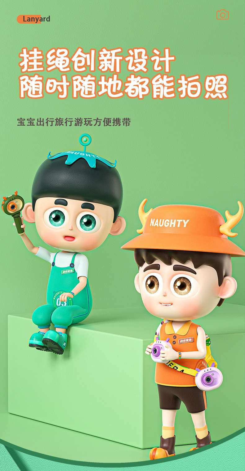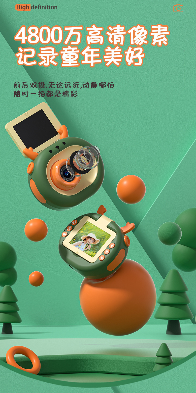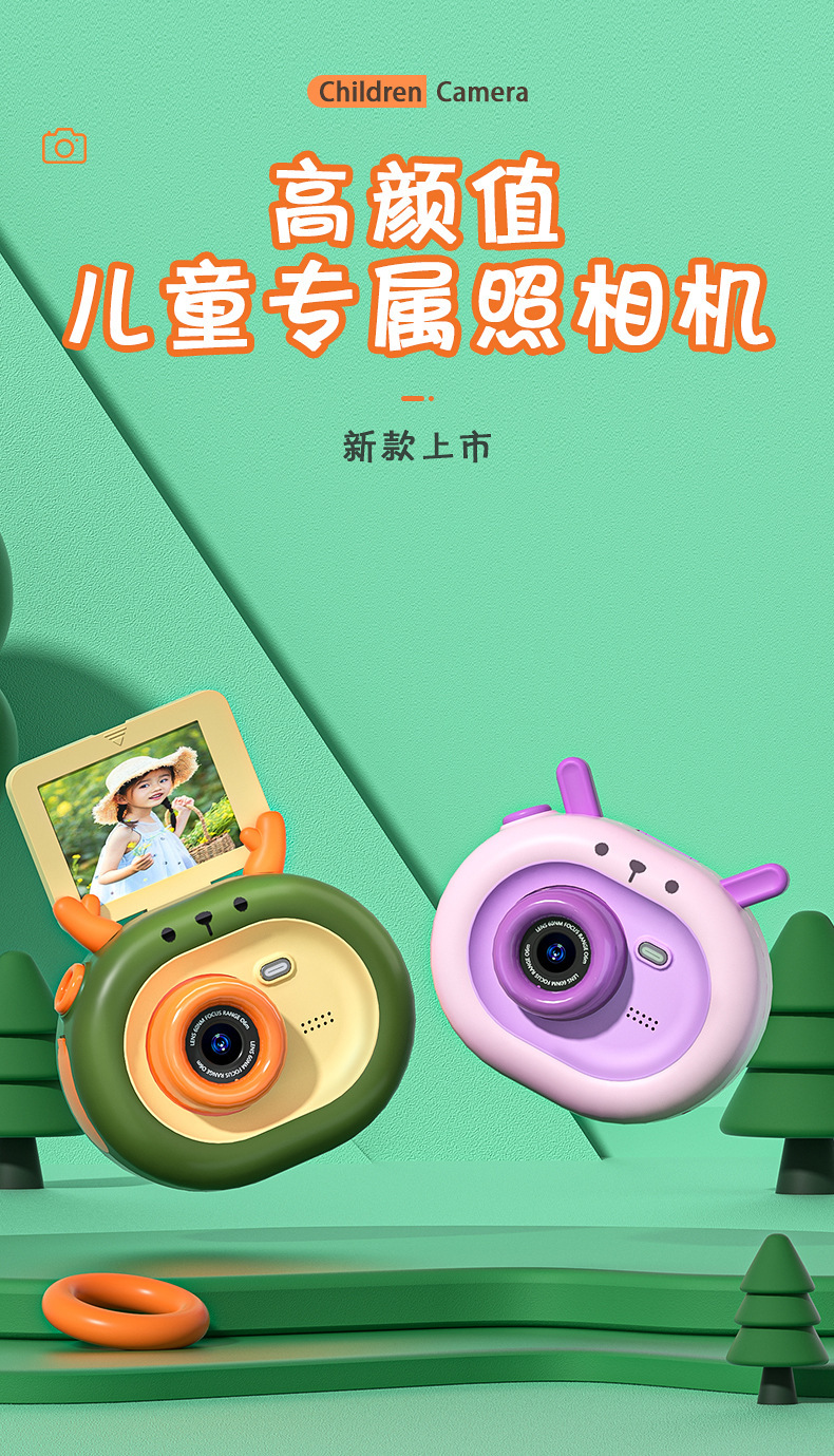 2023年新款高颜值儿童照相机180度翻屏高清数码相机手持录像机