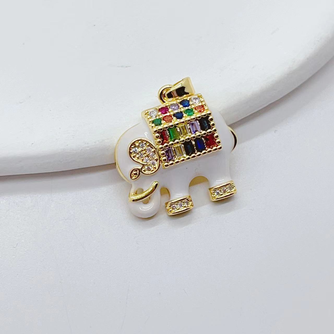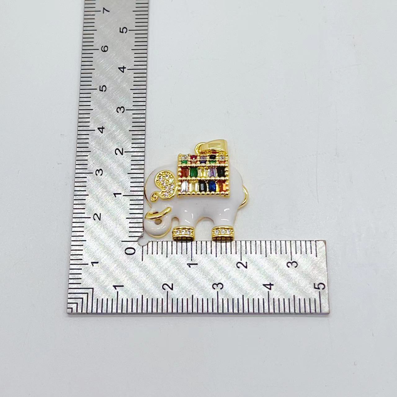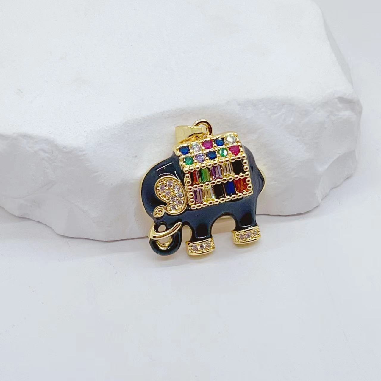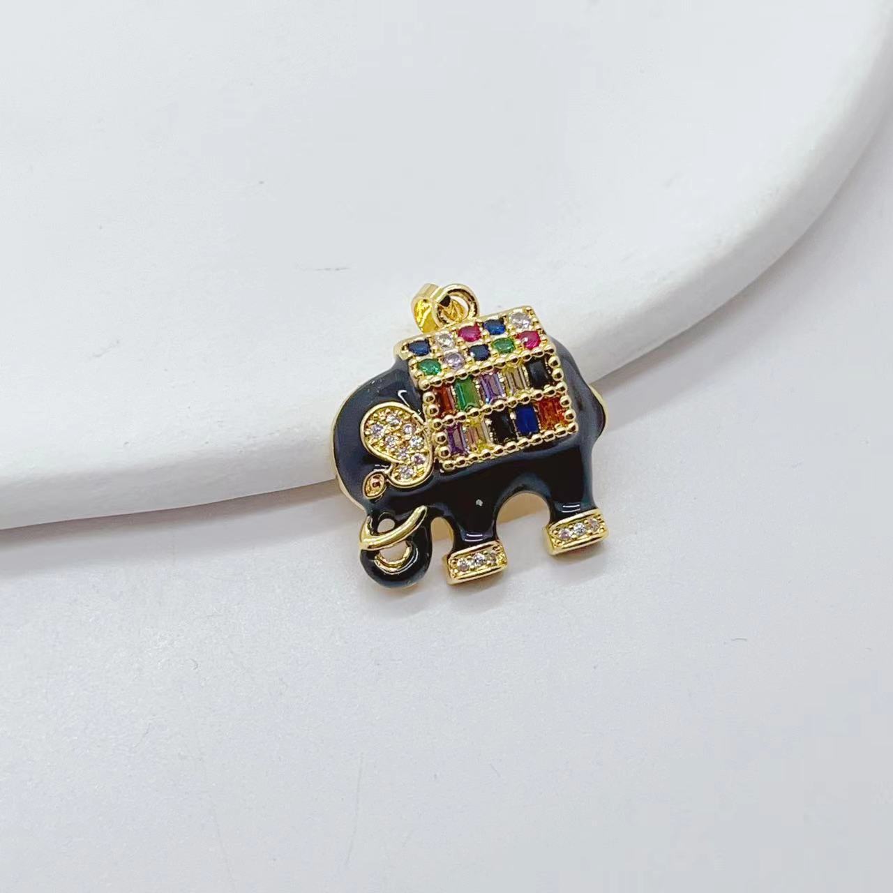 欧美跨境源铜镀真金混彩锆石黑白滴油大象吊坠DIY手链项链挂件