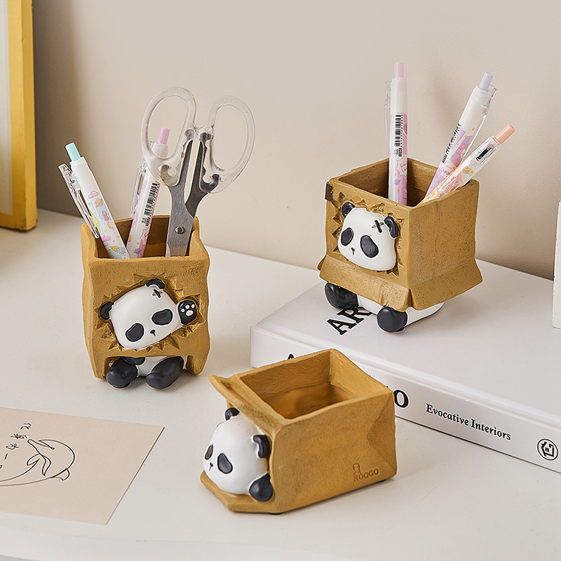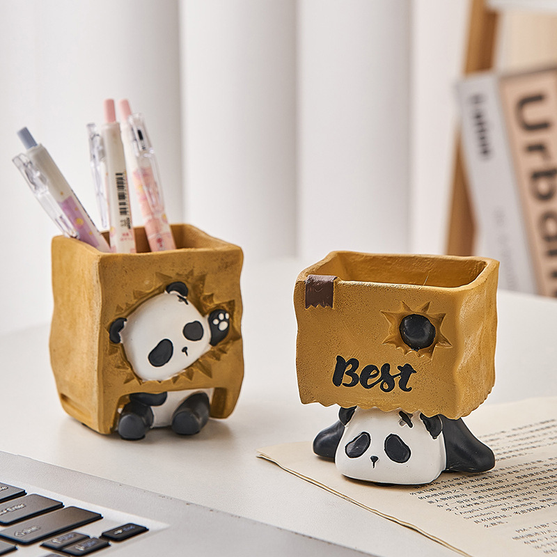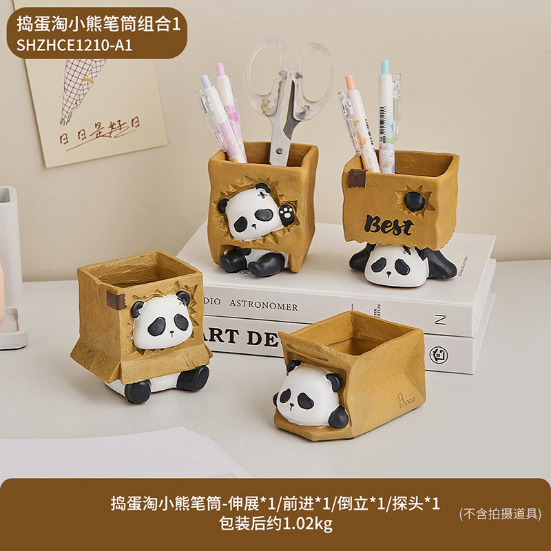 创意可爱熊猫笔筒收纳盒办公室学生书桌装饰品摆件教师节礼物包邮
