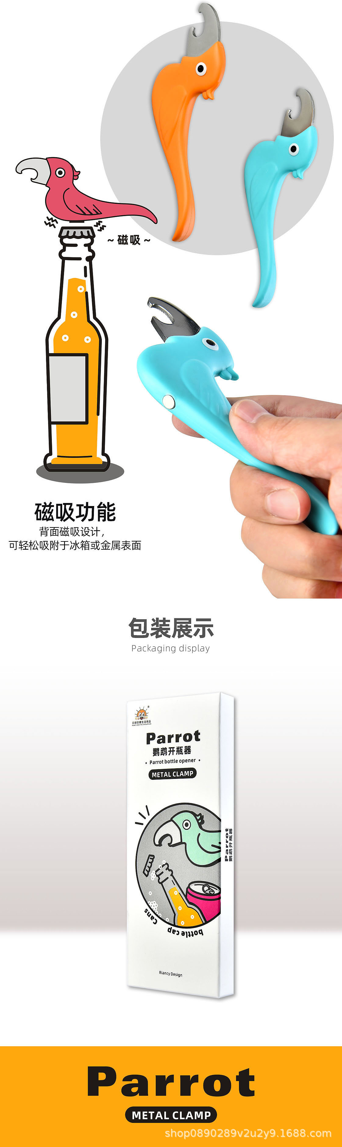 开瓶器啤酒创意小鹦鹉按压式起盖器开酒器瓶起子多功能开盖器瓶盖
