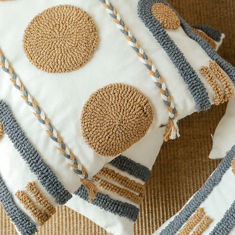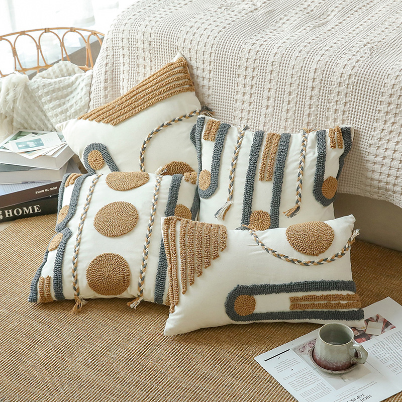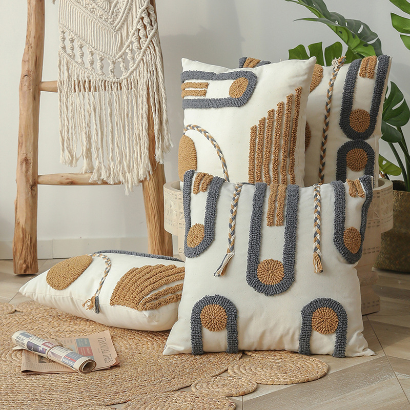 几何图案沙发抱枕套摩洛哥风格簇绒椅子靠垫办公室腰枕