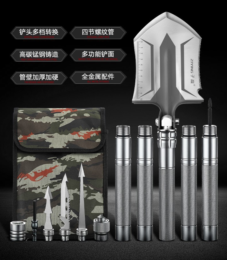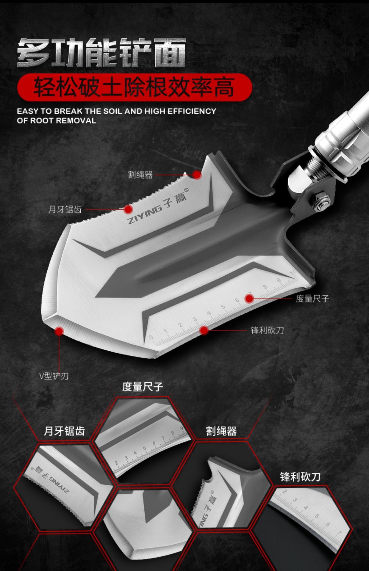 户外工兵铲子折叠多功能车载锰钢铁锹钓鱼野营远途求生装备工兵铲