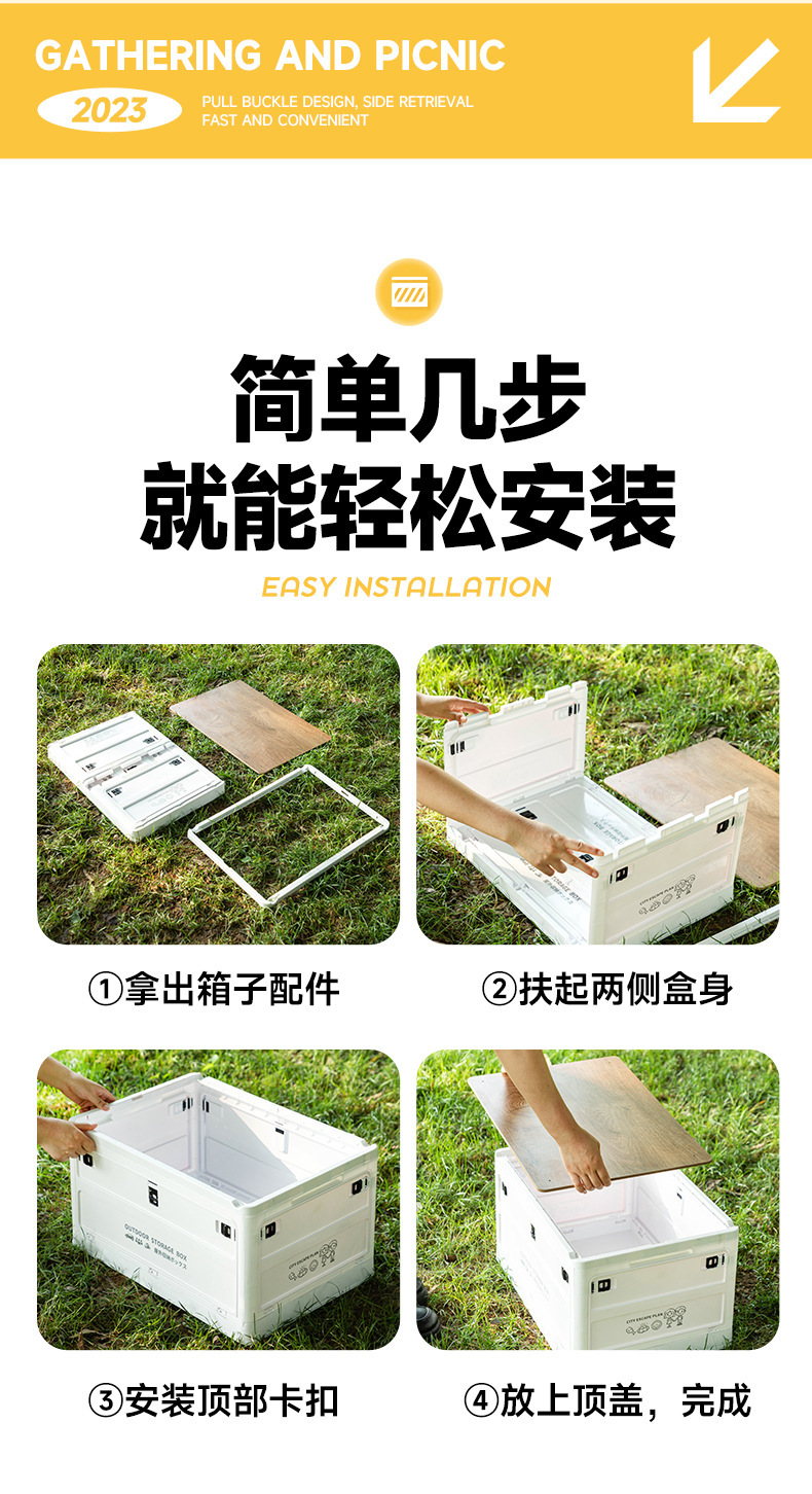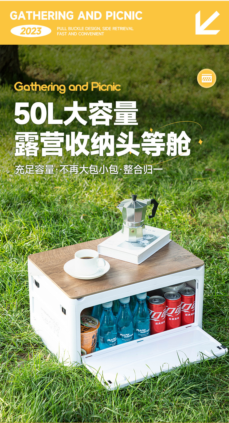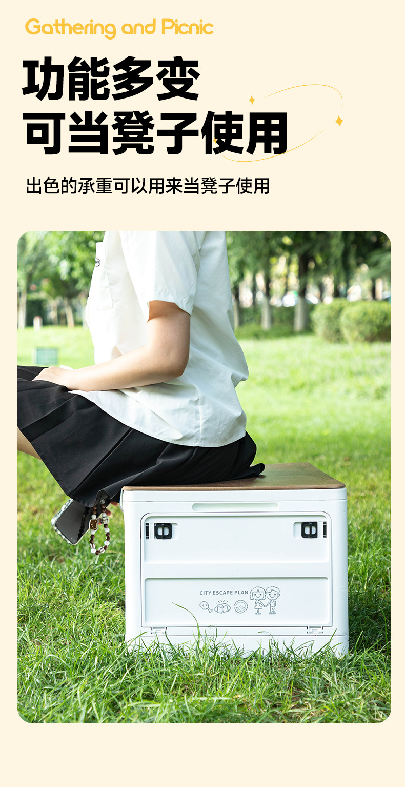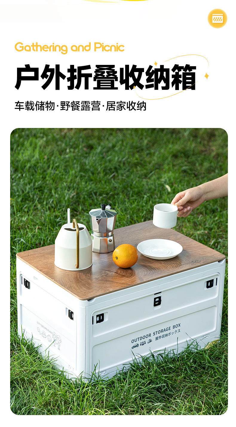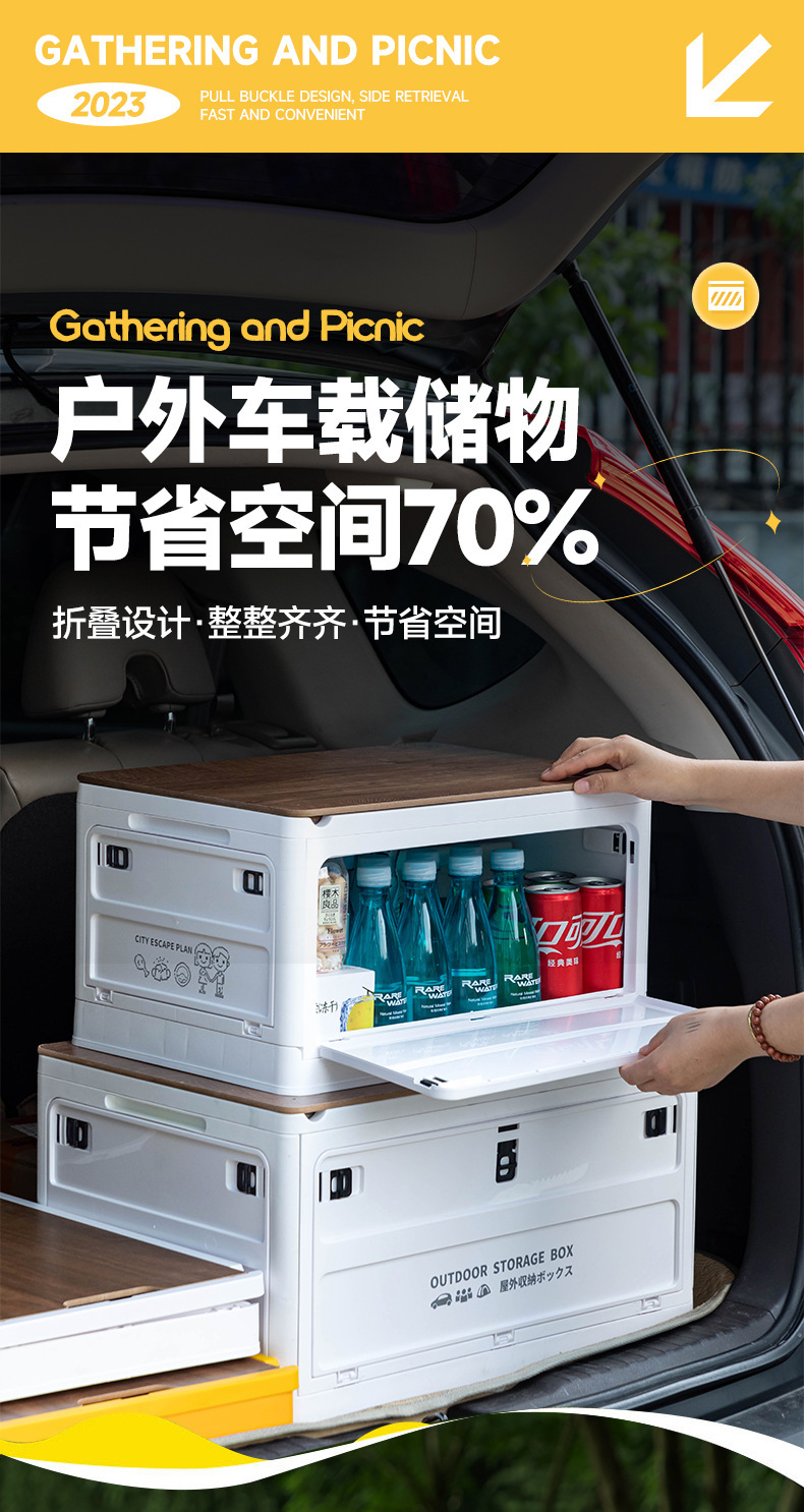 四开门户外露营折叠收纳箱野营车载后备箱整理箱家用置物储物箱子