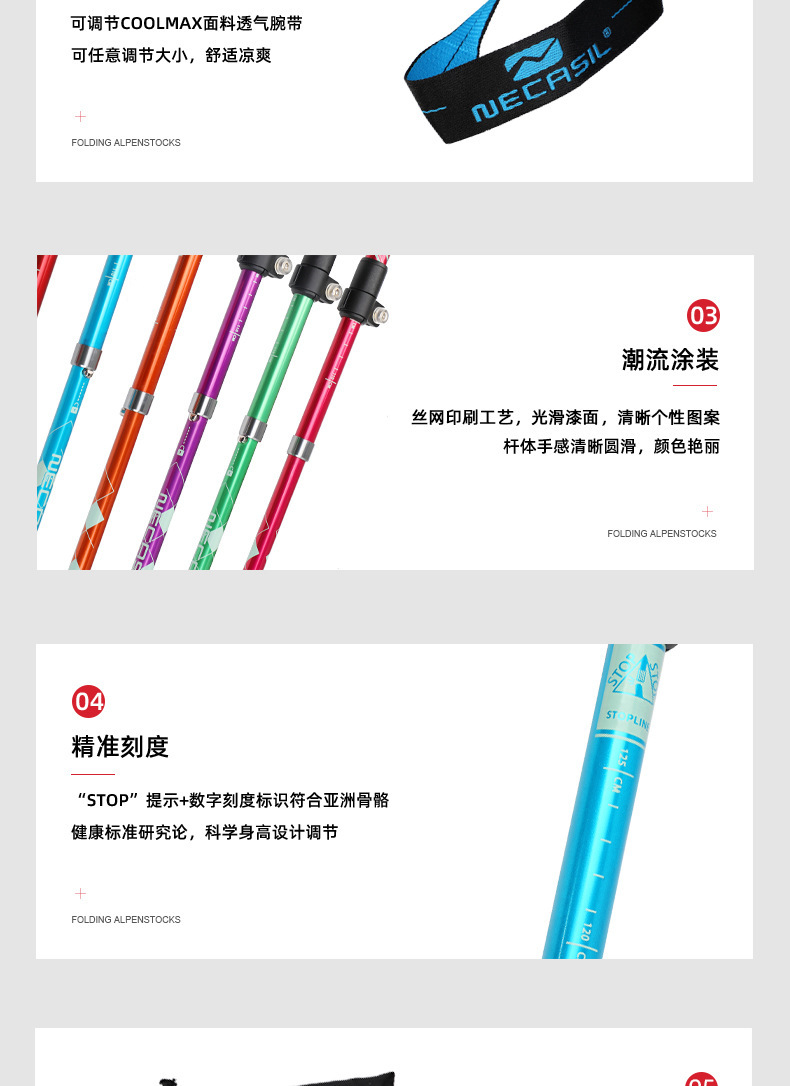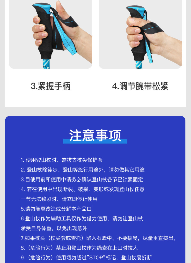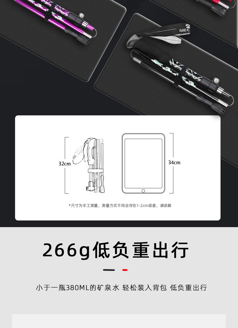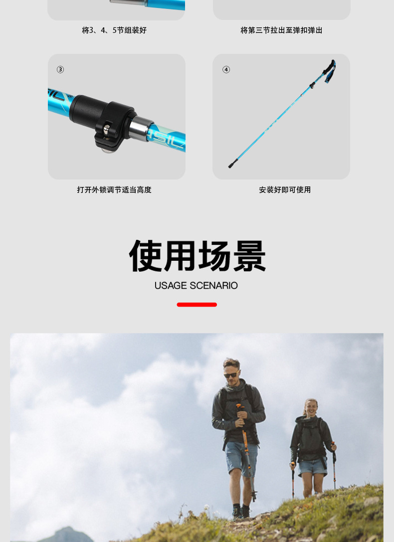 户外五节碳素铝合金折叠杖登山杖外锁超轻五节杖越野徒步拐杖登山