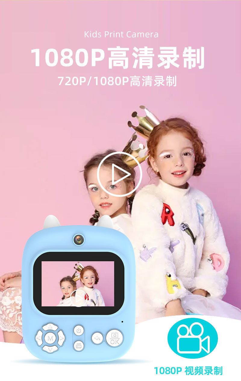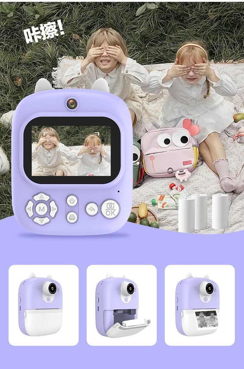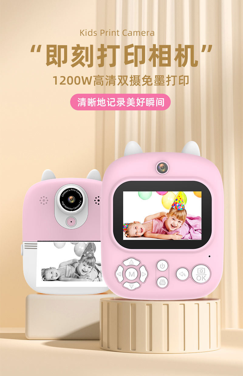 2023新品工厂直供0-12岁儿童拍立得免墨打印黑白即刻打印照相机