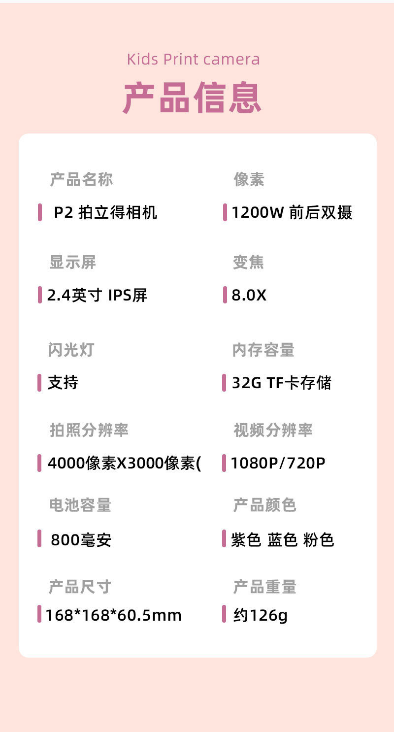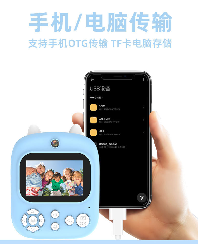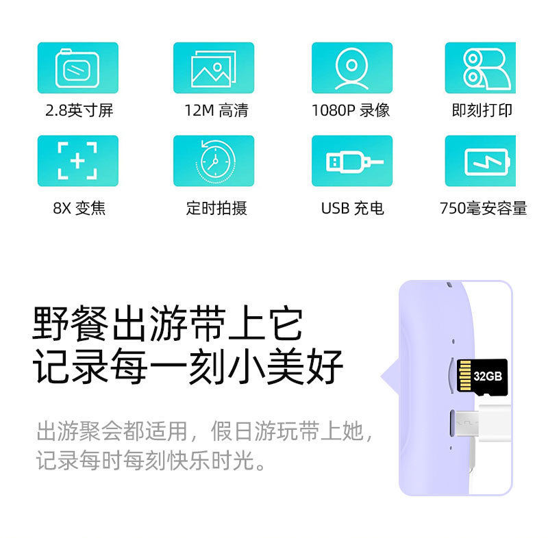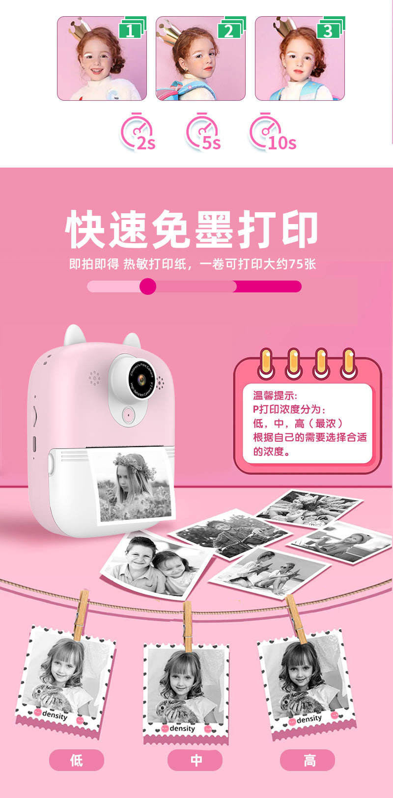 2023新品工厂直供0-12岁儿童拍立得免墨打印黑白即刻打印照相机