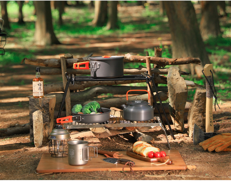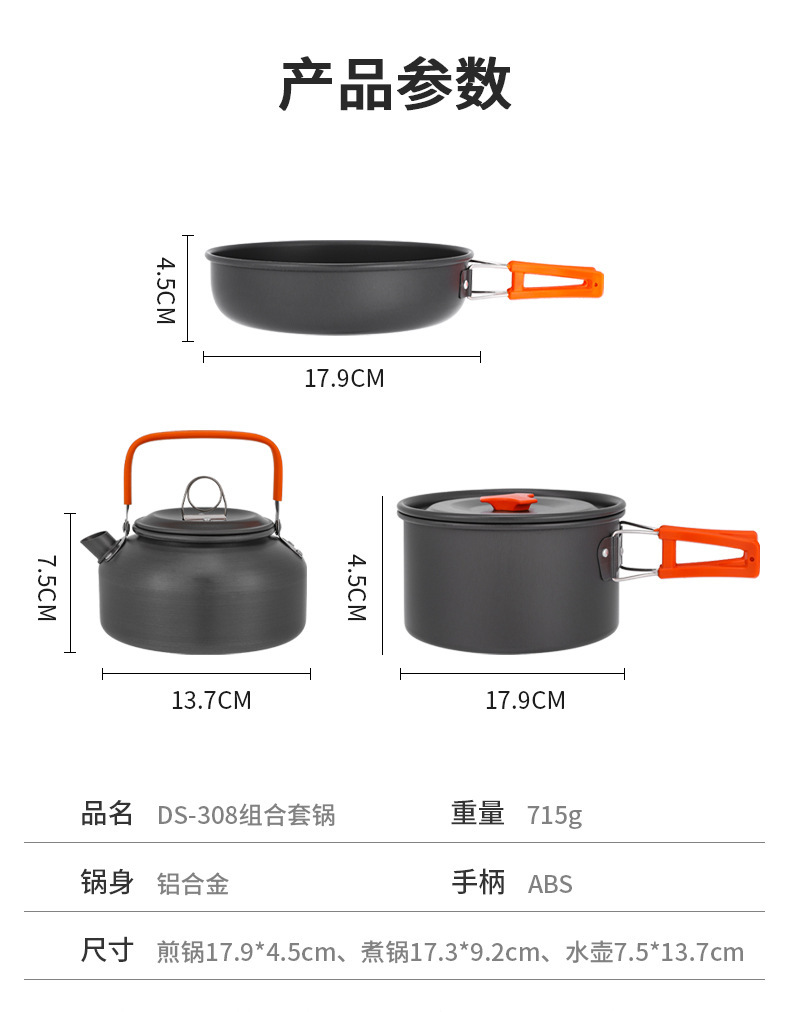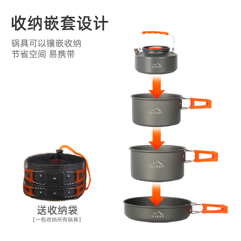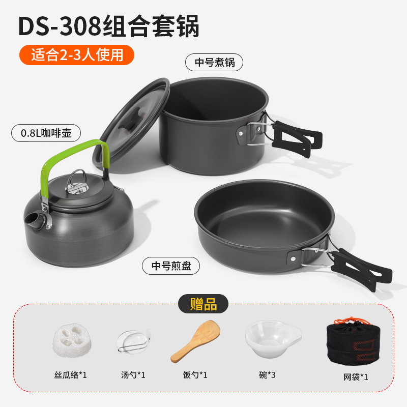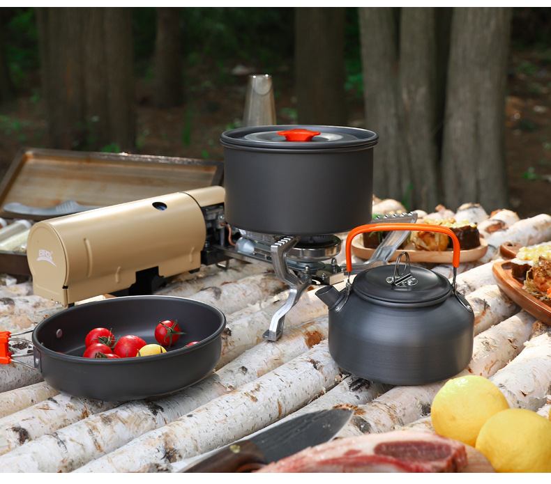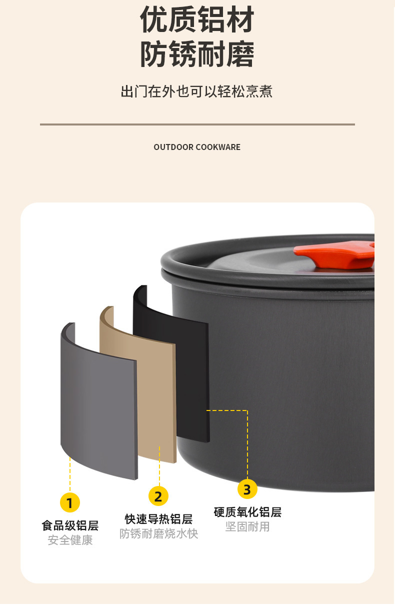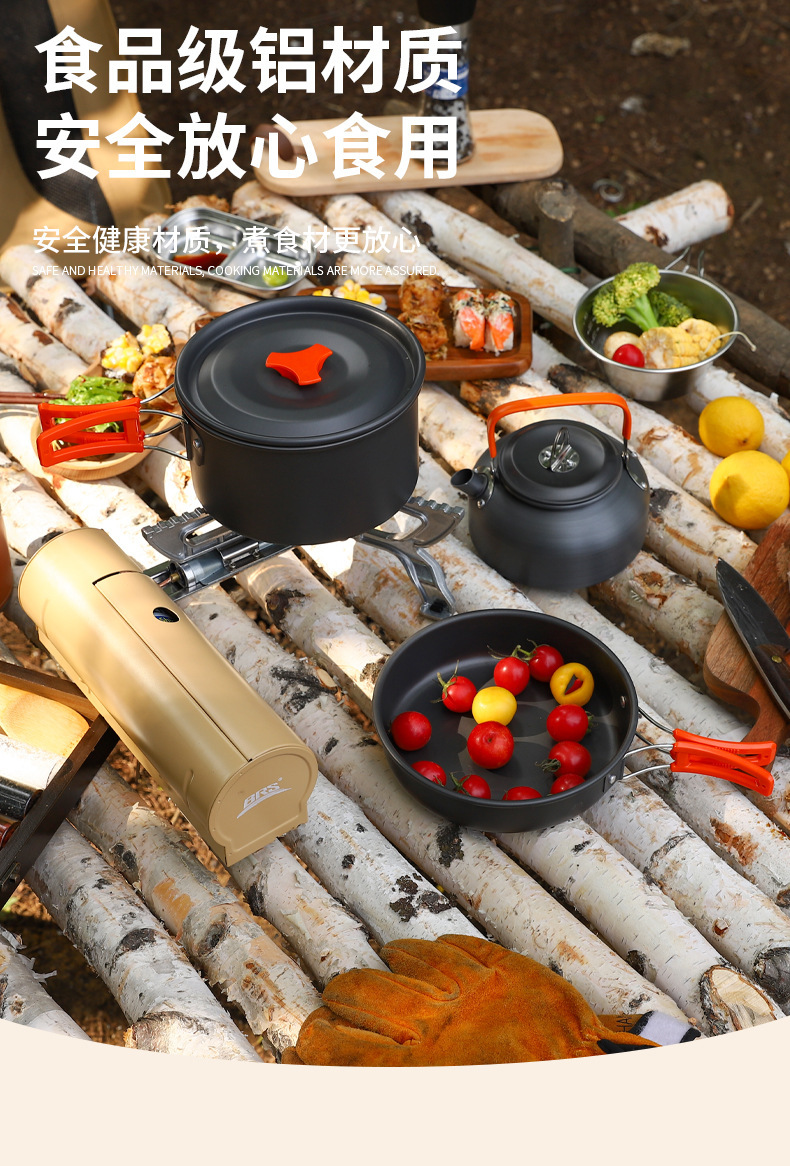 户外锅具炉具便携烧水壶露营炊具餐具野炊装备用品野营套锅套装