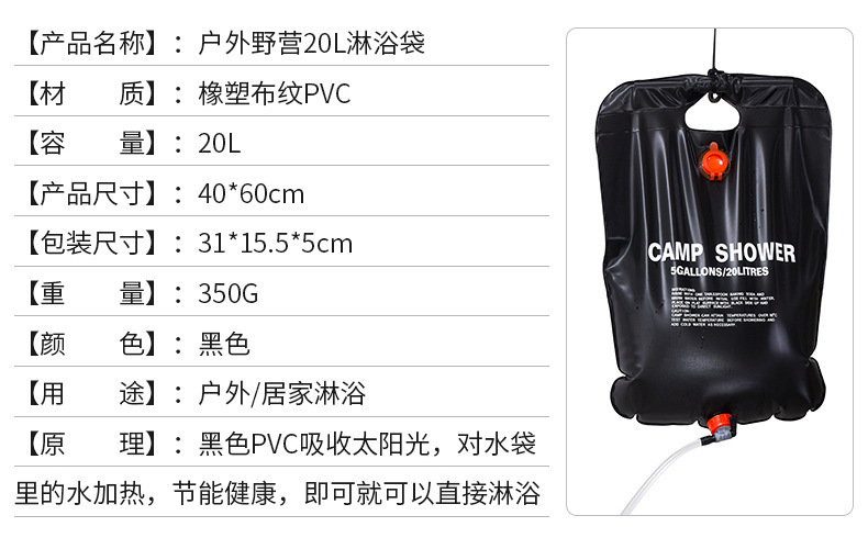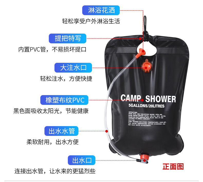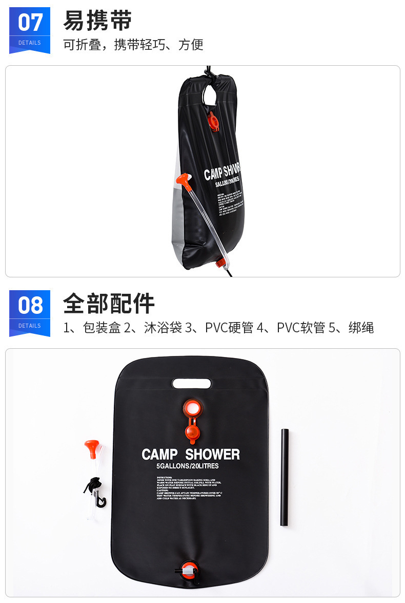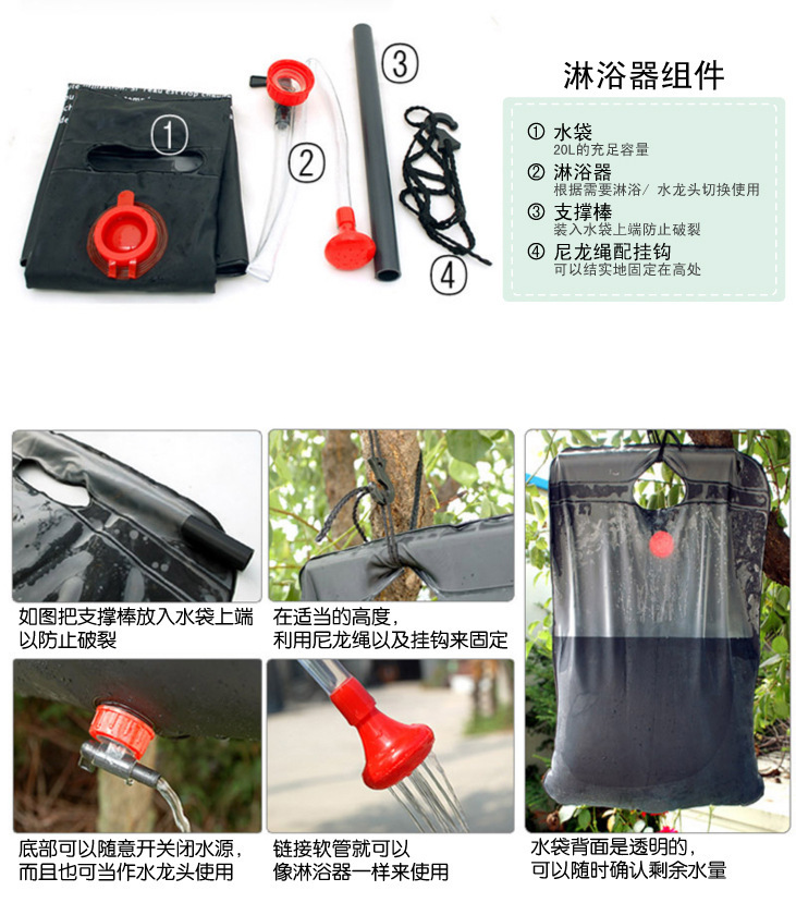 户外太阳能便捷淋浴袋野外露营便携家用大容量洗澡神器蓄储水袋