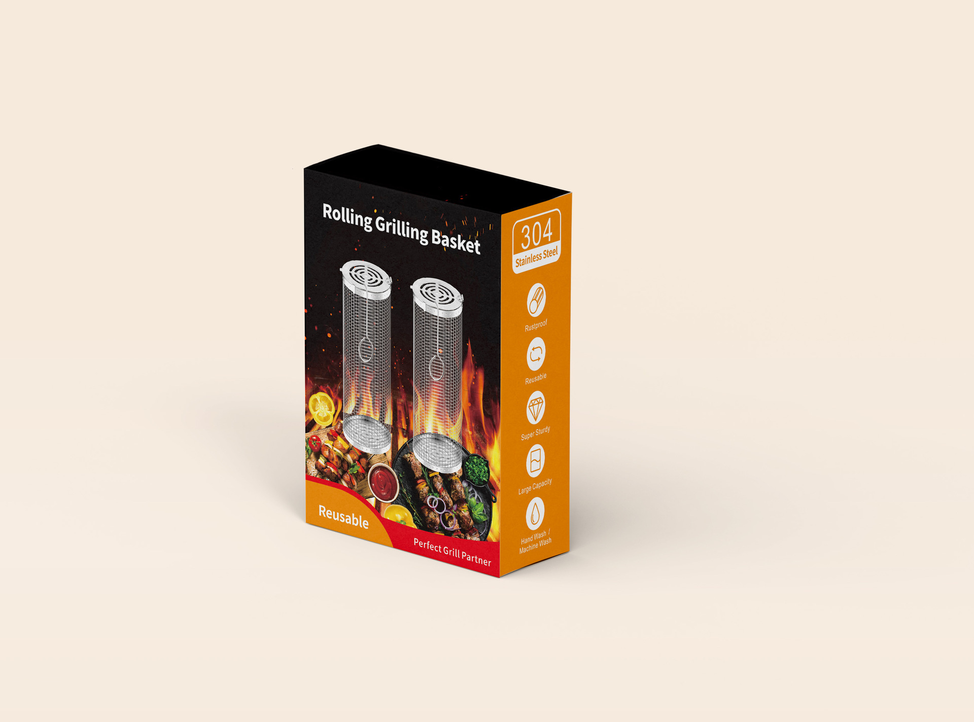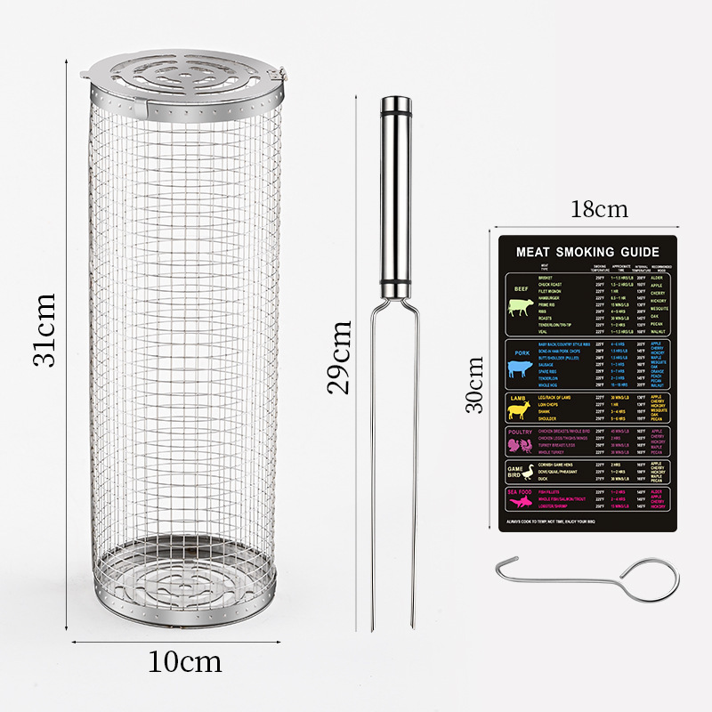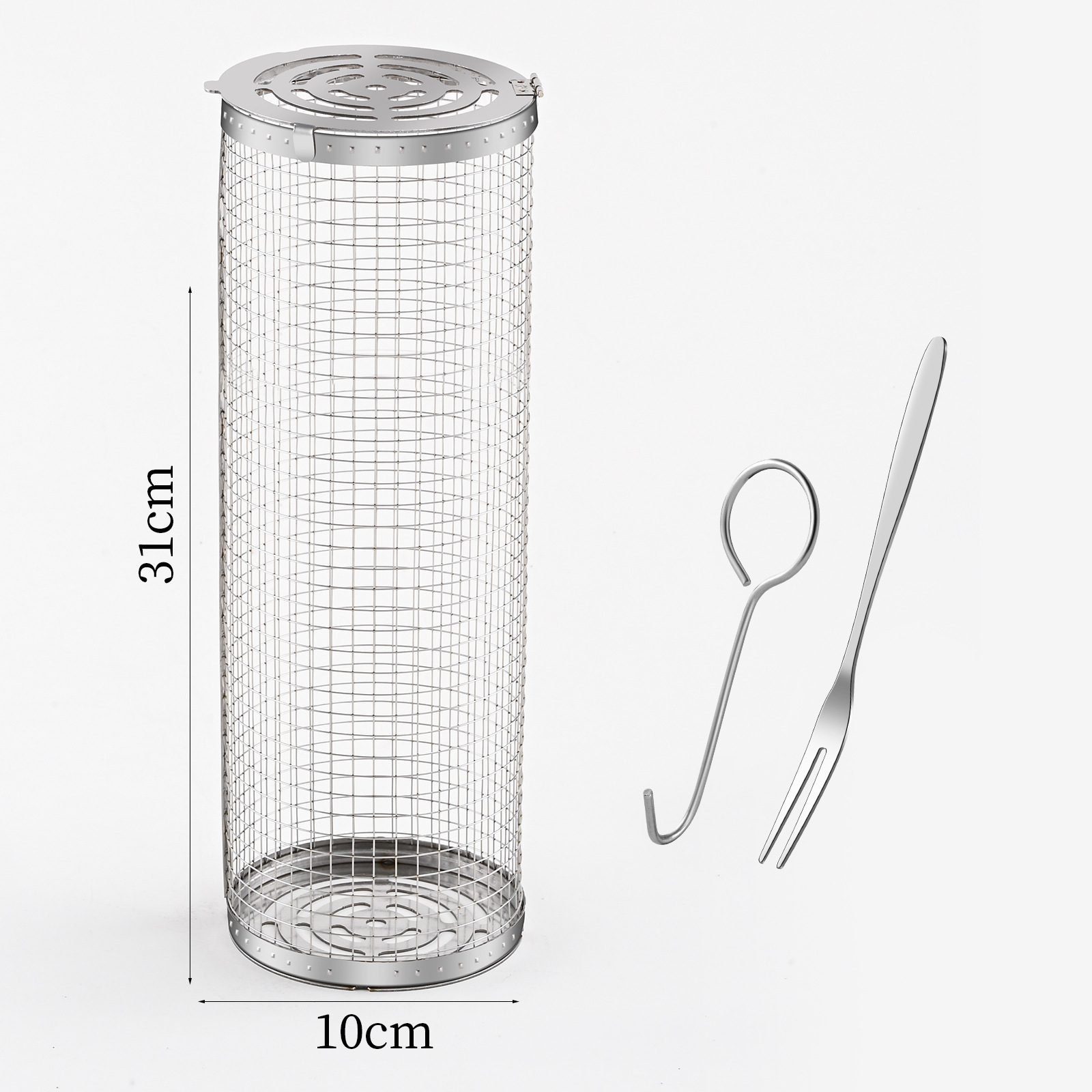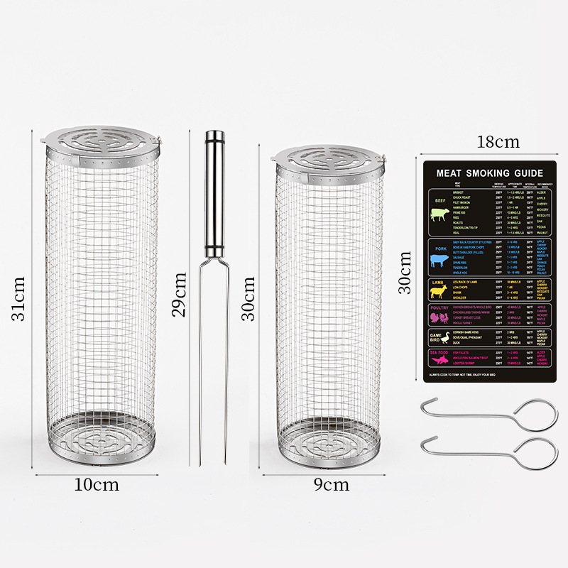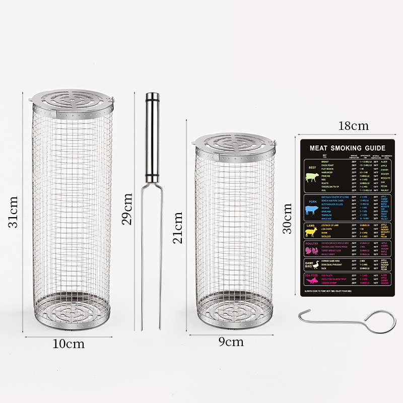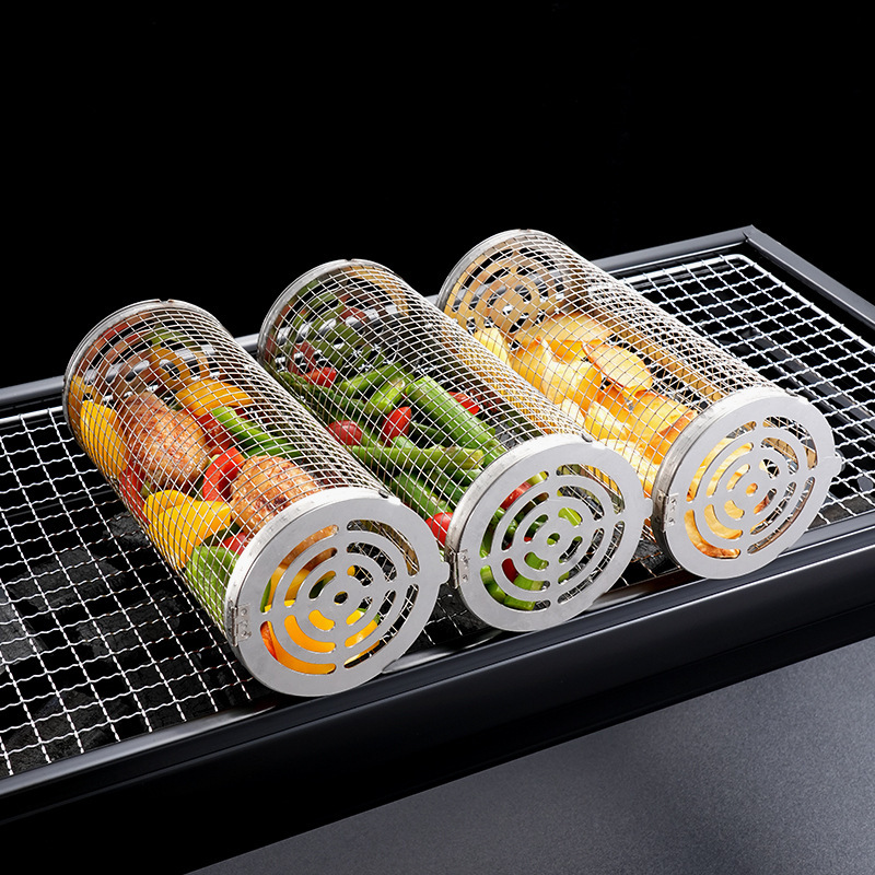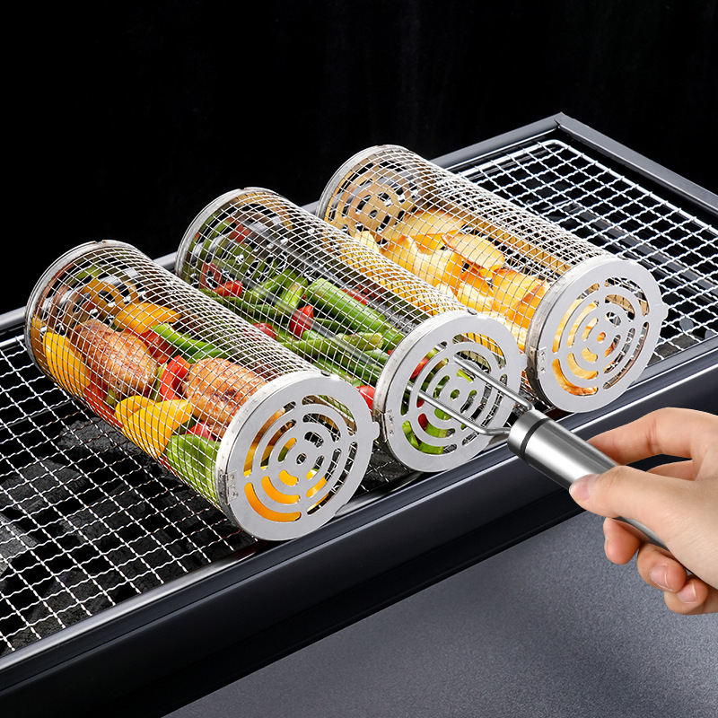 跨境亚马逊现货滚动烧烤笼户外BBQ烧烤篮304不锈钢烧烤筒烧烤网