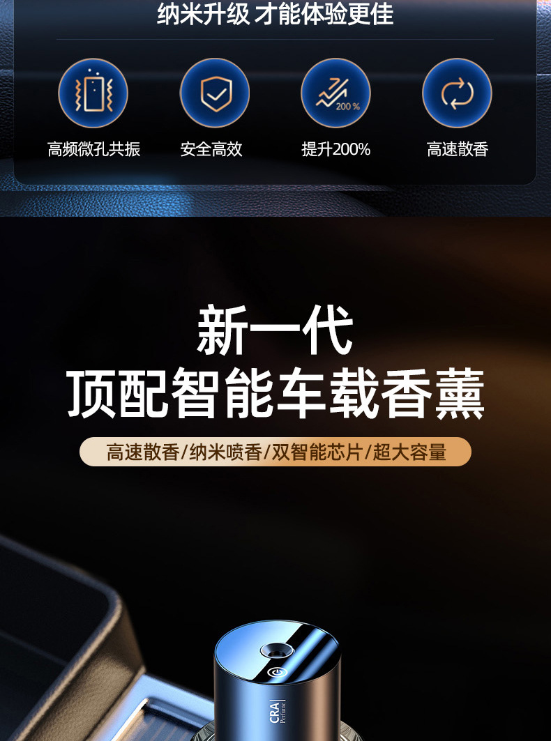 车载香薰机智能喷雾汽车香水车内高级感自动喷香氛摆件充电香薰机