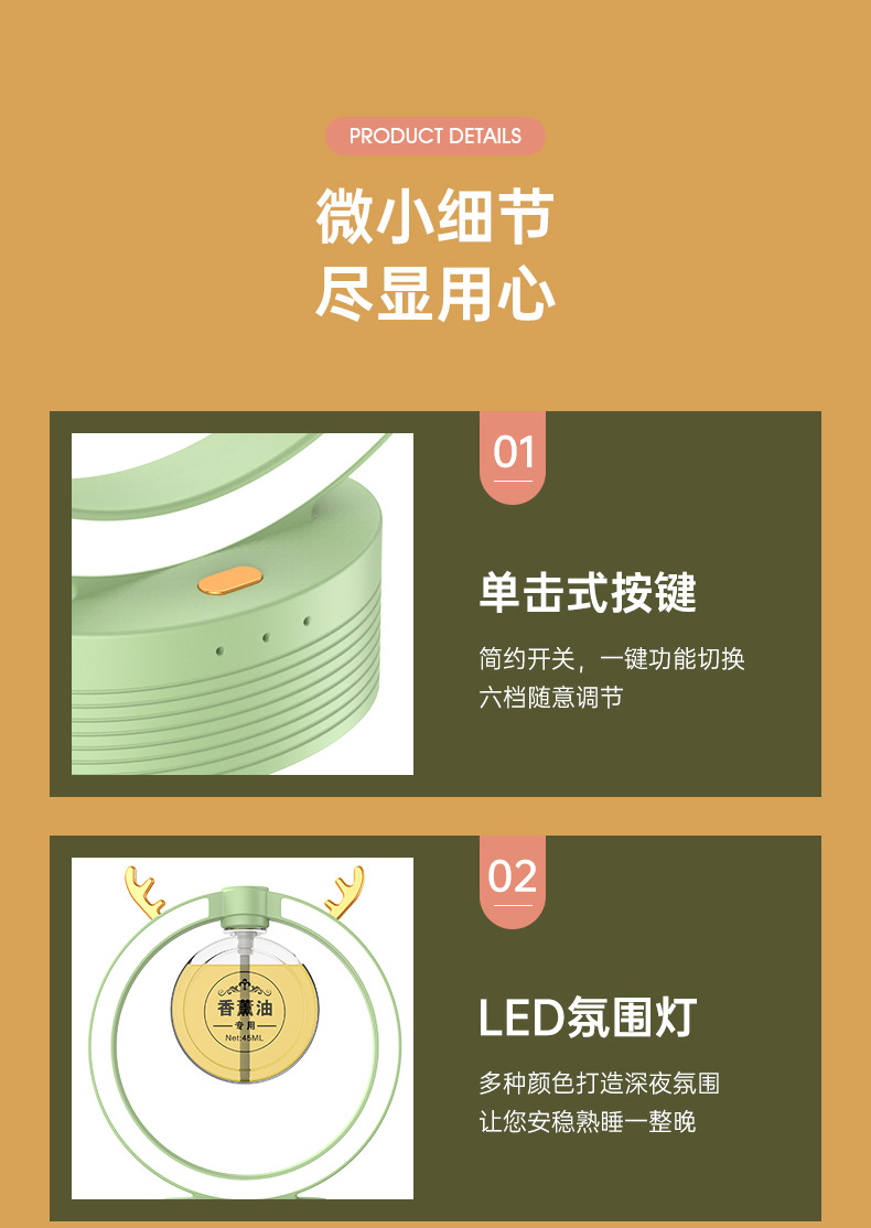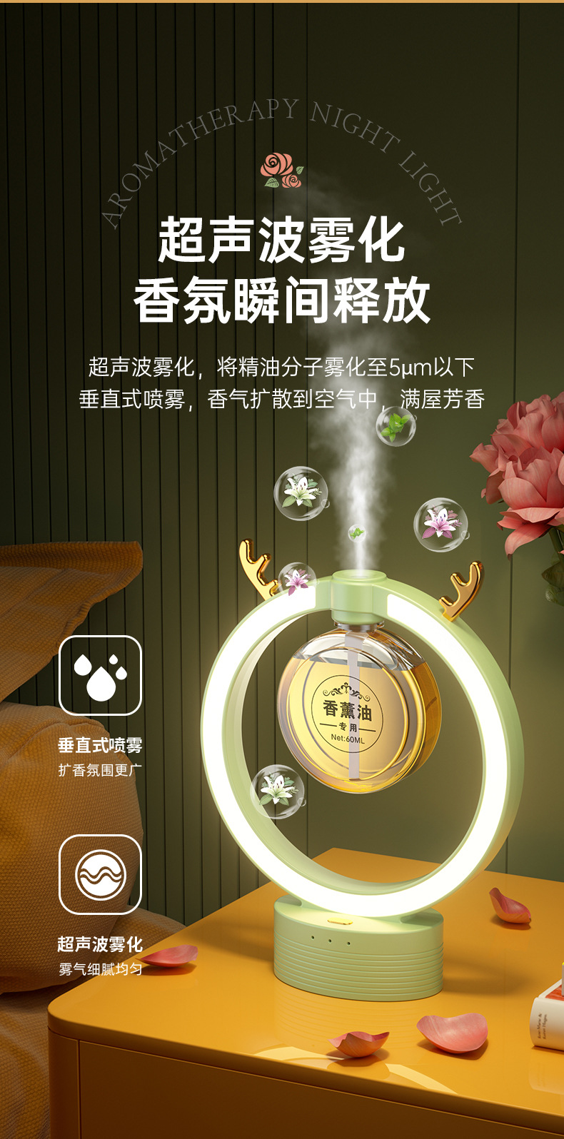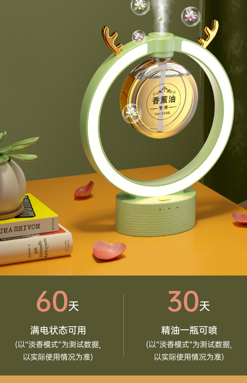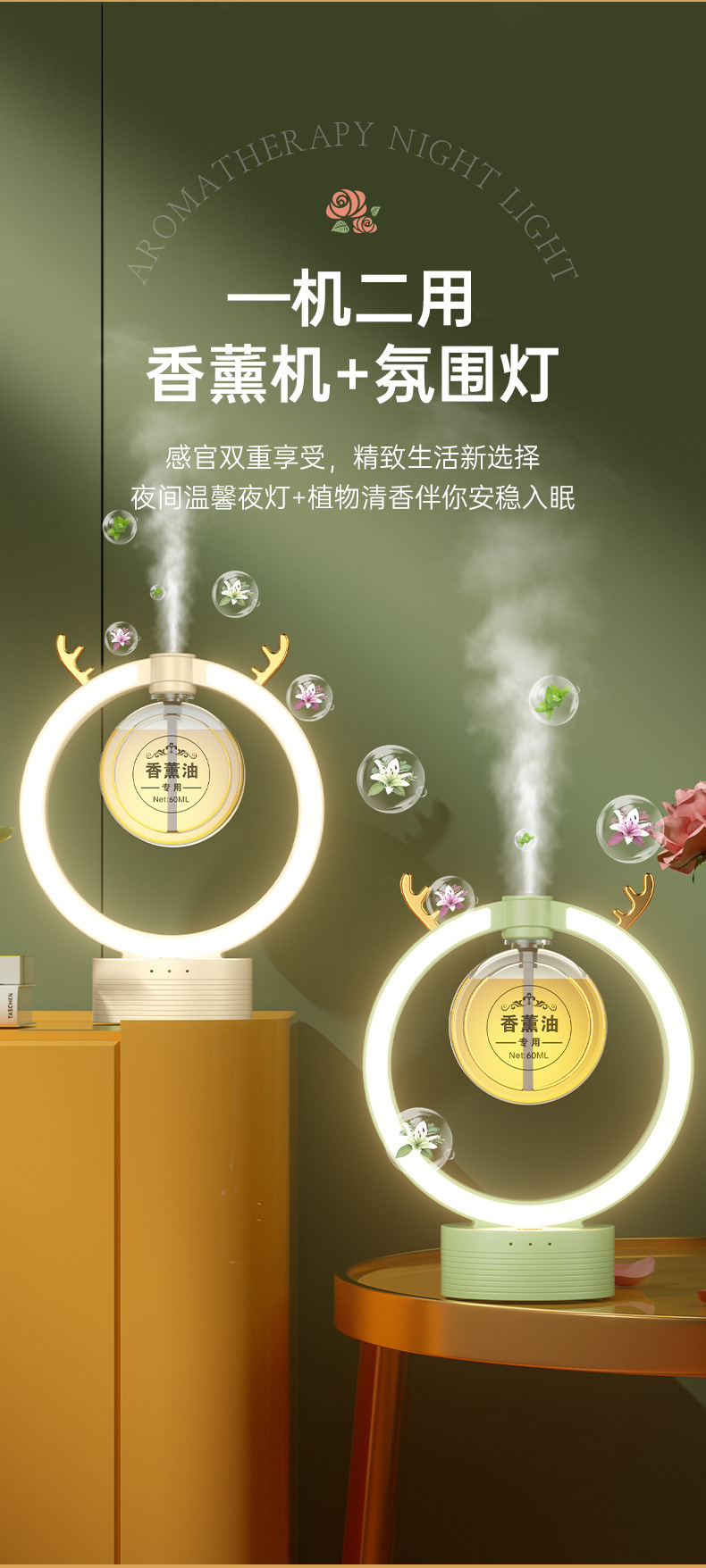 爆款礼品小鹿香薰机 2合1香氛补光灯 酒店家用智能精油自动喷香机